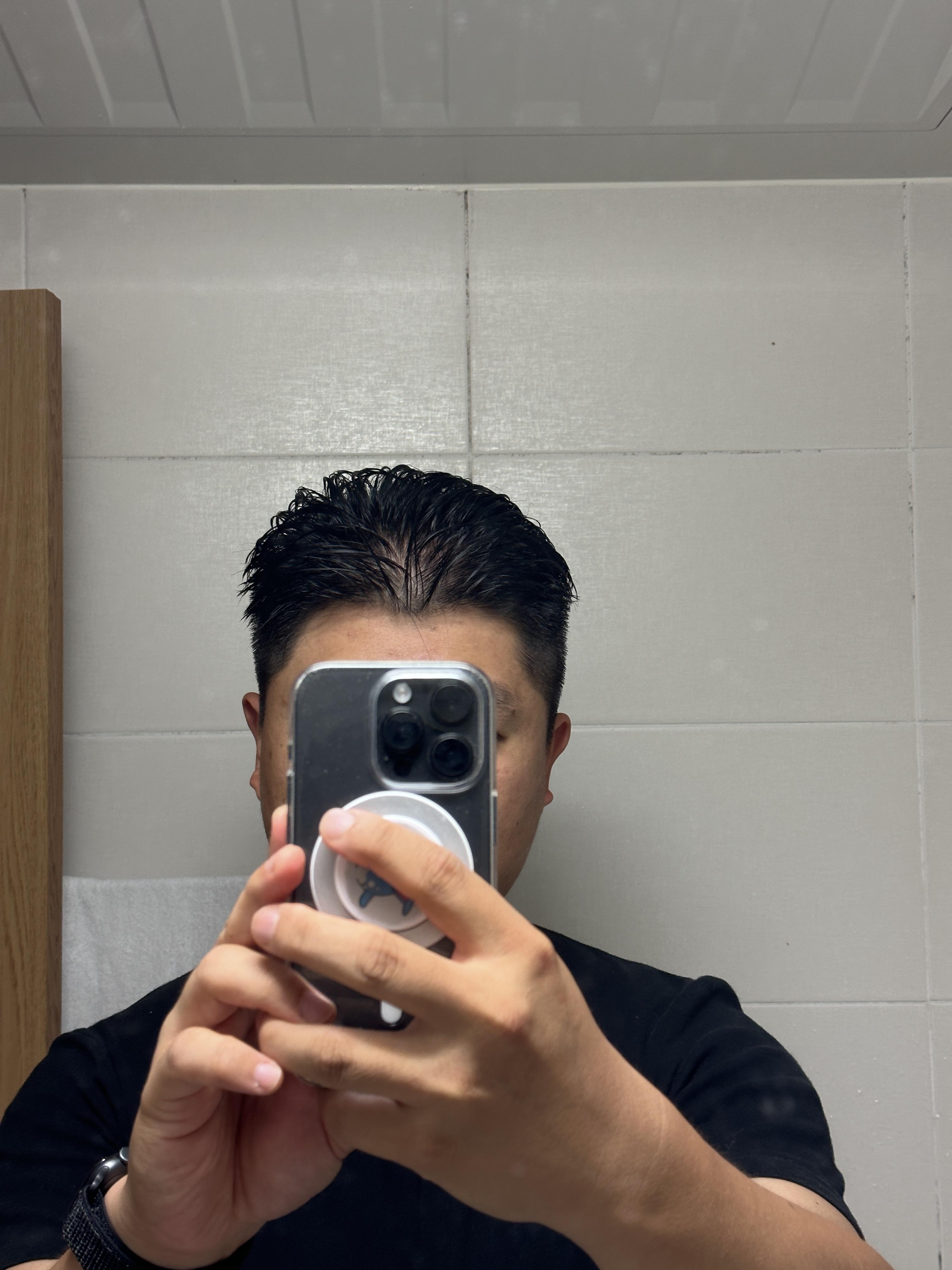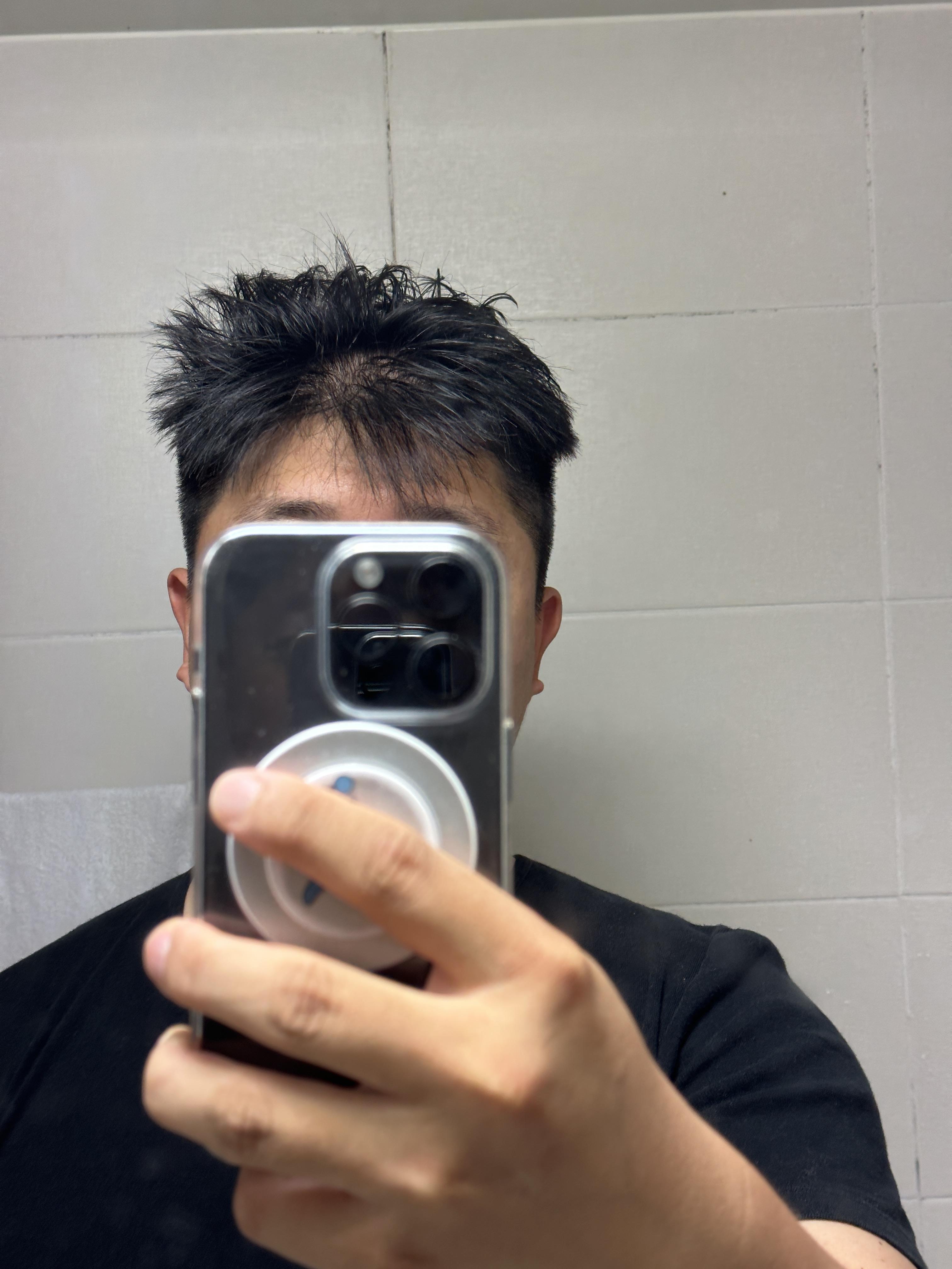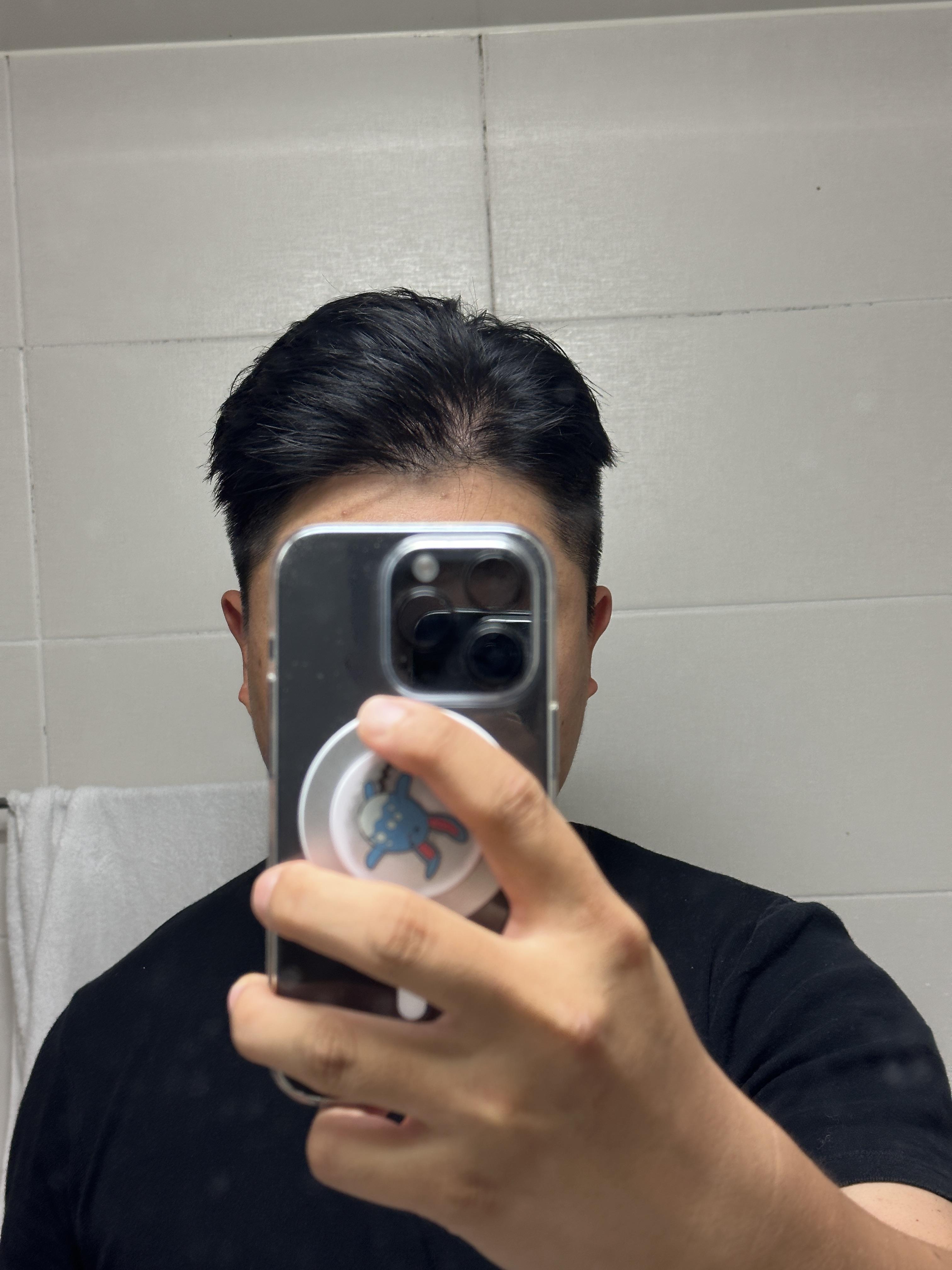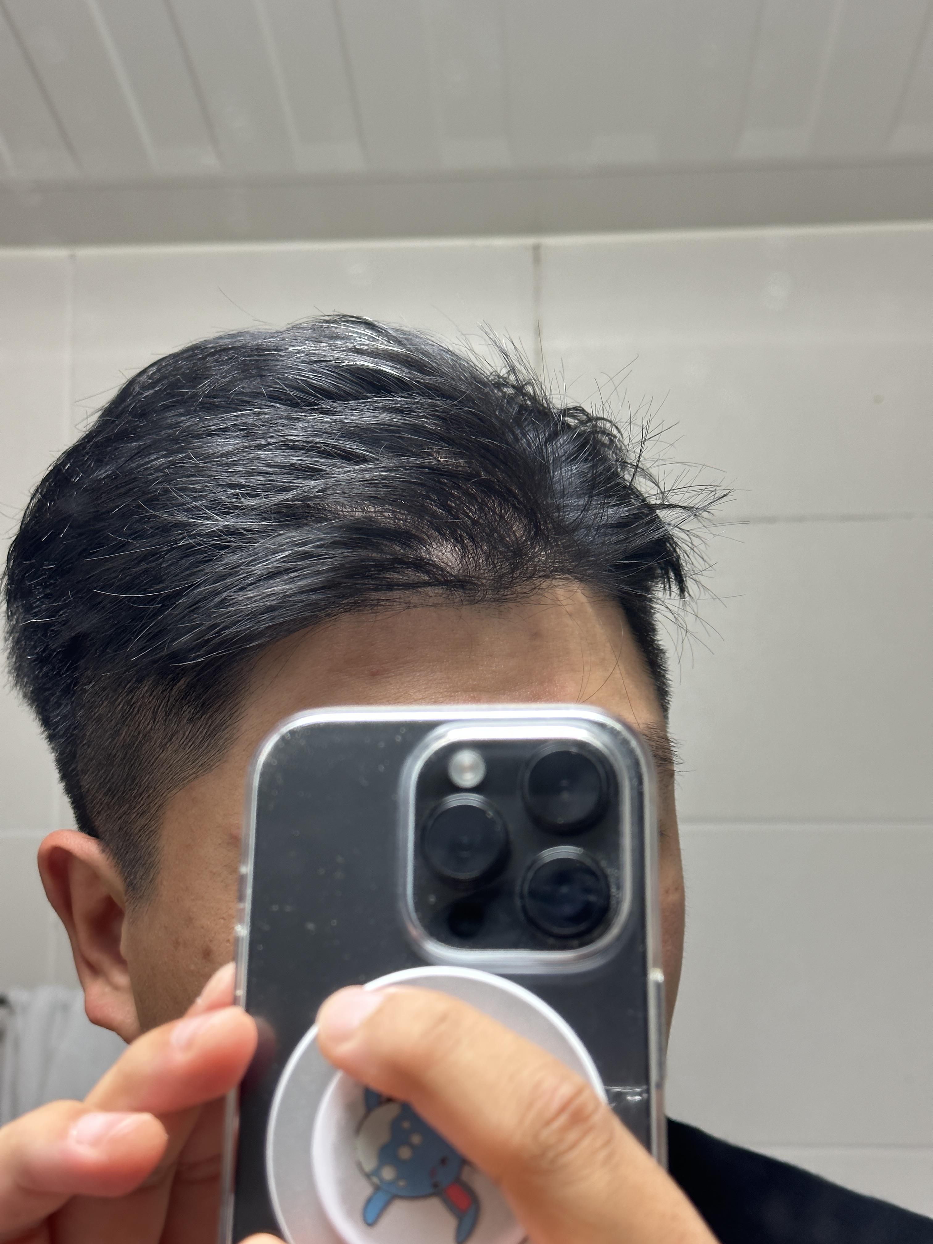 실제 사용 전에 머리를 감아봅니다. 숯이 많지는 않은 평범한 머리입니다. 옆머리가 짧으니 윗머리만 발랐구요.