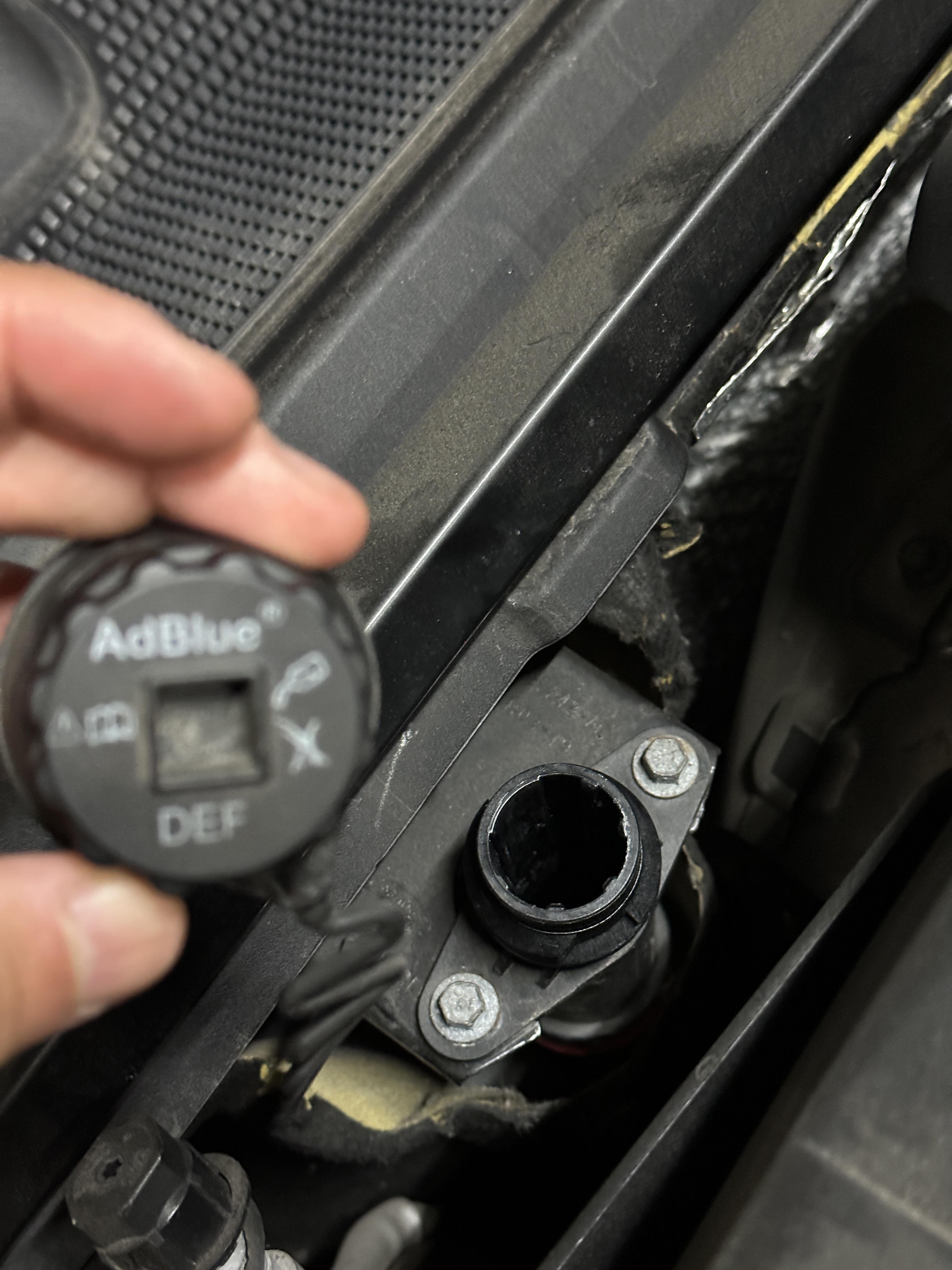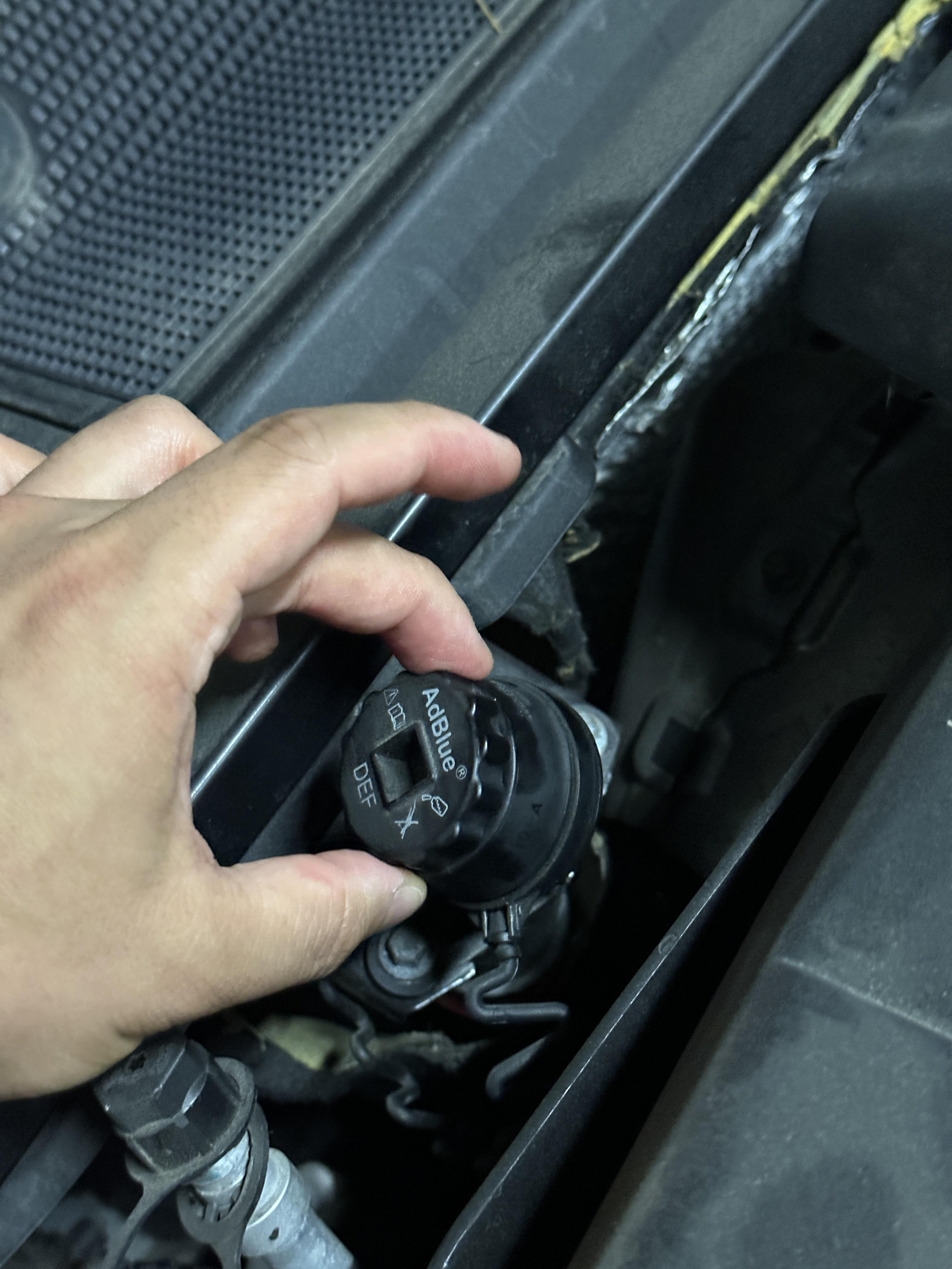 - 엔진룸 위 AdBlue/ DEF라고 쓰여있는 마개를 찾습니다.
