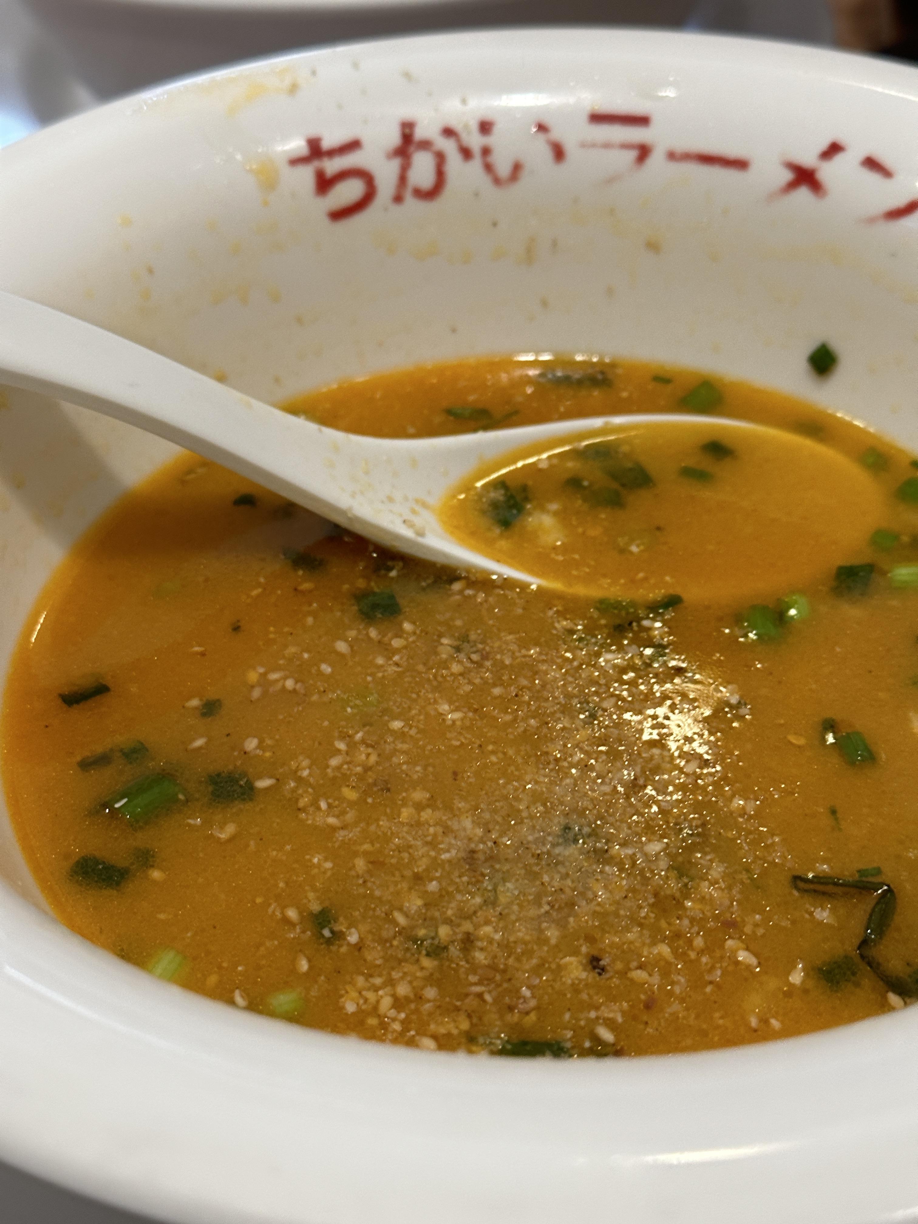 옥수역 일본식 라멘 맛집 치카이라멘의 돈코츠라멘과 매운 돈코츠 라멘 비교샷입니다. 왼쪽이 그냥이고, 오른쪽이 매운 돈코츠라멘입니다.