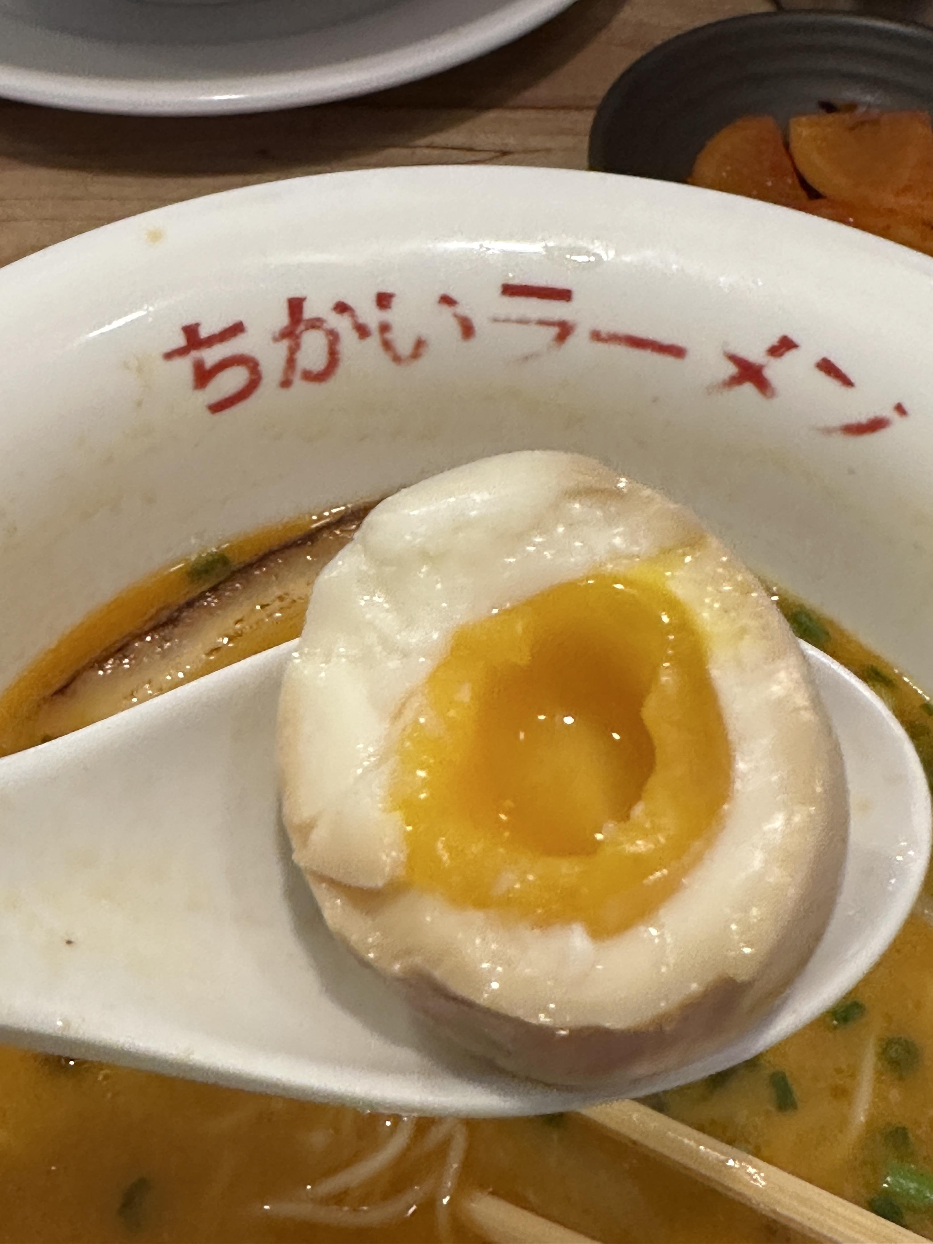 옥수역 일본식 라멘 맛집 치카이라멘의 돈코츠 라멘에는 계란이 있습니다. 반숙으로 되어있으니 참고하시구요. 정말 맛이 좋았습니다.