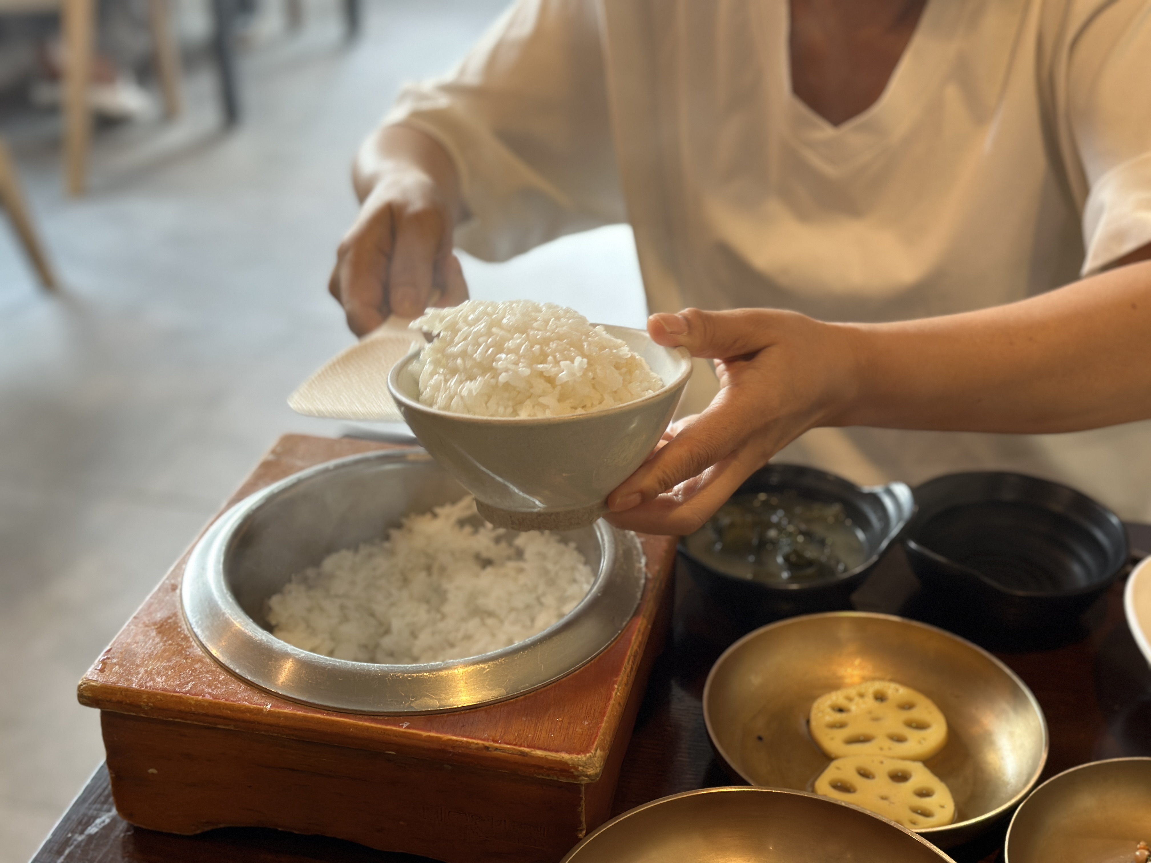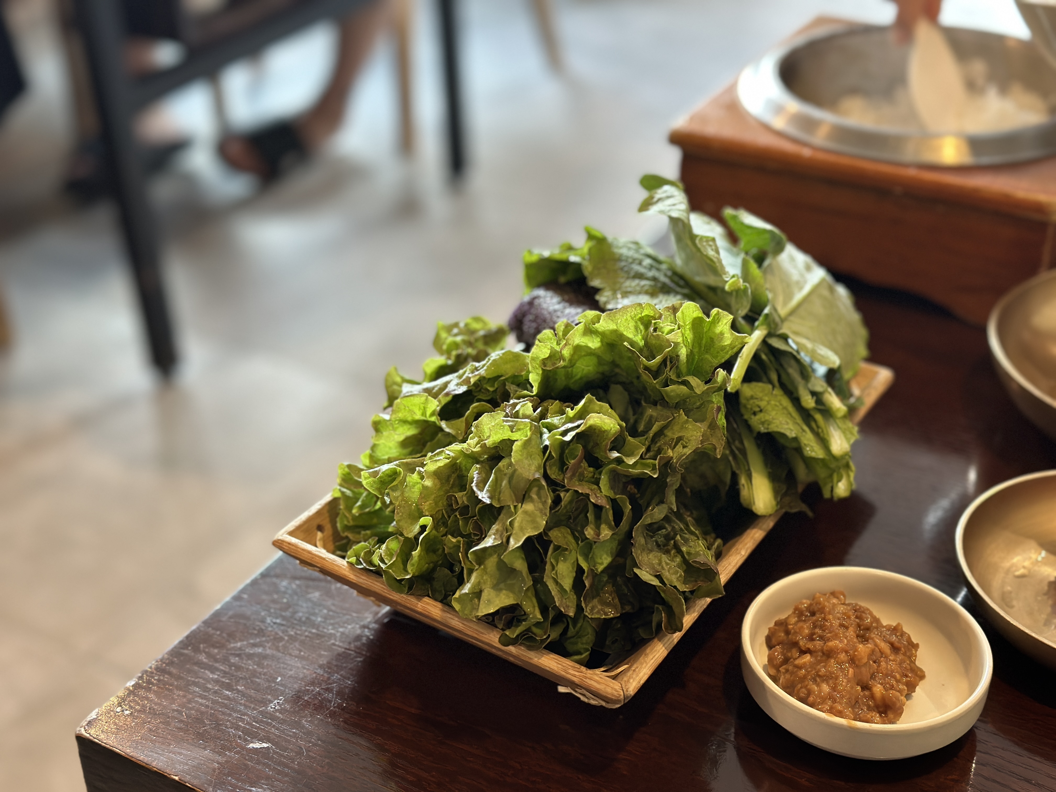 의왕 백운호수 정갈한 한상차림 자연담은밥상 백운재의 내부로 가보겠습니다. 일단 내부에 솥밥이 보입니다. ㅋㅋㅋ 제가 좋아하는 솥밥... 그리고 야채는 알아서 가져갈 수 있었습니다.