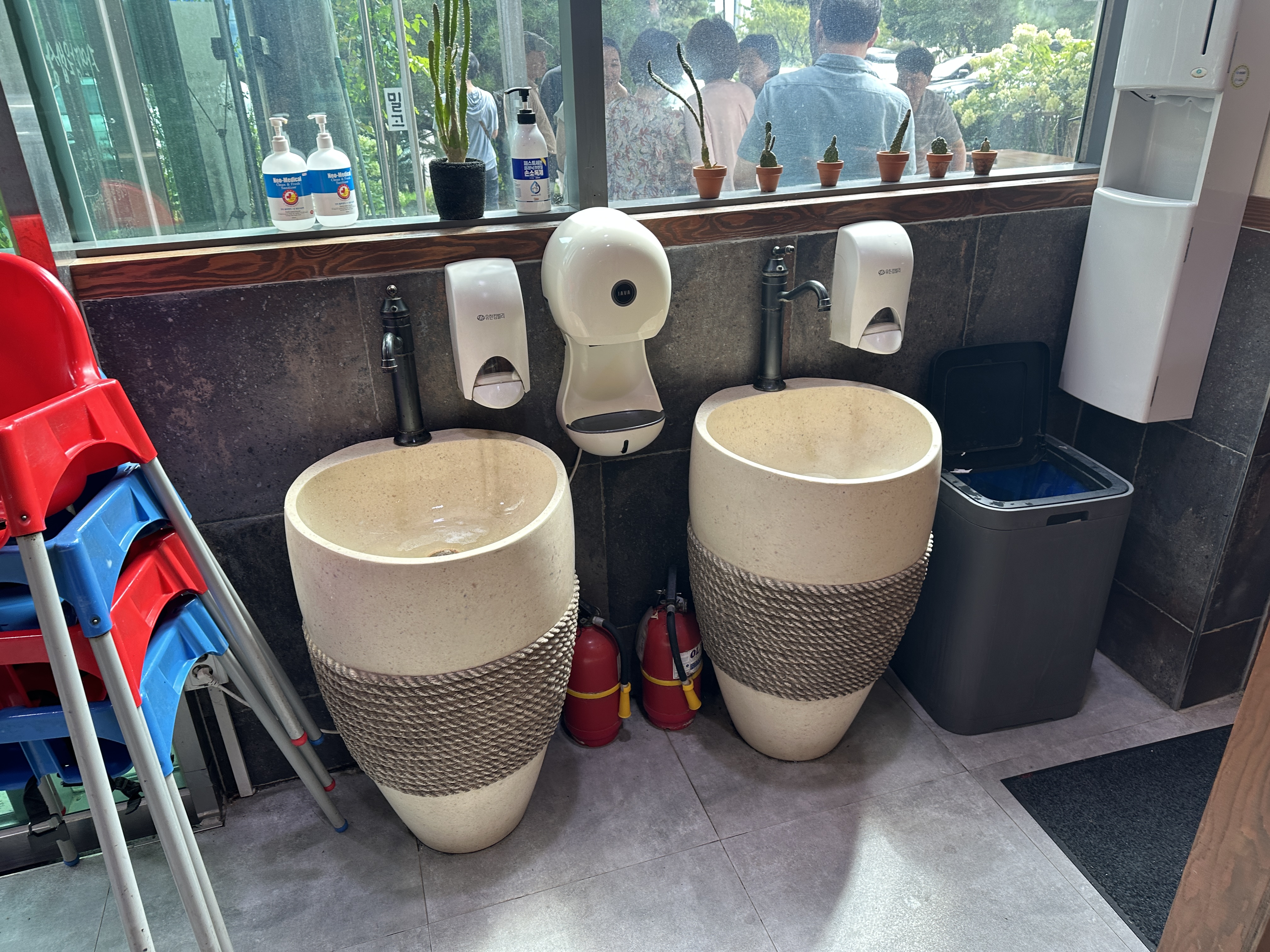 화장실이 입구에 있다보니 세면대가 외부에 있습니다. 오히려 식사 후 손을 씻을 수 있다보니 꽤 장점이라고 보입니다. ㅋㅋㅋ