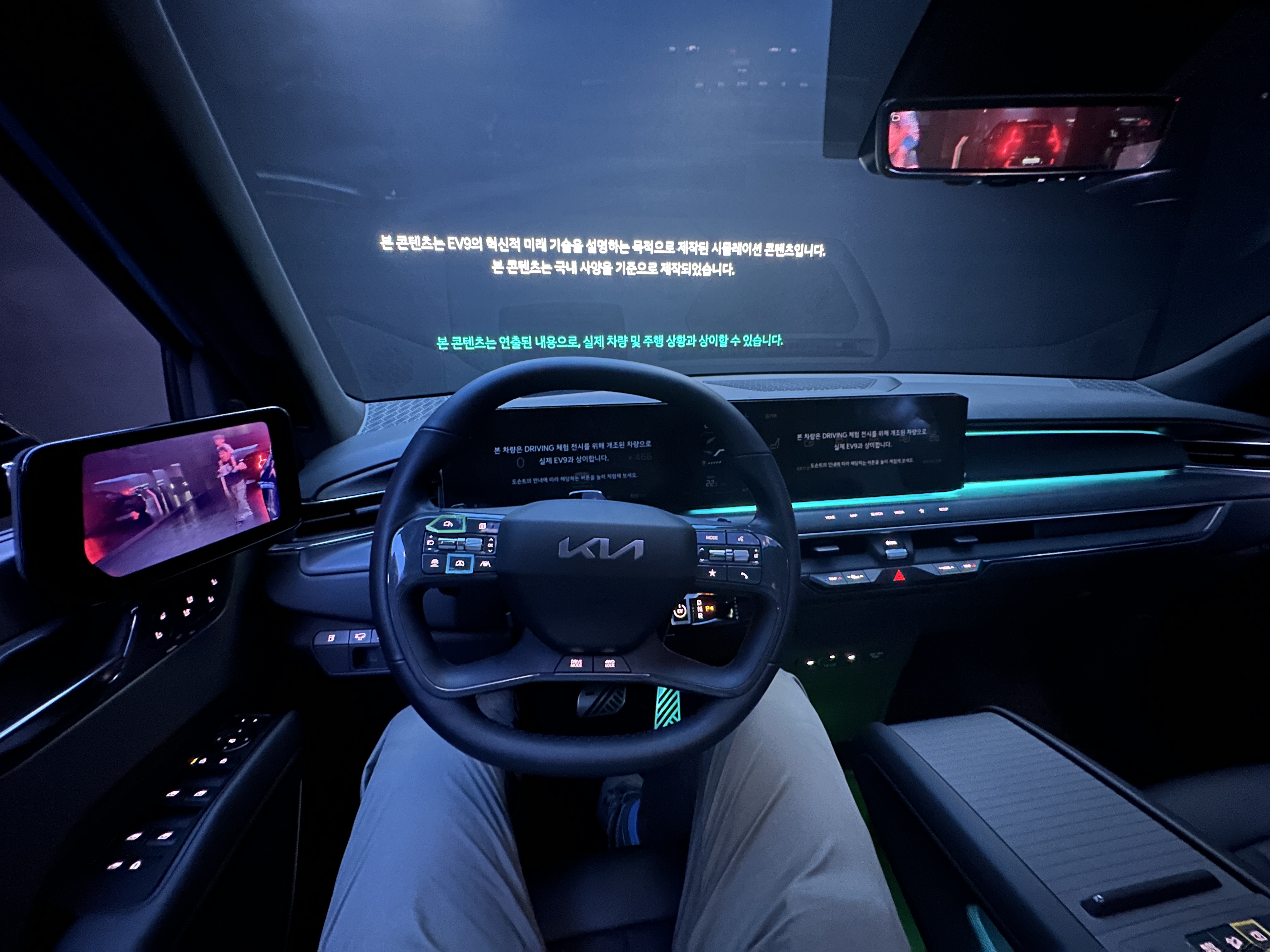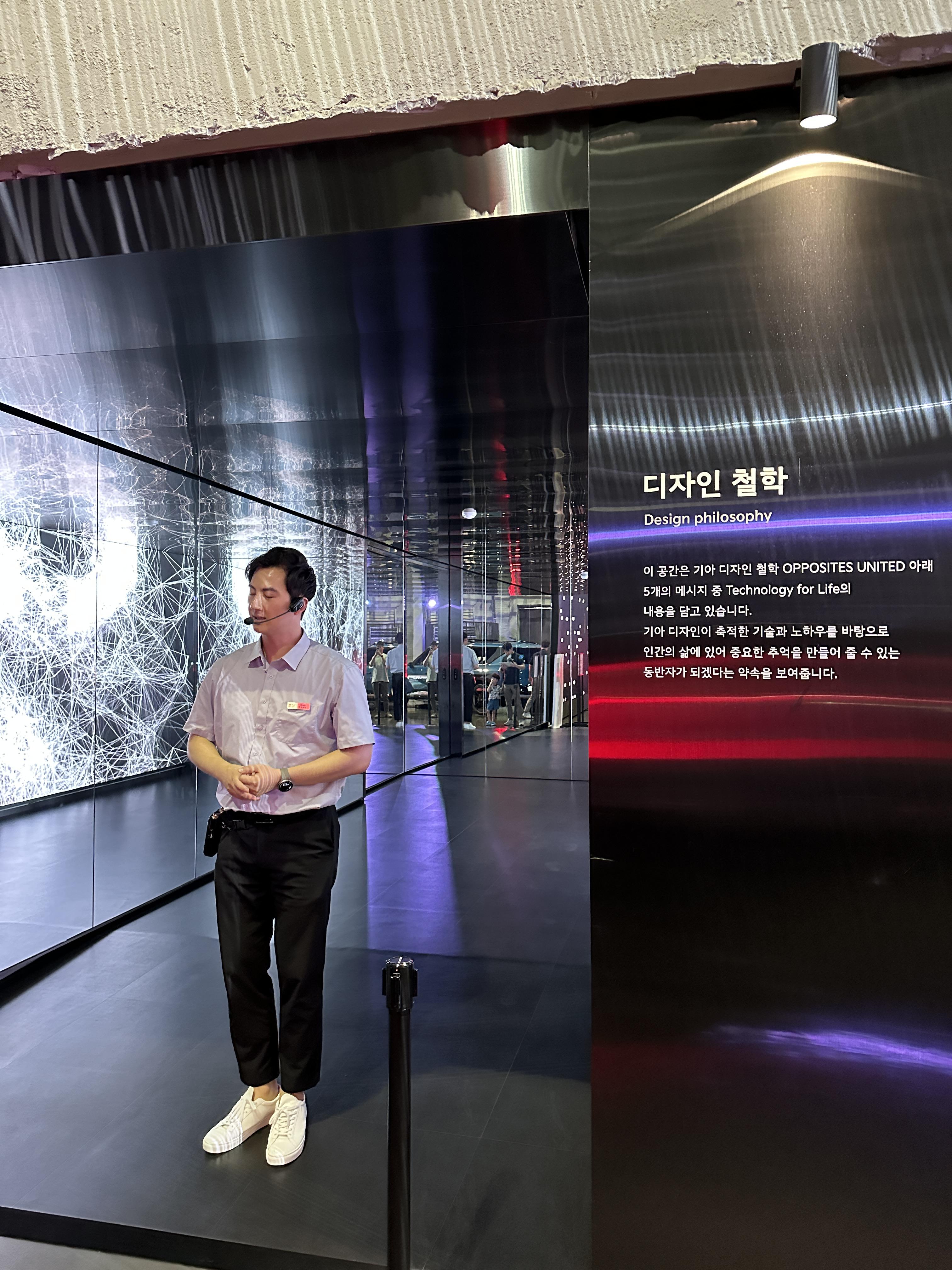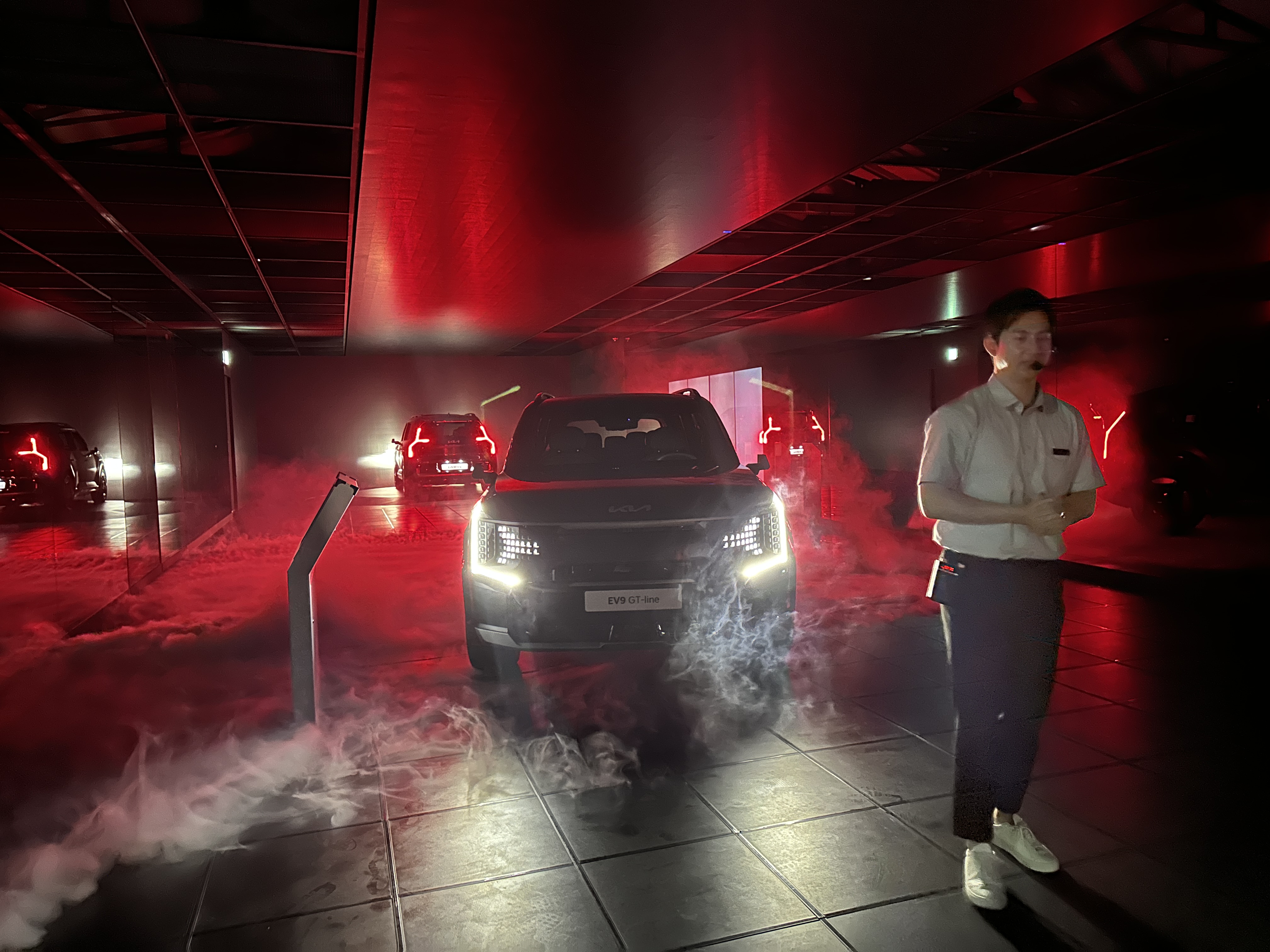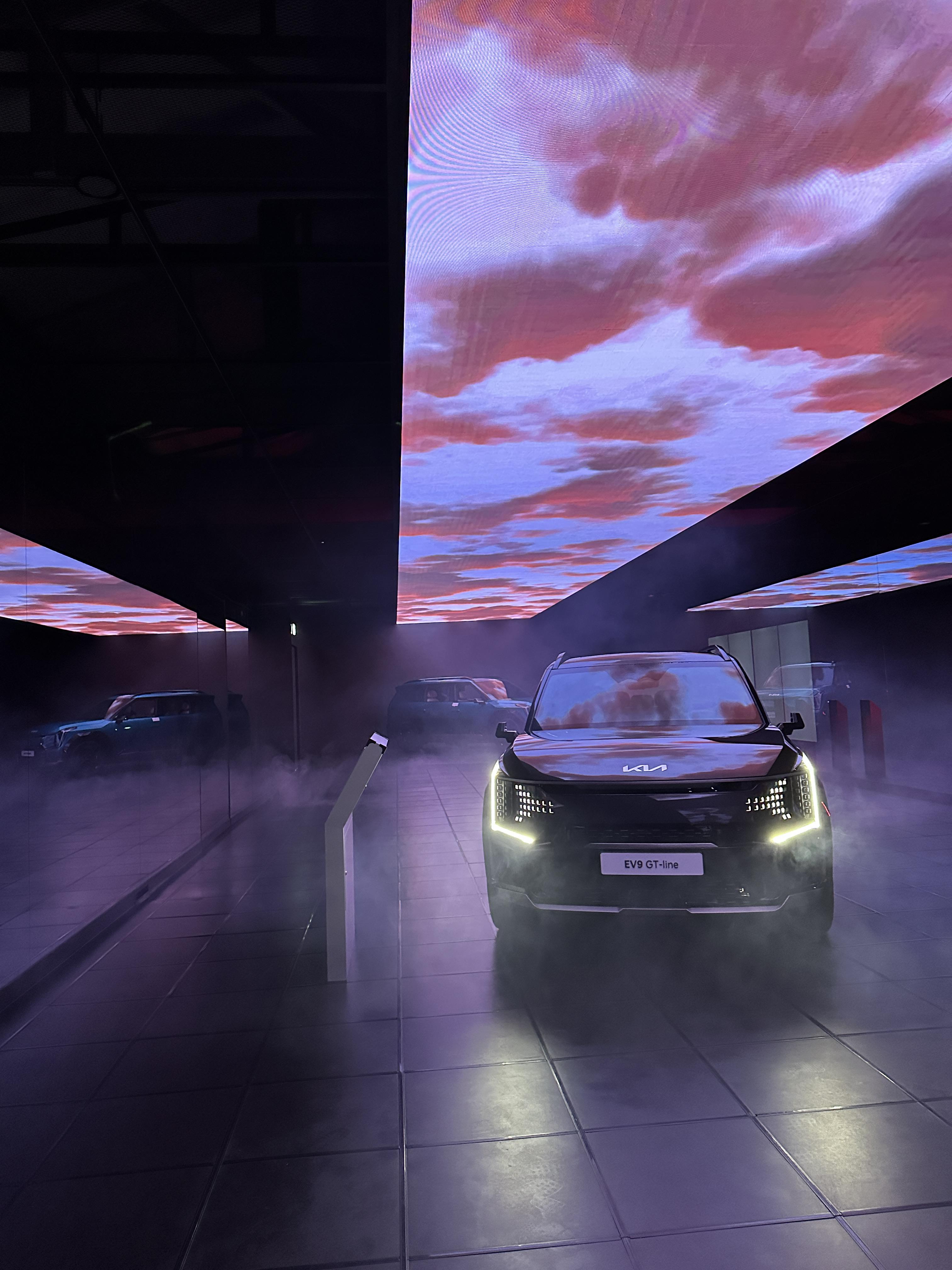 잘생긴 진행자분의 설명을 통해 기아 EV9의 기능들을 설명 듣고 있습니다. 여러 특수효과들이 어우러져서 정말 더할나위 없이 멋진 관람이었습니다.