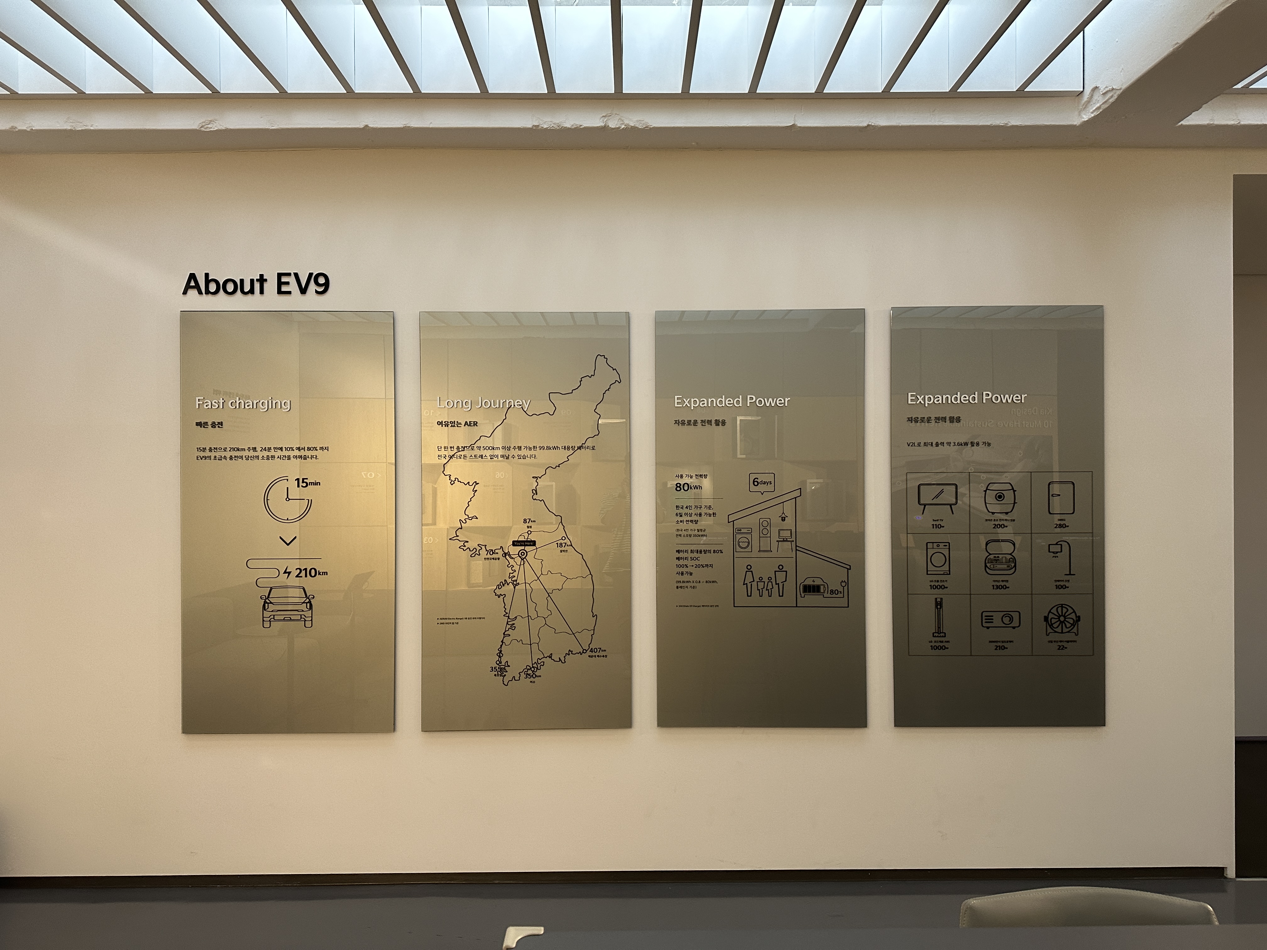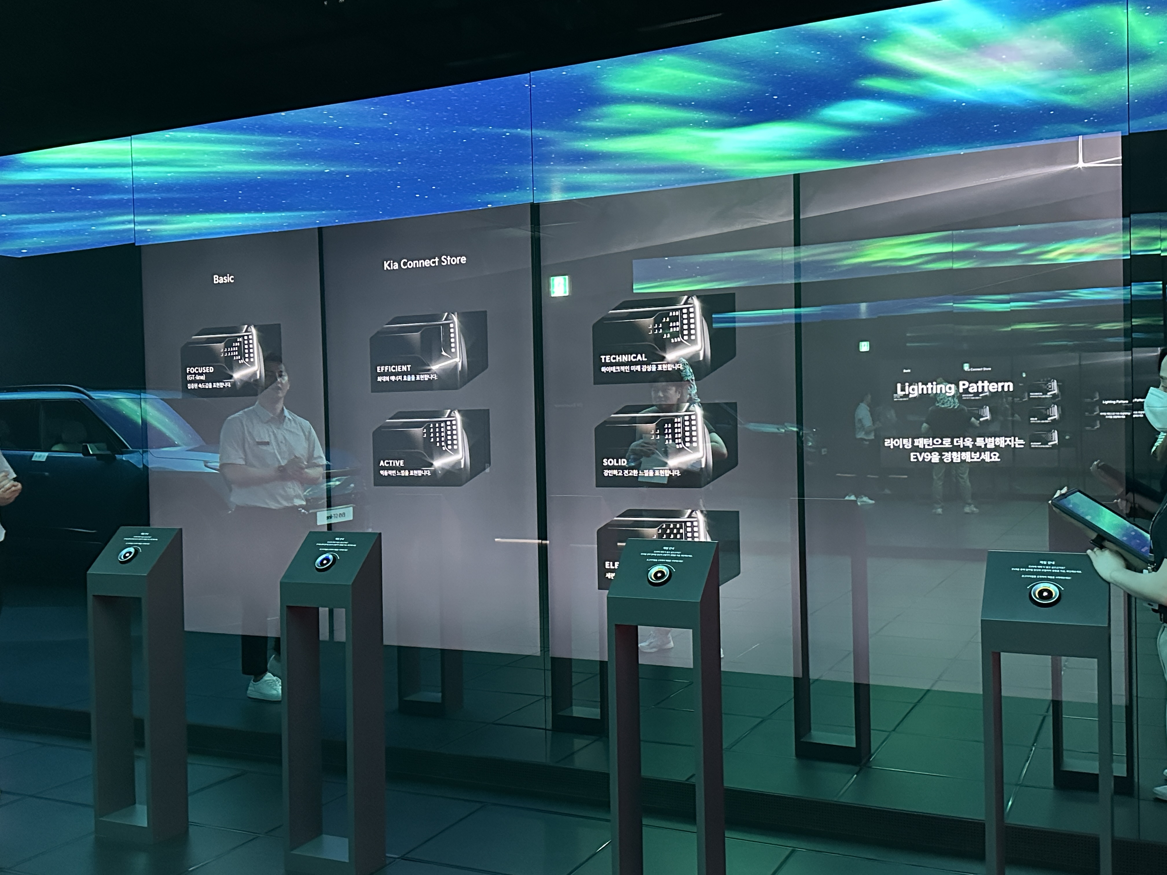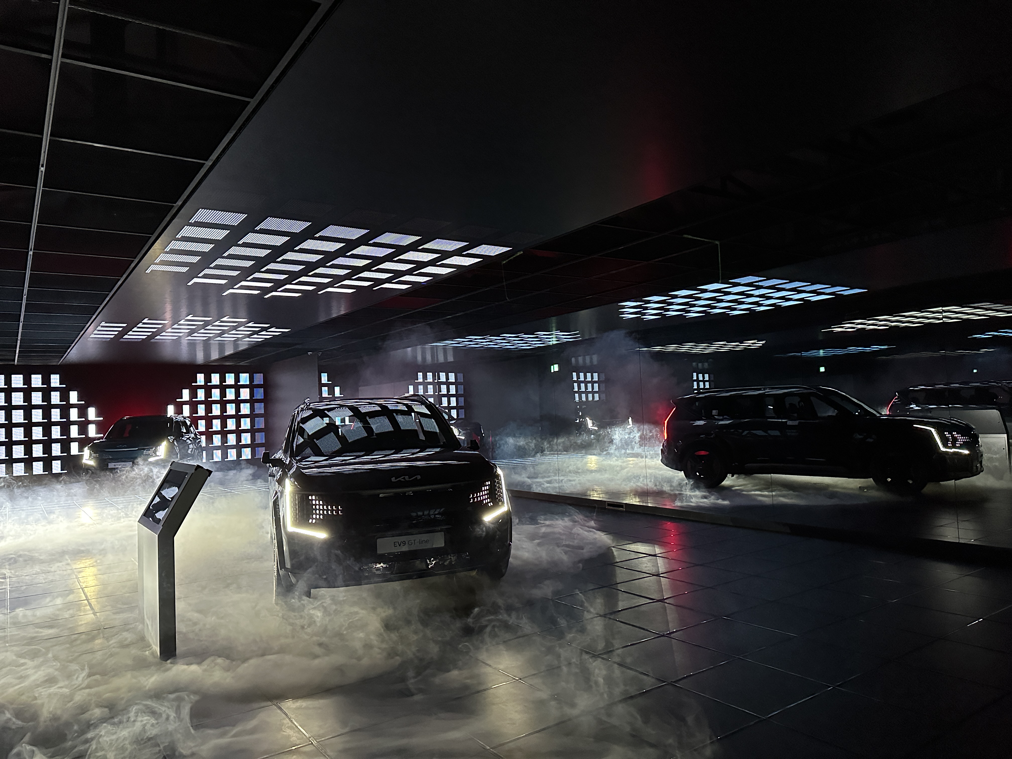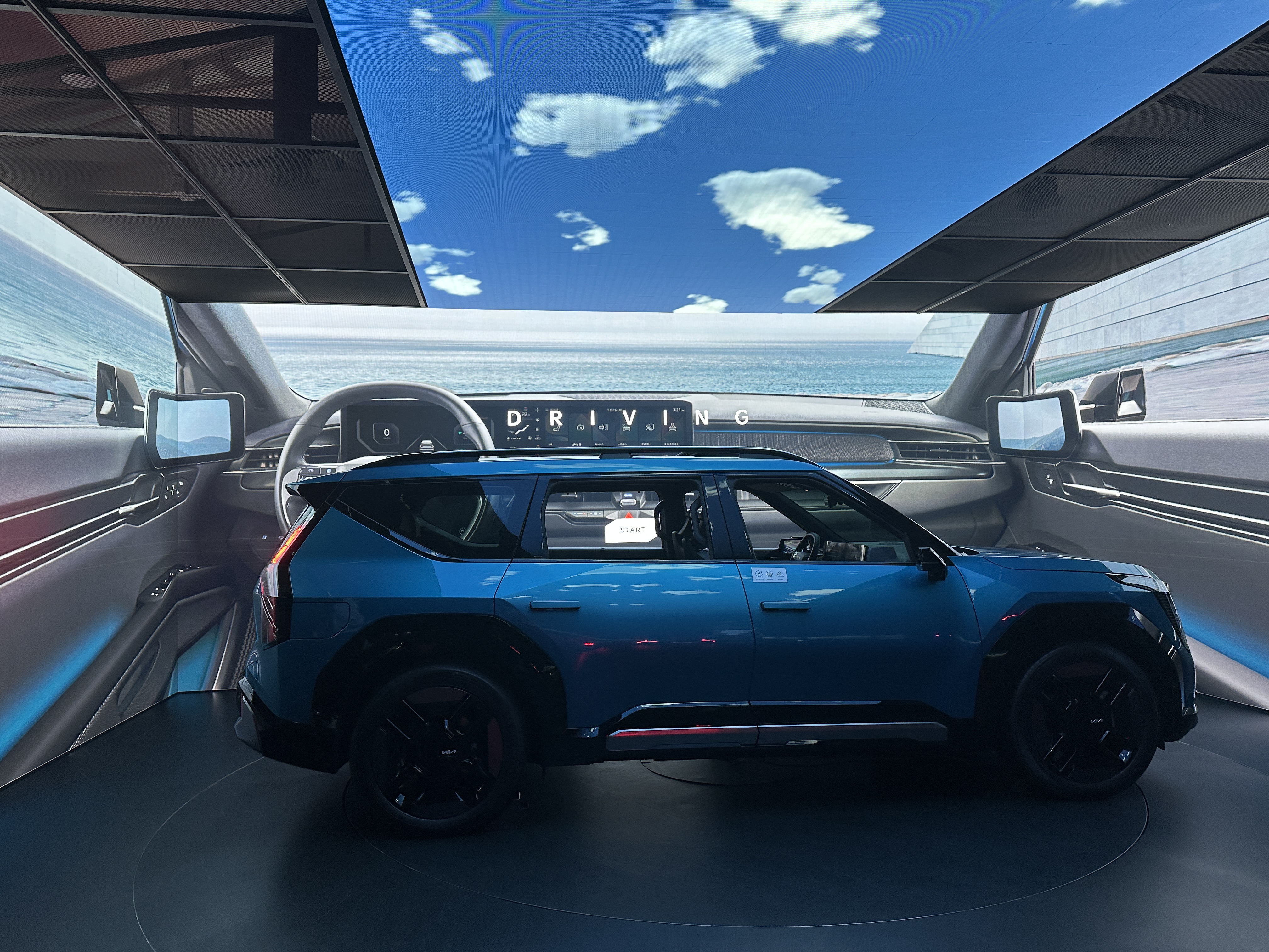 잘생긴 진행자분의 설명을 통해 기아 EV9의 기능들을 설명 듣고 있습니다. 여러 특수효과들이 어우러져서 정말 더할나위 없이 멋진 관람이었습니다.
