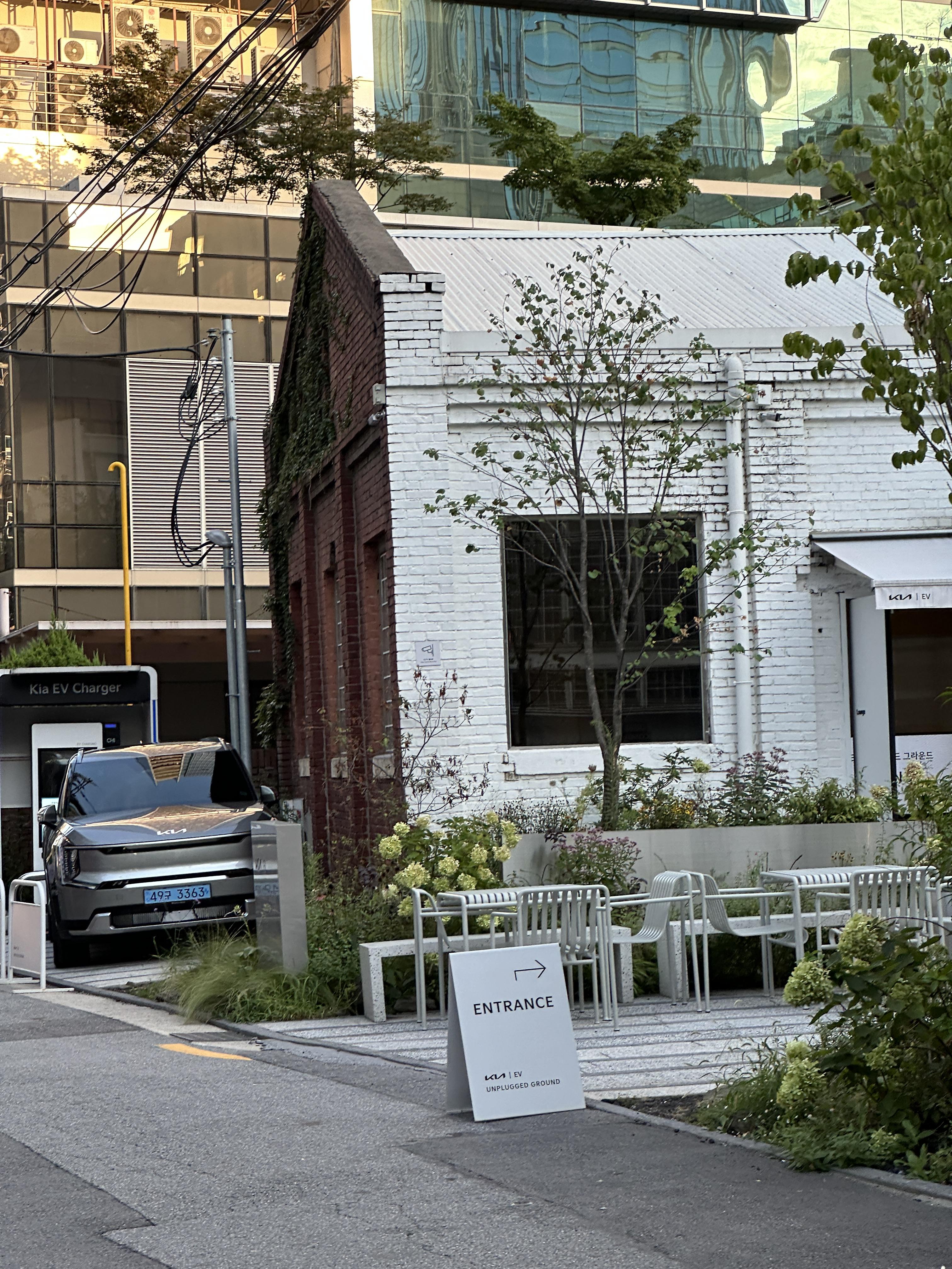 성수동 기아 EV 언플러그드 그라운드의 외관은 정말 깔끔합니다. 물론 성수동의 모든 건물들이 요새 다 깔끔하다보니 그리 특별할 것 없다고 여기실 수 있겠지만, 그래도 생각보다 더 깔끔했습니다.