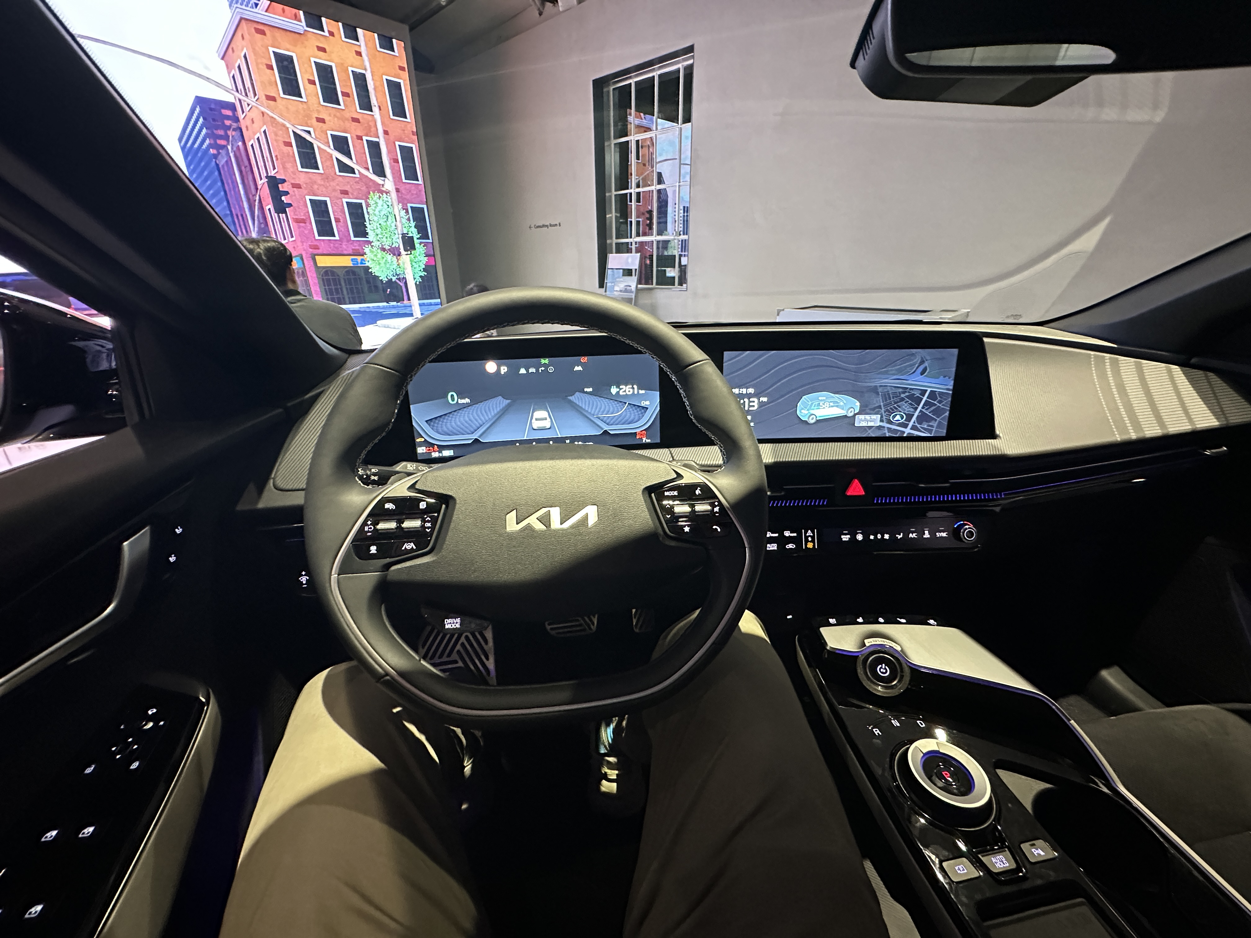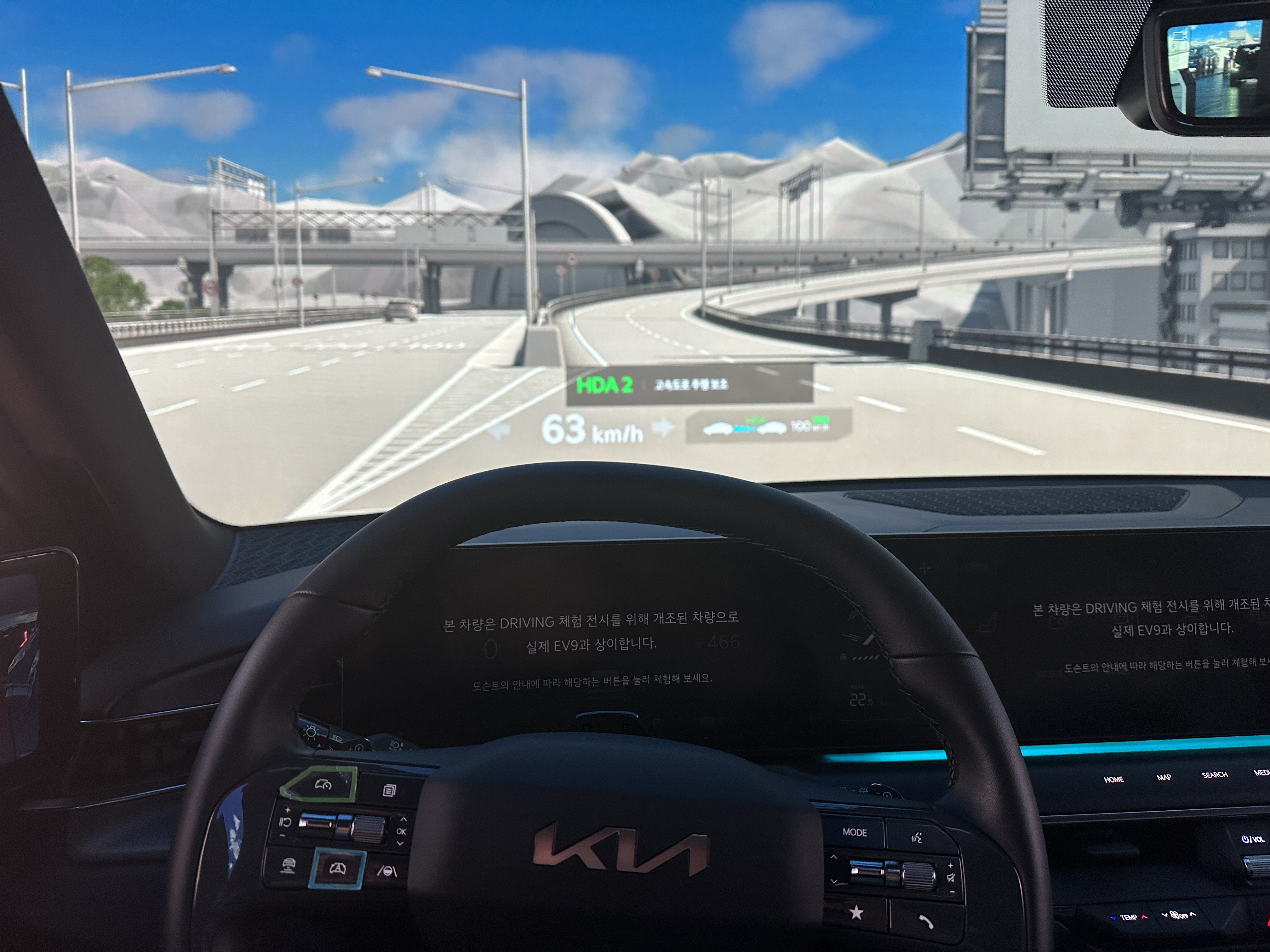 어쩌다보니 직접 운전대에 앉아서 체험을 하는 시간도 가졌습니다. ㅋㅋㅋ 전면에 화면이 막 움직이다보니 직접 내가 운전하고 있는 느낌도 받을 수 있었습니다. 다양한 기능들을 실제 시각적인 요소들을 포함하여 설명해 주시네요.