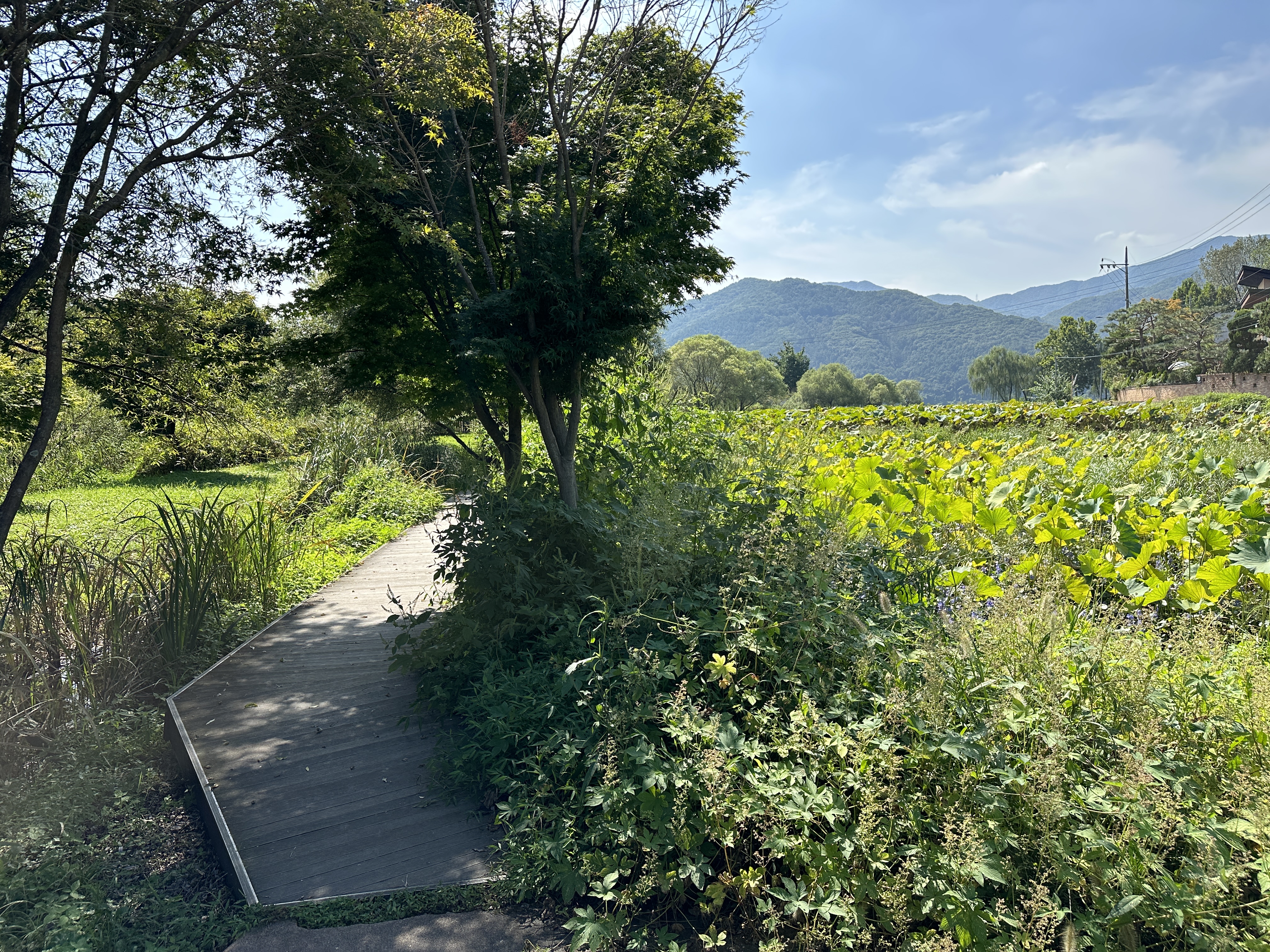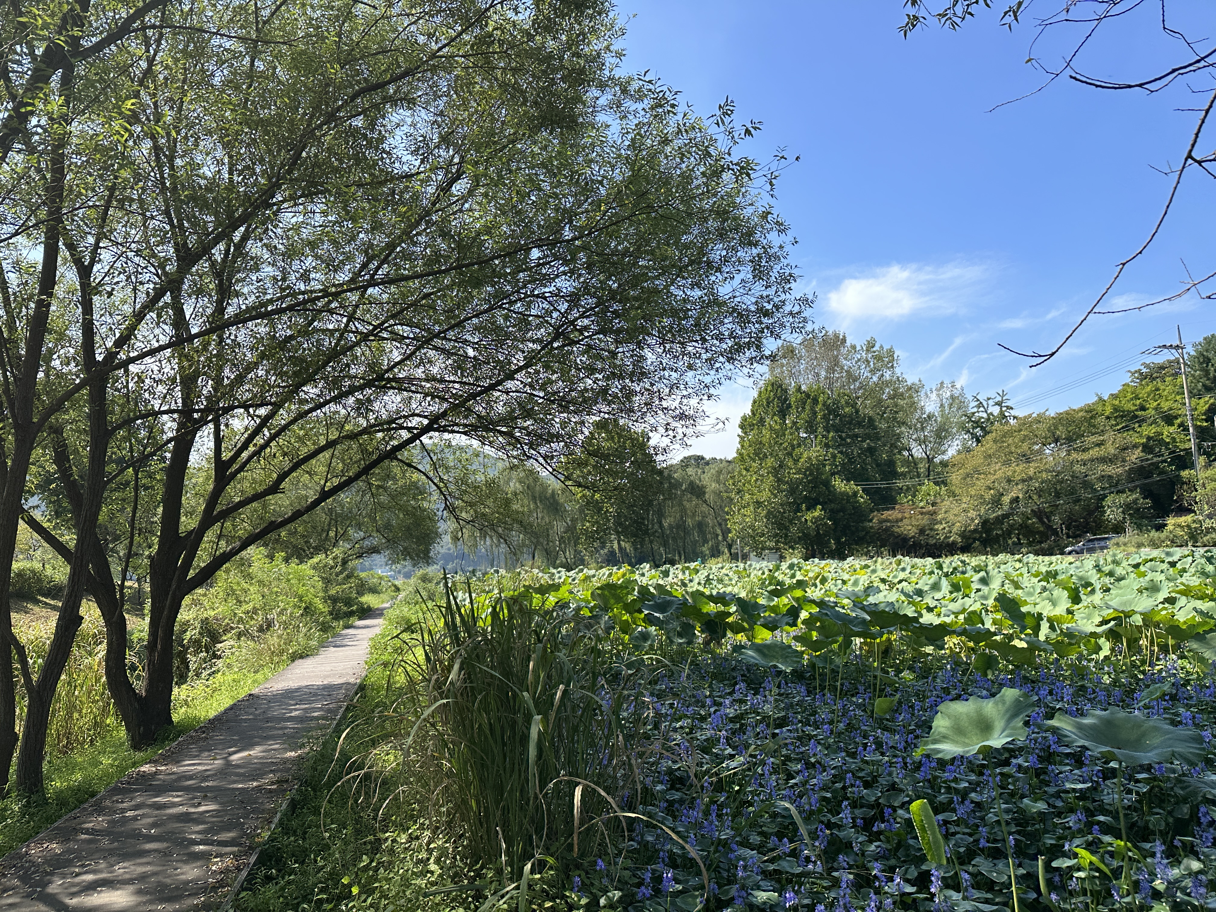 수변공원이라는 이름에 걸맞게 연꽃이 가득한 것이 특징입니다. 탁 트인 뷰와 녹음이 가득한 풍경이 매우 아름다운 모습입니다.
