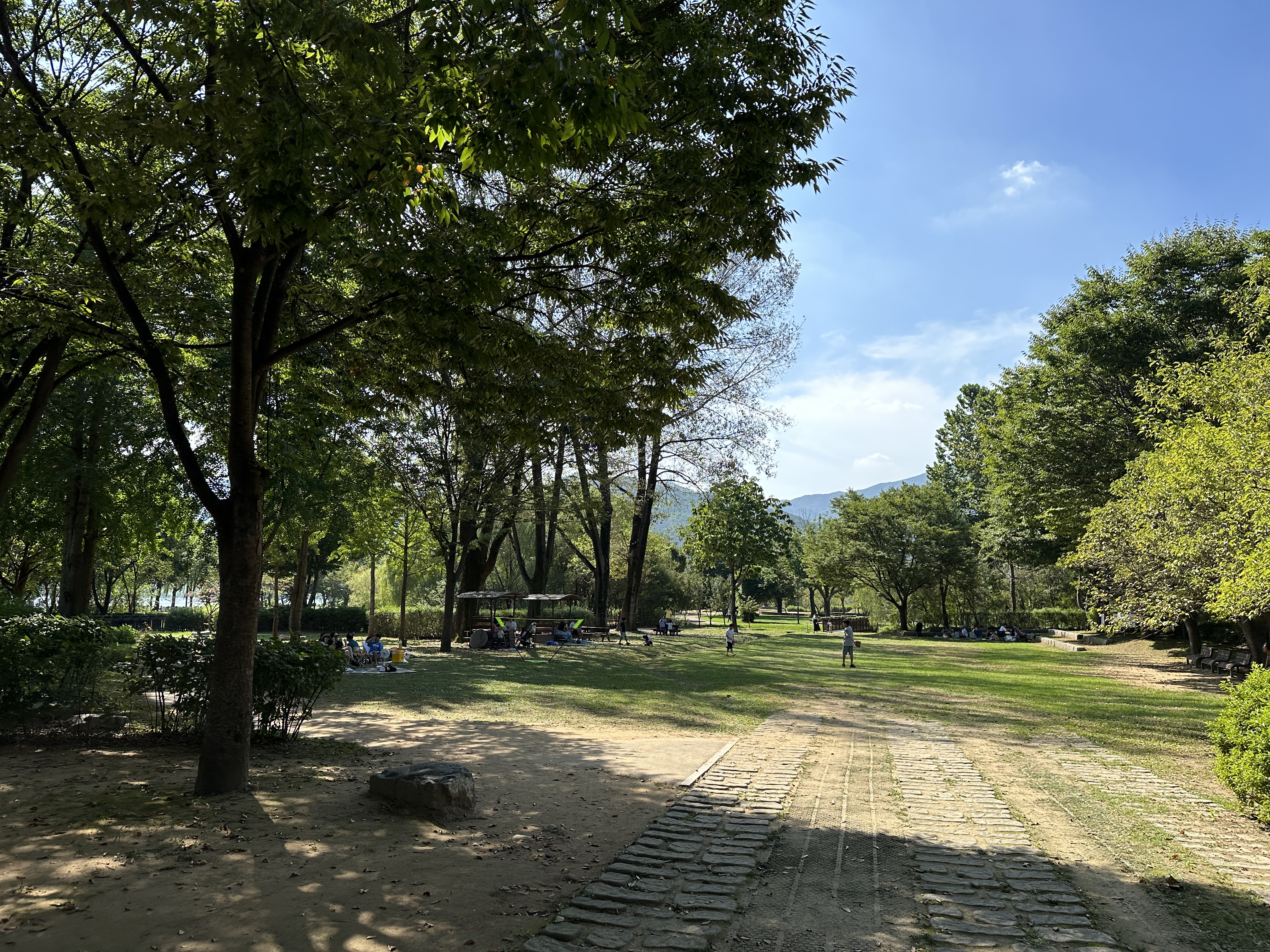 일단 들어가서 오른쪽 수변공원쪽으로 향해봅니다. 울창한 나무 아래에 휴식을 취하고 계신 여행객들이 많았습니다. 아무래도 위치 상 강점이 있다보니 많이 찾으시기도 합니다.