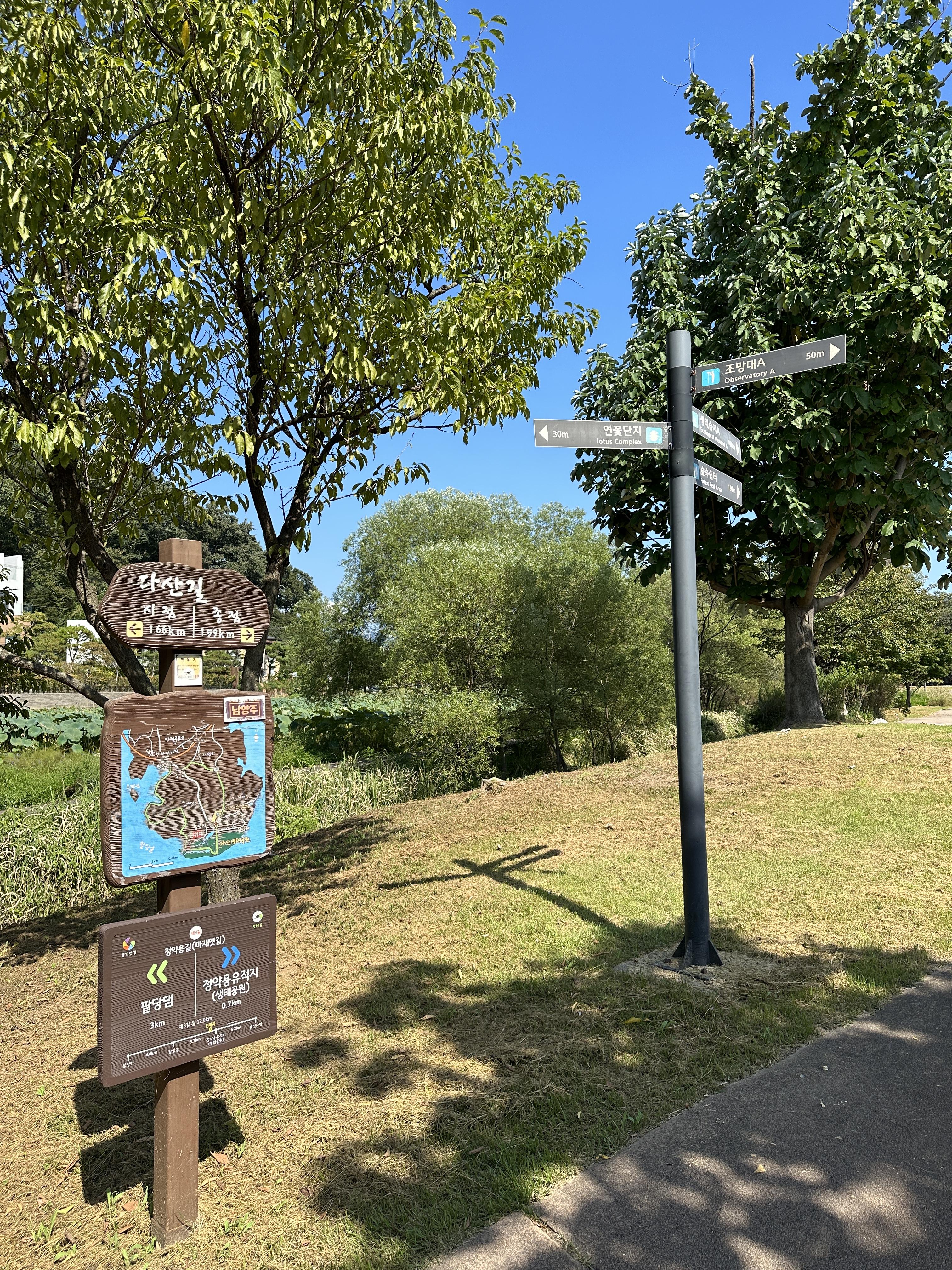 수변공원에서 넘치는 연꽃들을 보고 있으면, 다시 안내판이 보입니다. 끝까지 왔다는 의미겠죠? ㅋㅋㅋ 이제 이어진 길을 따라 가게되면, 사진처럼 다리가 나옵니다.