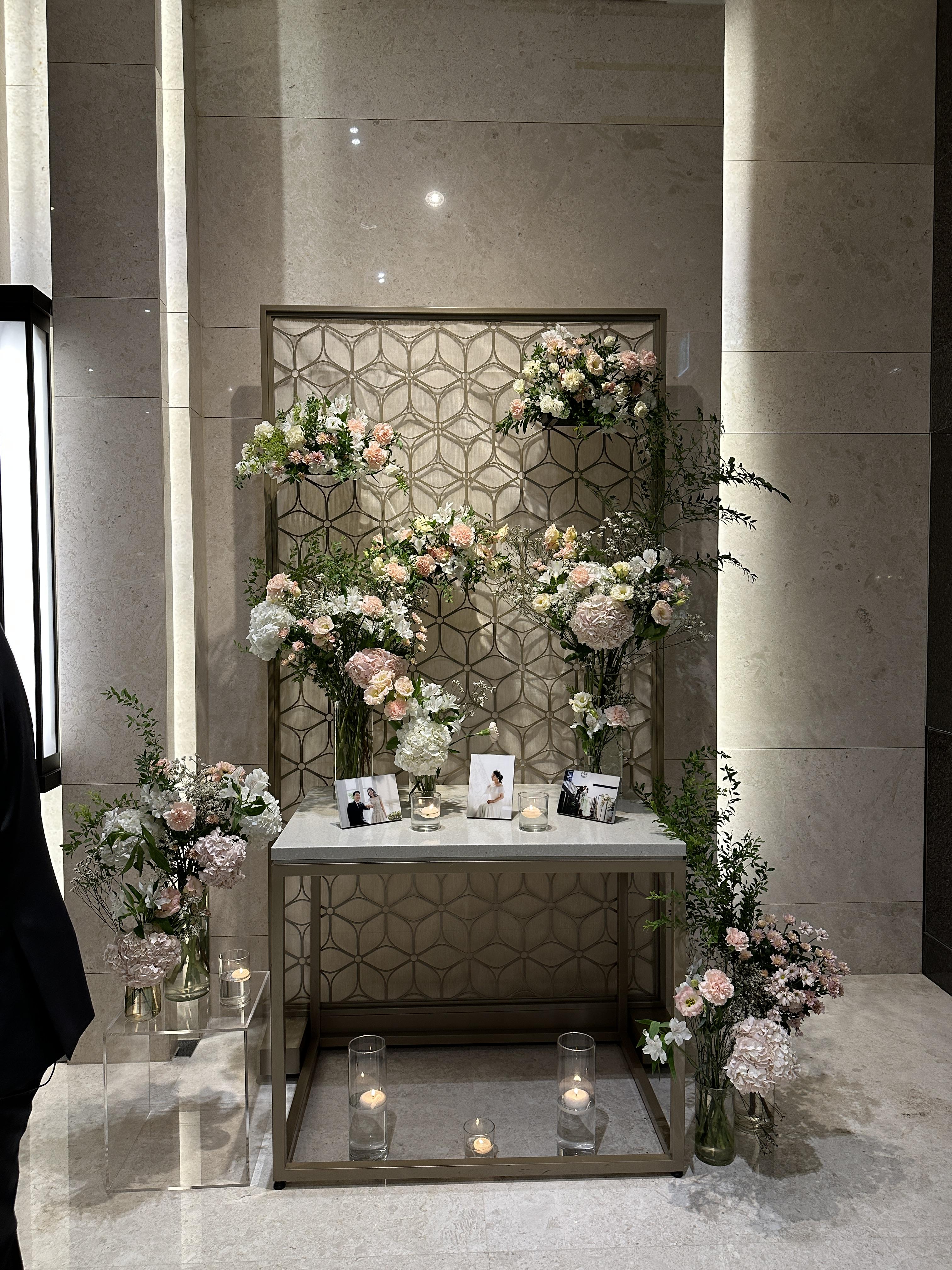 양재역 엘블레스 웨딩홀의 포토월 역시 멋집니다. 꽃장식부터 사진까지 꽤나 분위기 있게 준비되어 있습니다. 만족