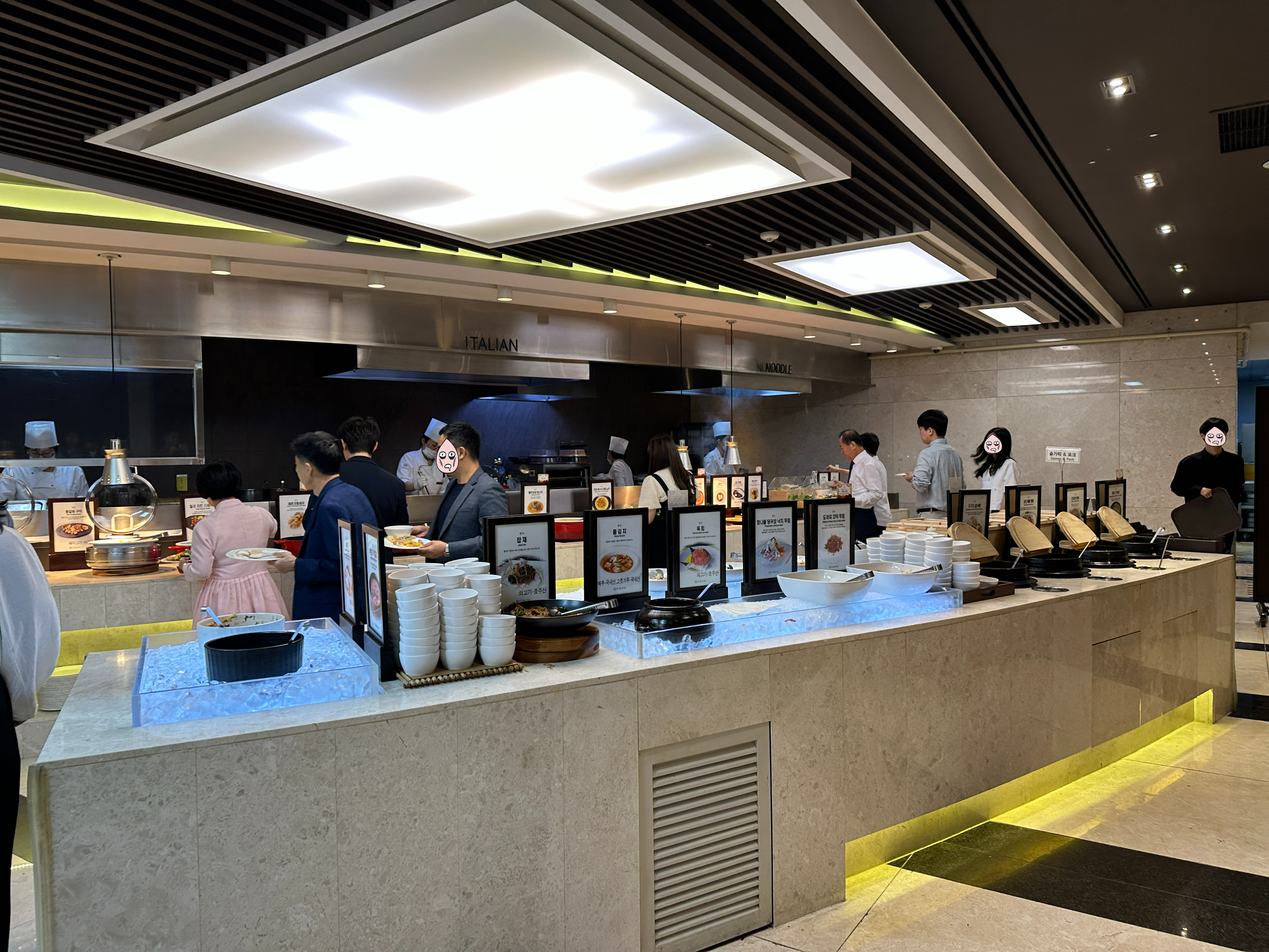 양재역 엘블레스 웨딩홀의 연회장, 지난 번에 봤던 그대로입니다. 식당 메뉴부터 마음에 드는 모습이예요. 역시 밥블레스라 불리는 곳의 명성은 이런 것이었군요.