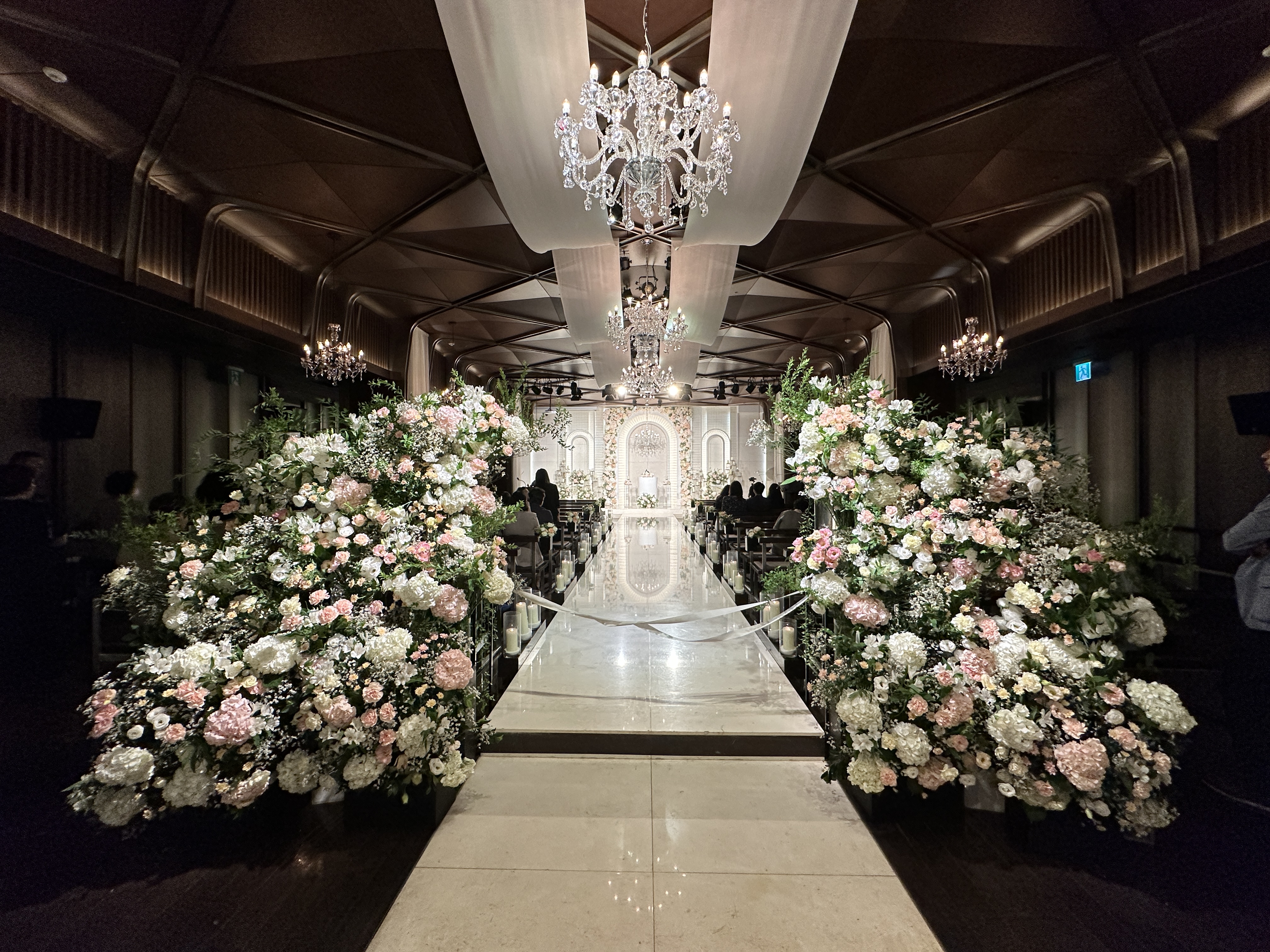양재역 엘블레스 웨딩홀 식장 내부에 꽃도 가득 장식되어 있는 모습을 보니 정말 멋진 듯 합니다. 휑한 느낌이 완전히 사라졌어요. +_+