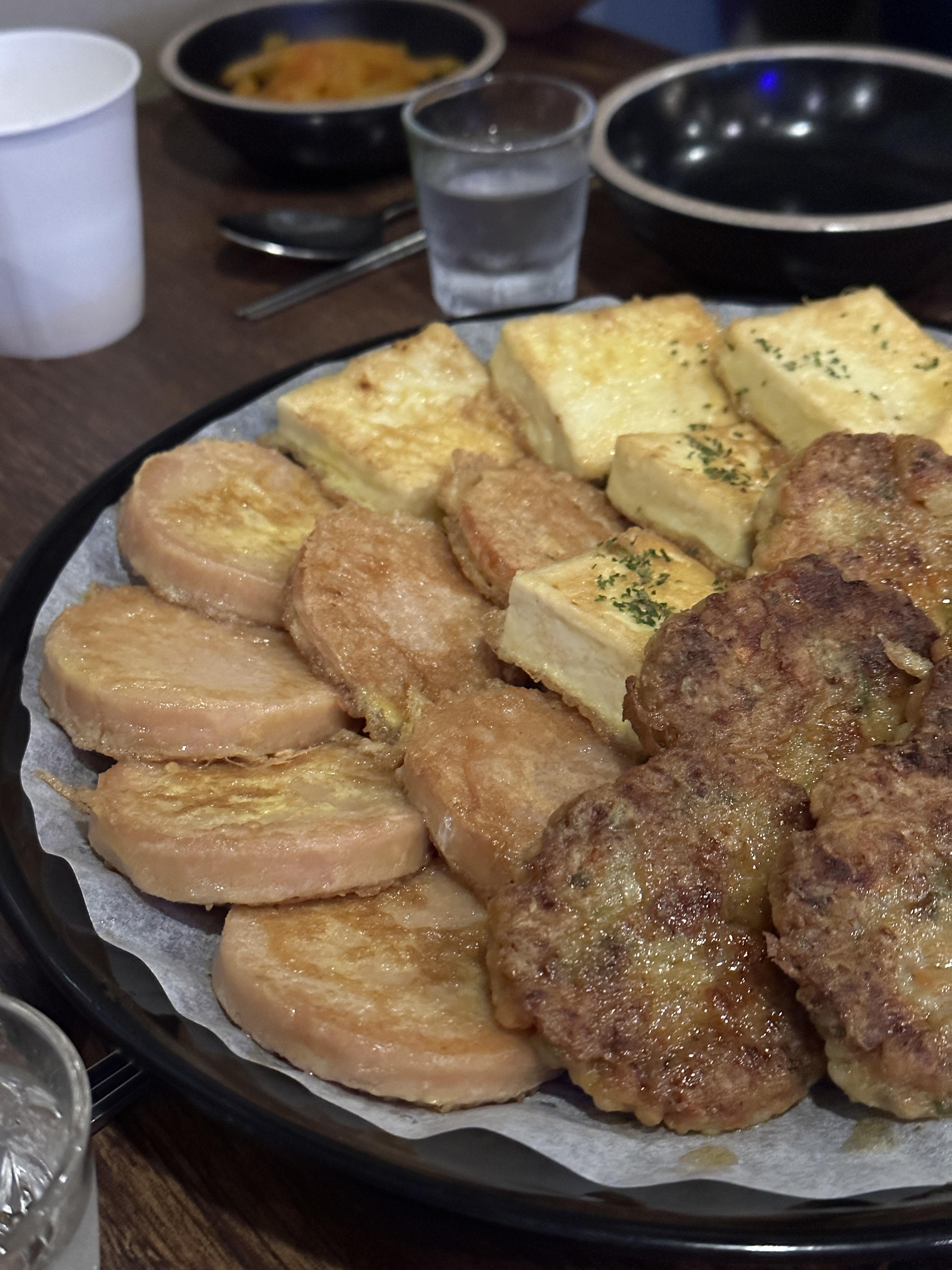 두부에는 간장을, 추억의 소세지에는 케찹을, 동그랑땡에는 아무것도 찍어 먹지 않았어요. 그게 바로 먹는 방법이죠.