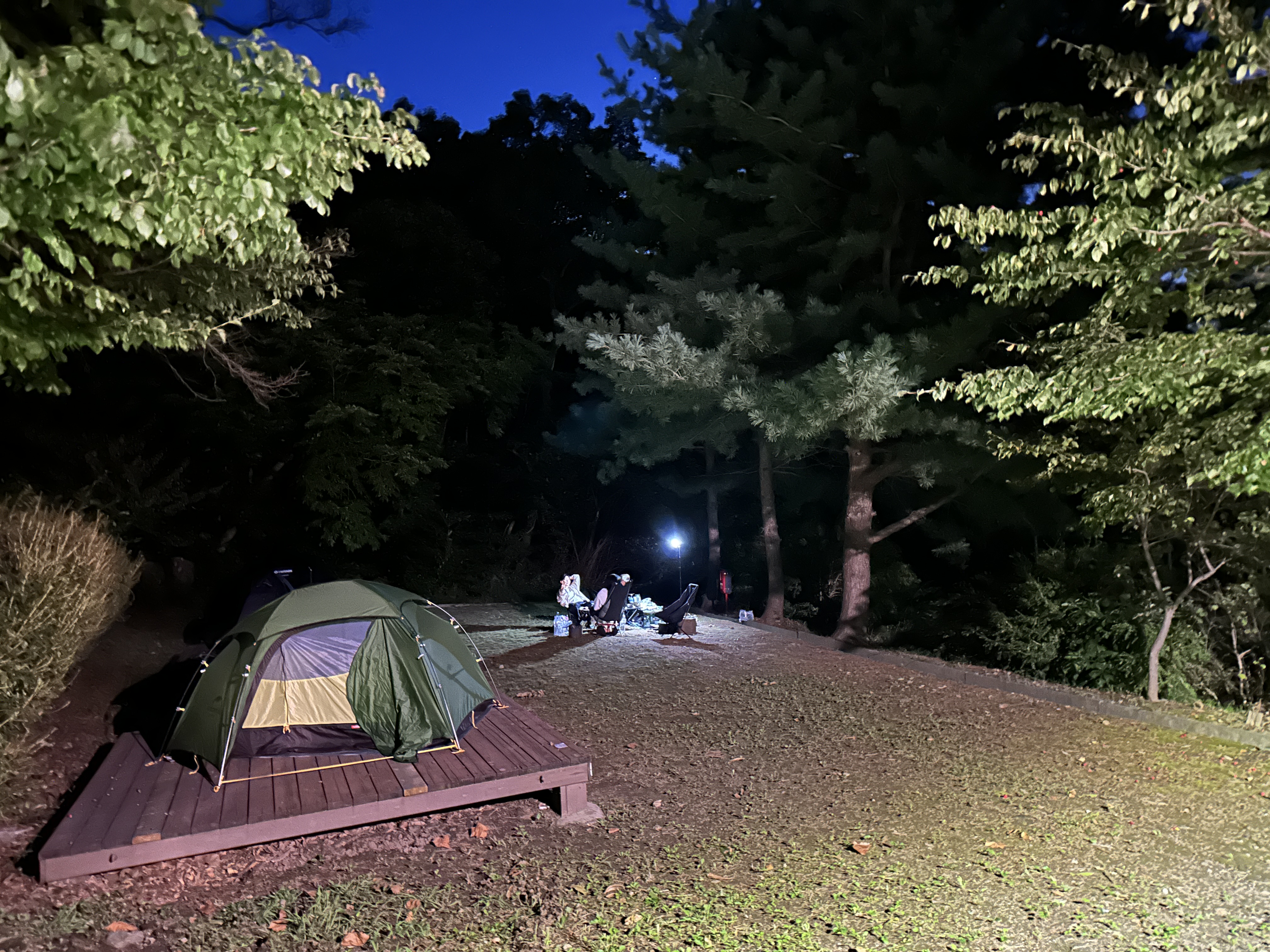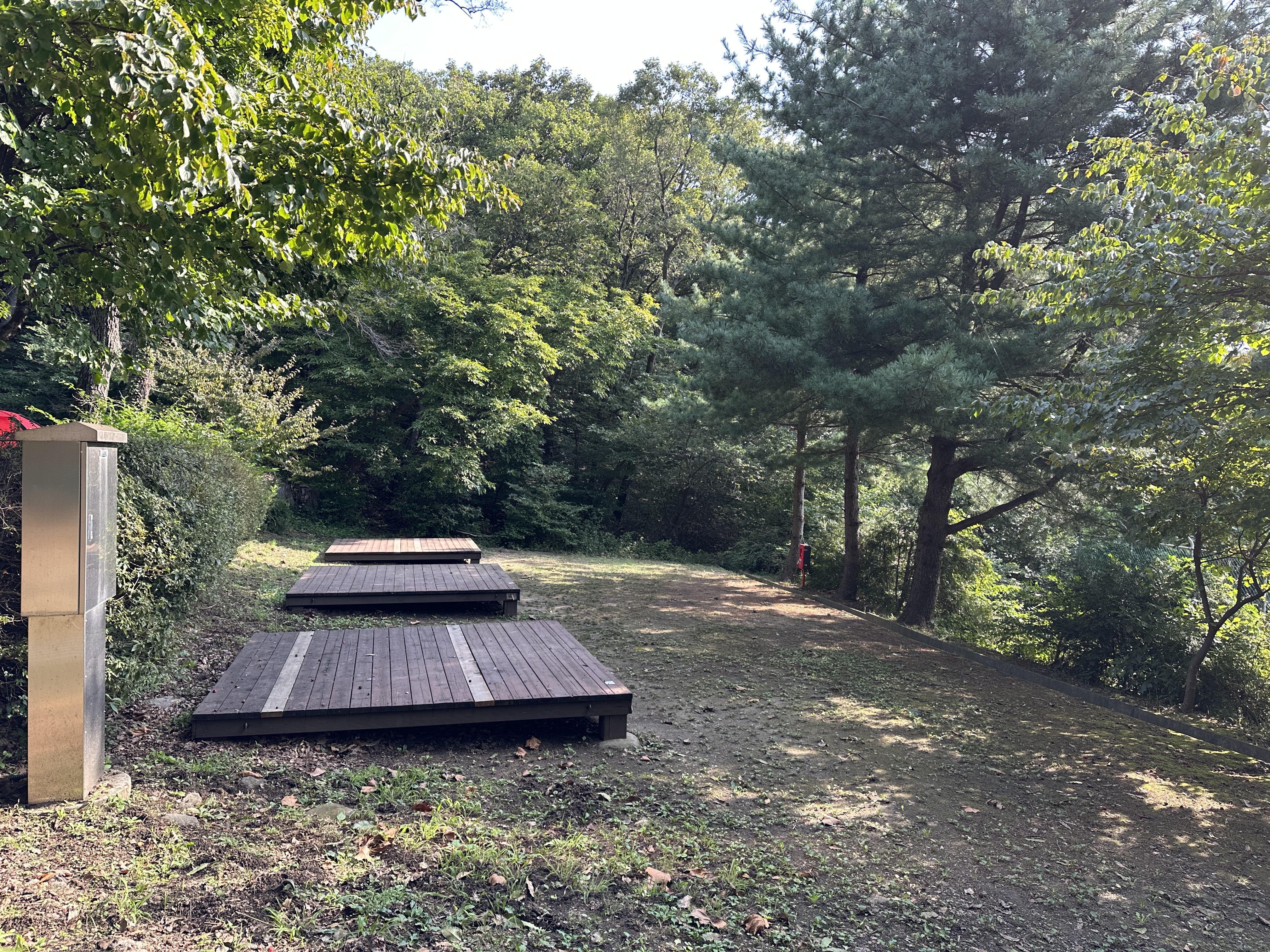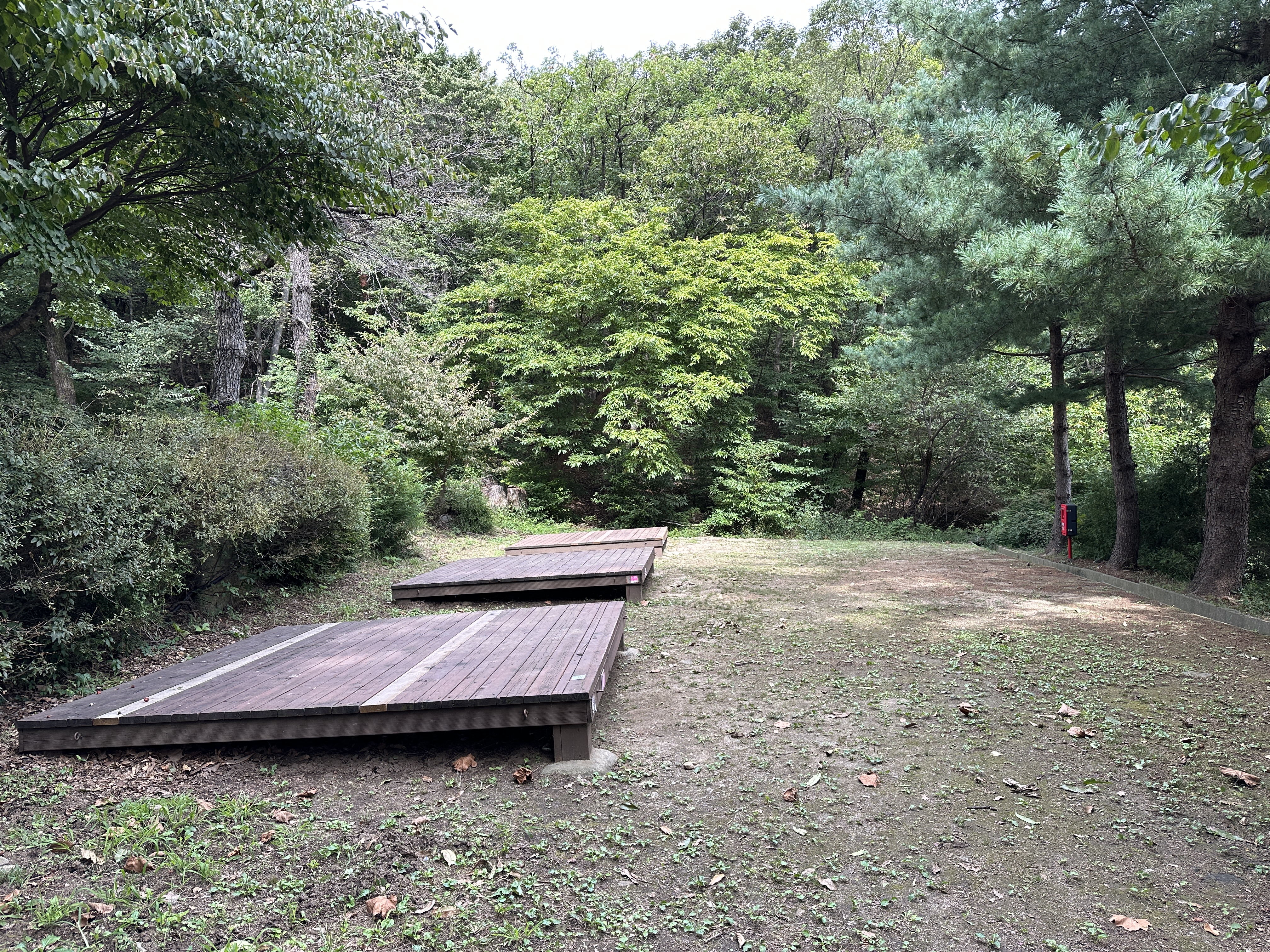 신기하게도 딱 이렇게 세개의 데크가 있었습니다. 강화도 함허동천 제 4 야영장의 입구쪽이었습니다. 데크 세개를 다 쓰다보니 앞쪽 공간도 활용이 가능해서 앞에 테이블을 세팅하고 사용하면 완벽한 1박이 될 기세죠.