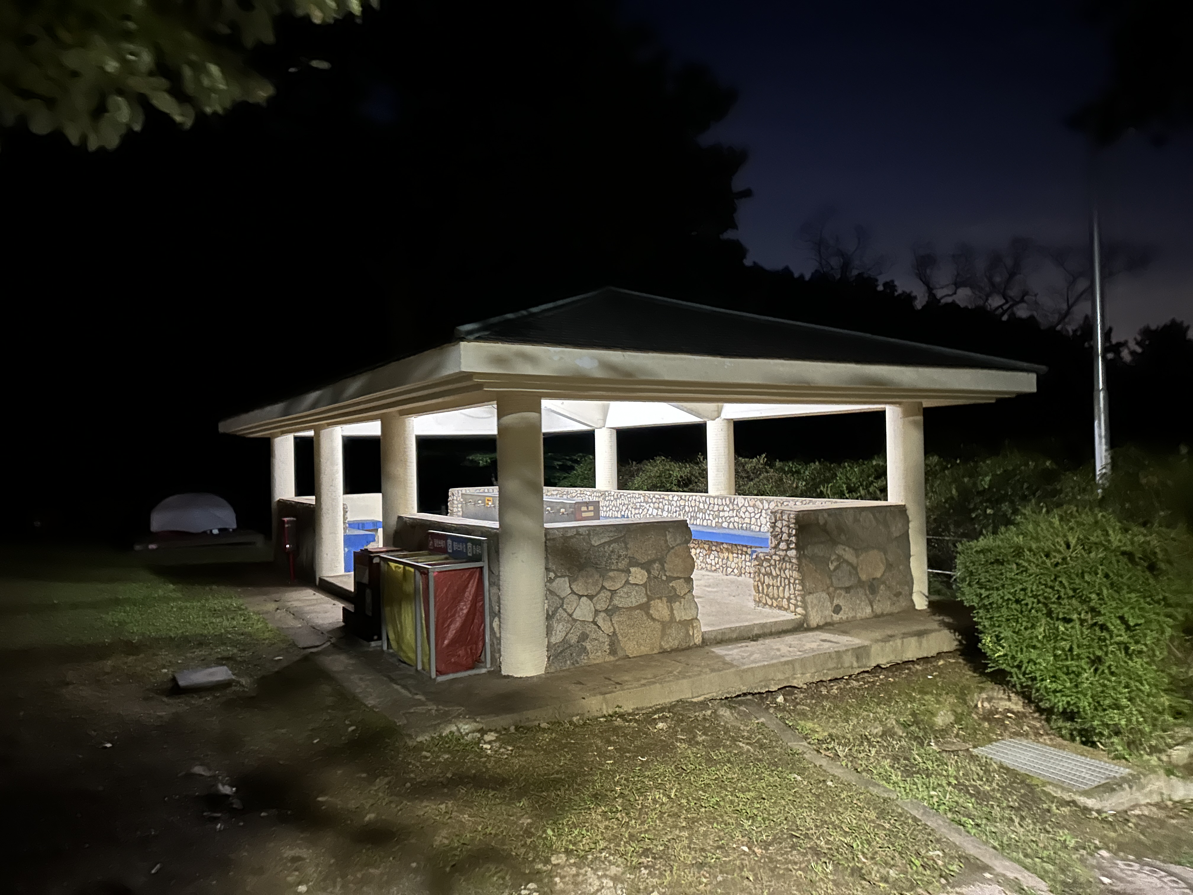 산 속이다보니 금세 해가 떨어졌지만, 길 가의 가로등 때문에 아주 밝습니다. 춥지는 않은 날씨 덕분에 꽤 오랜시간 밖에 있을 수 있었습니다.