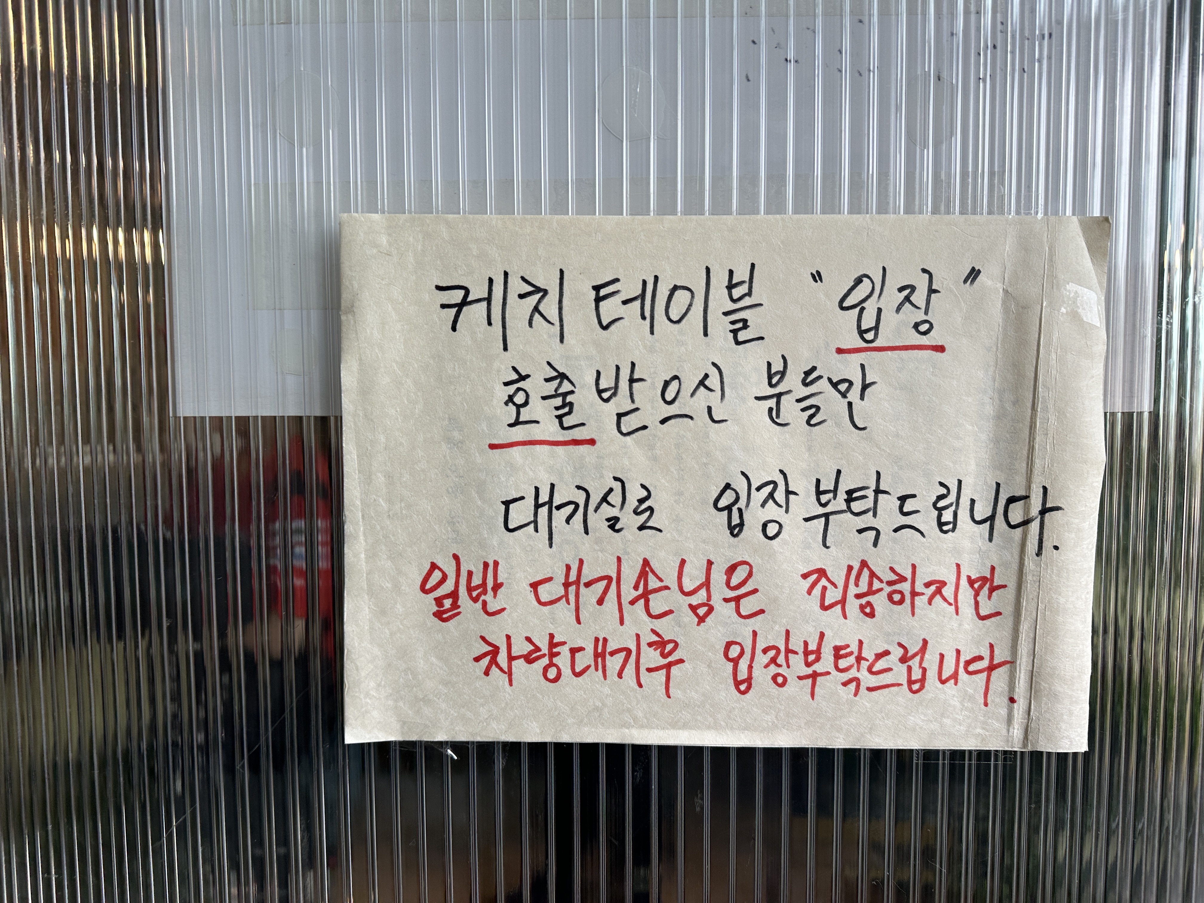 대기는 캐치테이블로 이용하시게 되고, 외부 벤치와 안쪽 벤치에서 대기 하실 수 있습니다.
