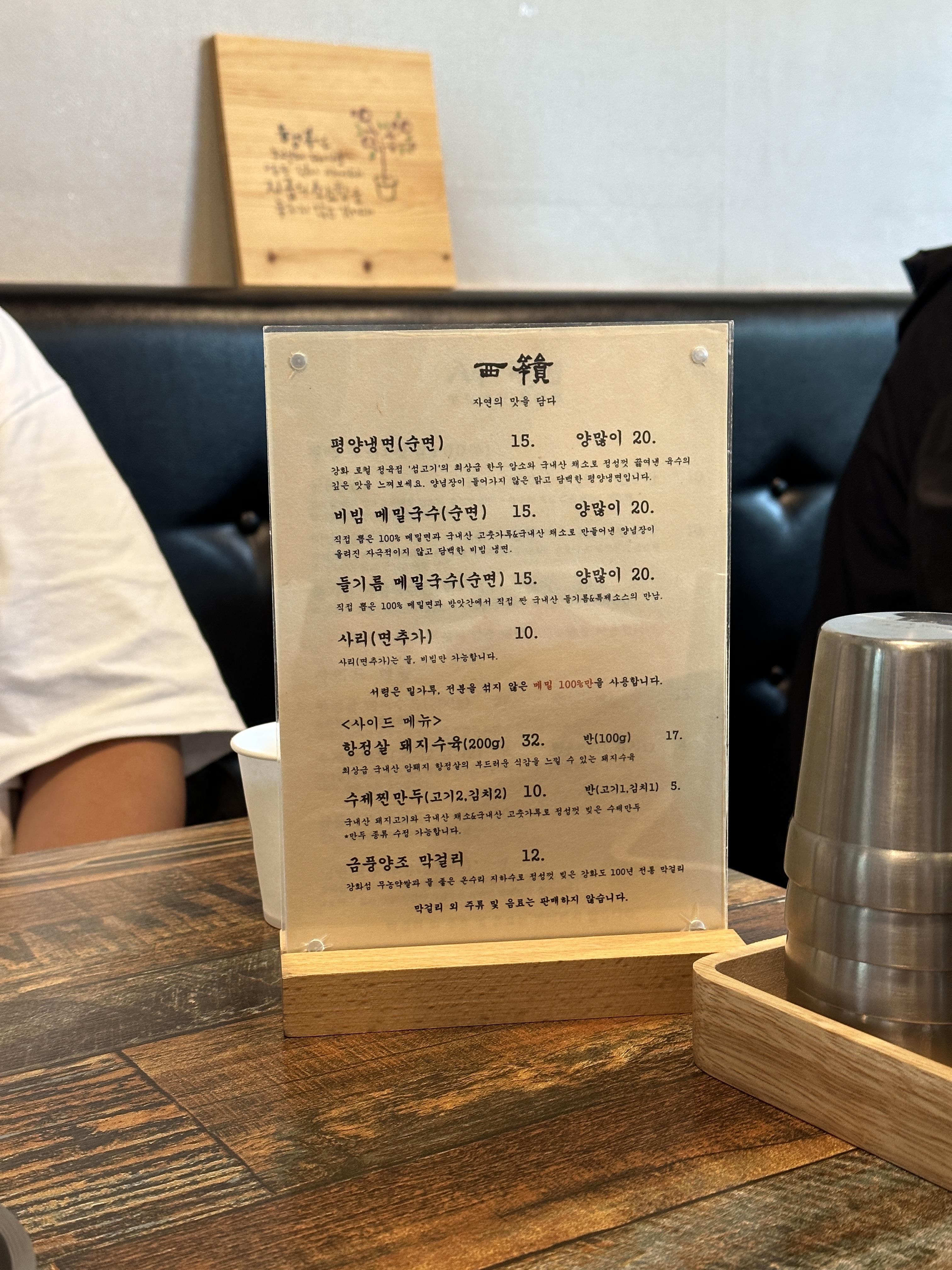 강화도 메밀 100% 평양냉면집 서령은 대기가 길다보니 메뉴를 밖에서도 고를 수 있게 되어 있네요 ㅎㅎ 보시면서 결정하시면 되겠습니다.