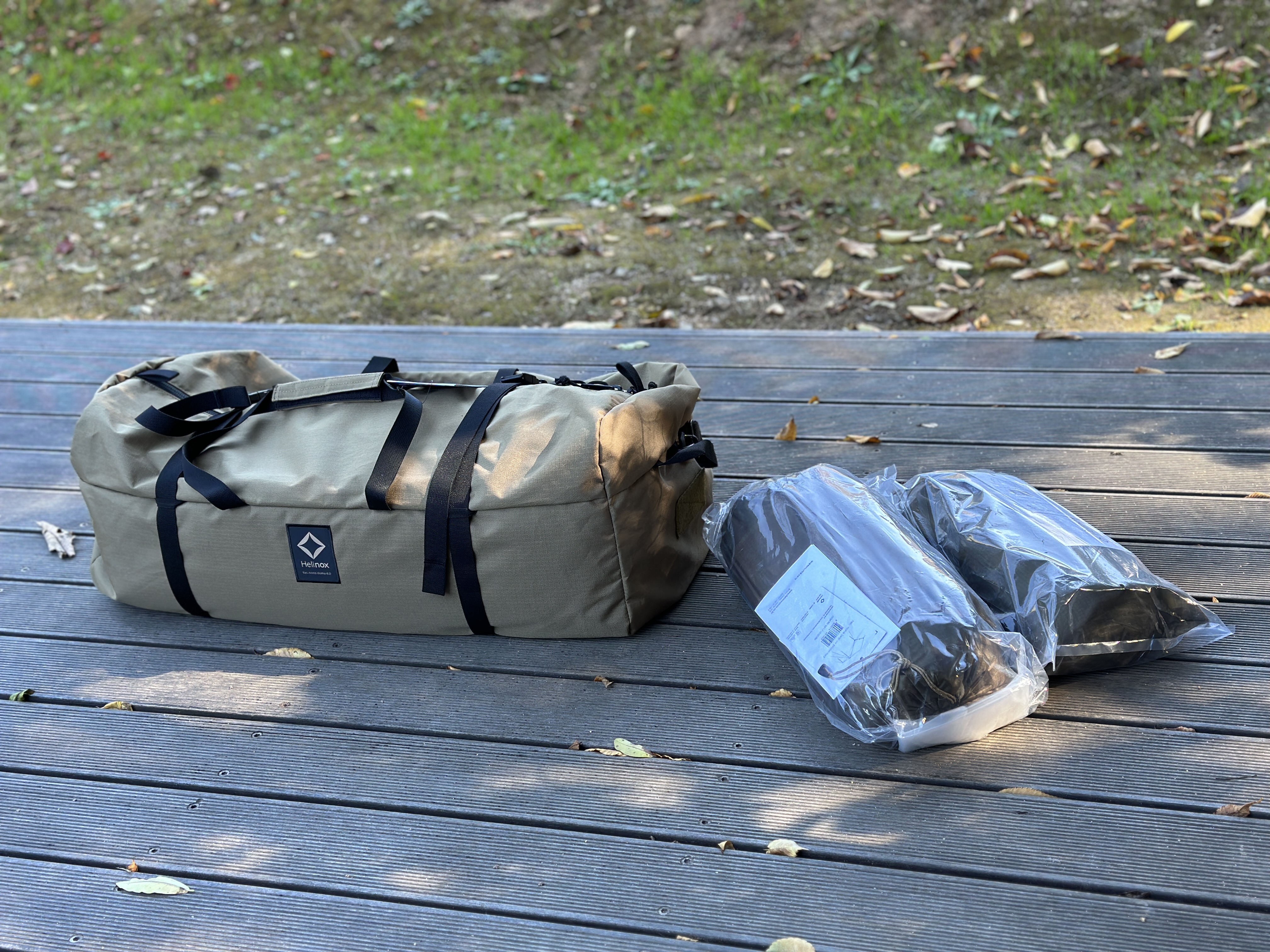 헬리녹스(Helinox) 택티컬 노나돔 4.0 코요테 탄 더플백에 들어있는 것이 본품이고, 오른쪽의 타프와 루프입니다.