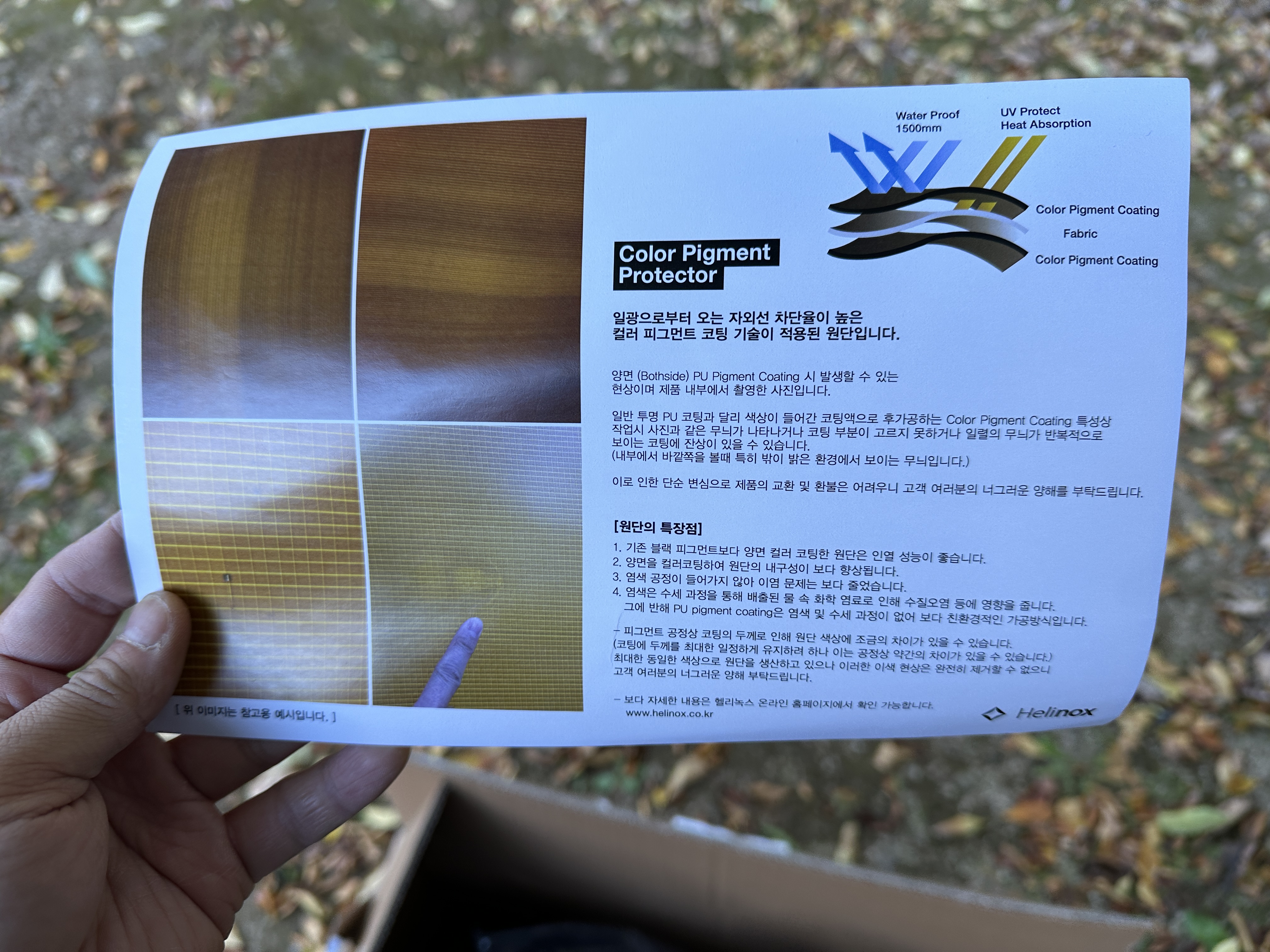 루프는 생각보다 작은 사이즈였습니다. 이런저런 피그먼트 코팅이라 이런저런 식으로 보일 수 있다는 설멍이 있네요 ㅎㅎ 차광에도 좋고 좋은 원단임을 말하고 싶었나봅니다. 근데 왜 본체 스킨이랑 다른 걸 썼는지... ㅋㅋㅋ