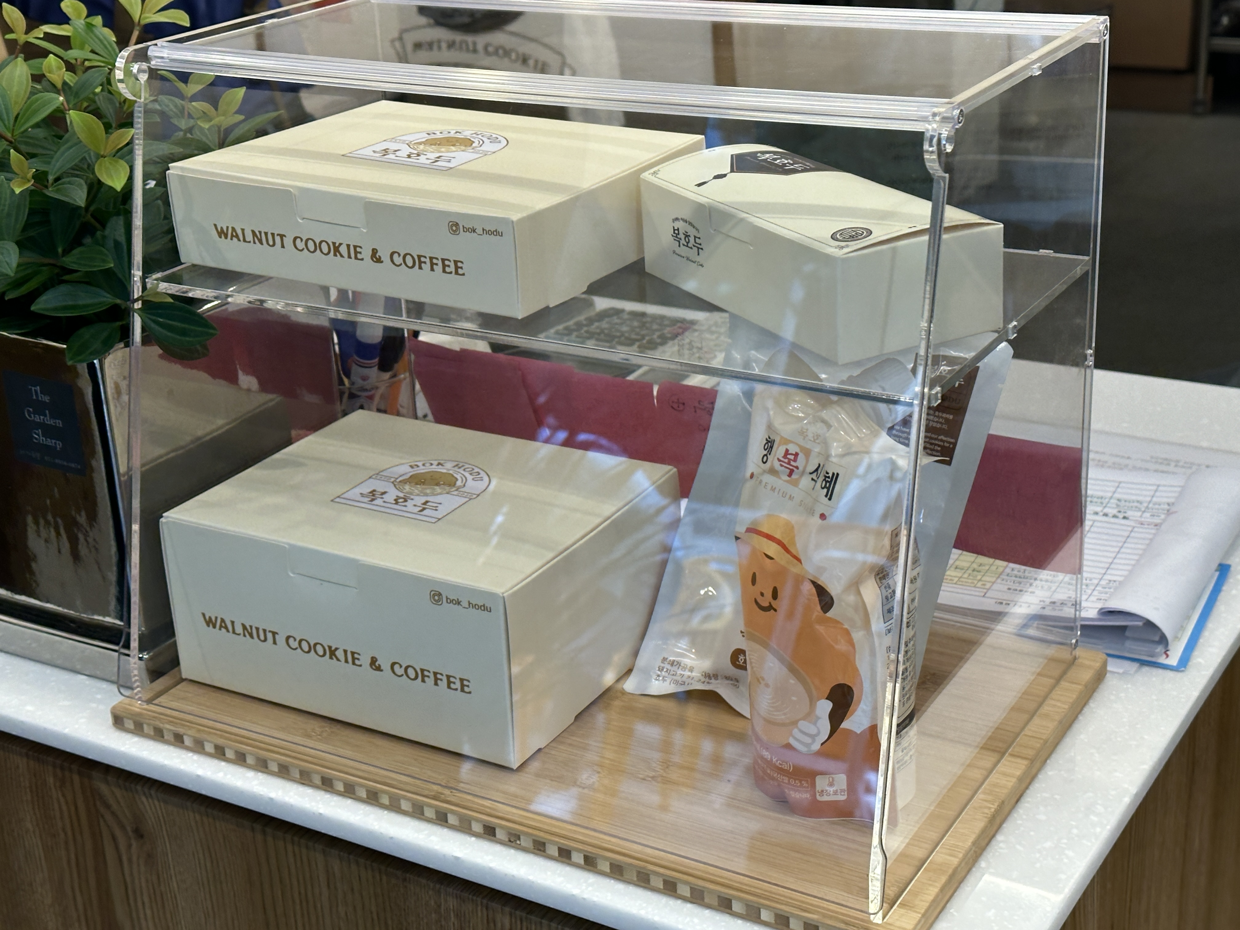 종각역/ 광화문역 선물, 간식용 호두과자 맛집 복호두 광화문점은 역시 호두과자 전문점 답게 포장용기가 바로 보입니다. 박스의 사이즈도 잘 가늠할 수 있게 샘플을 비치한 모습이구요.