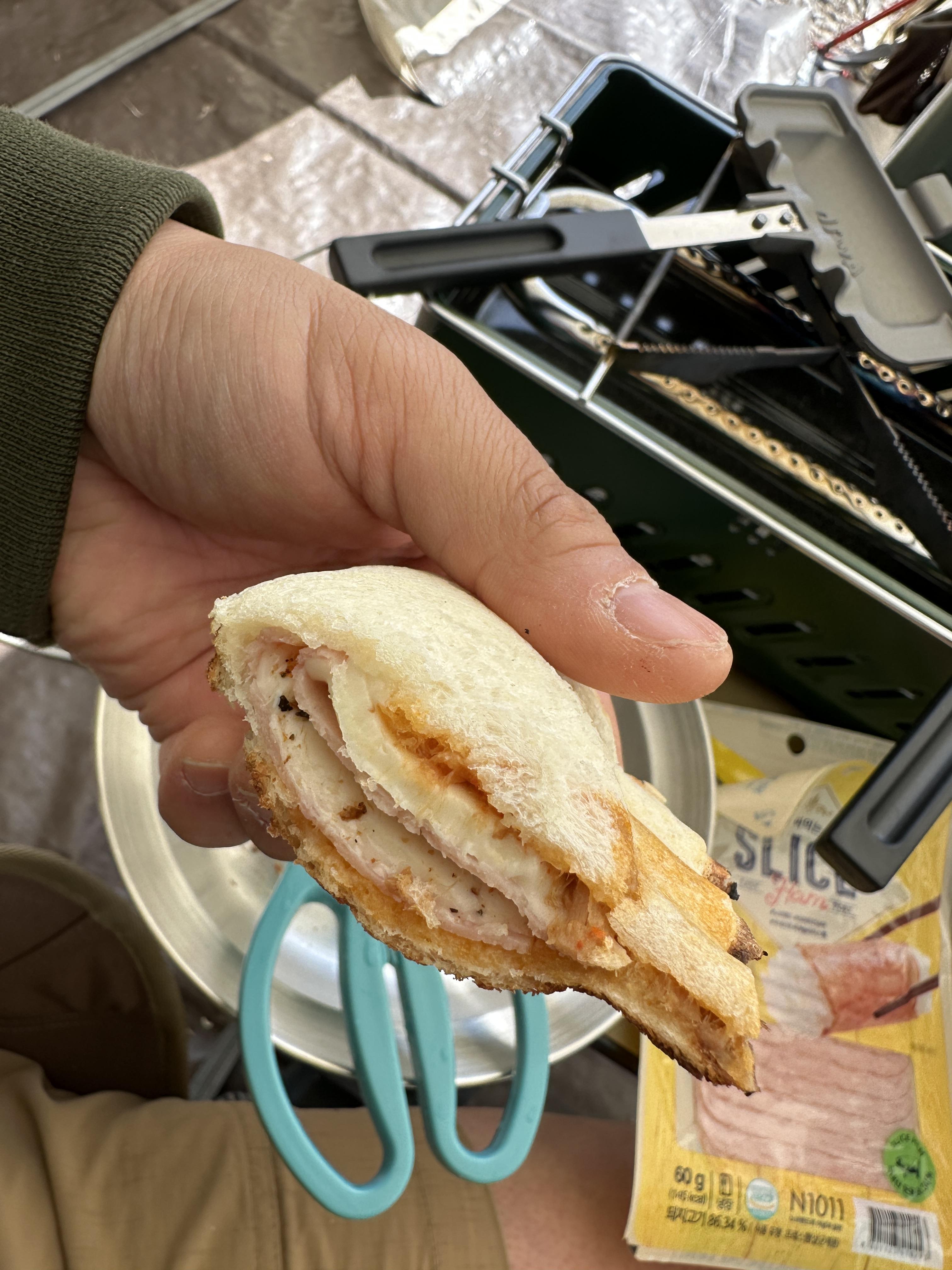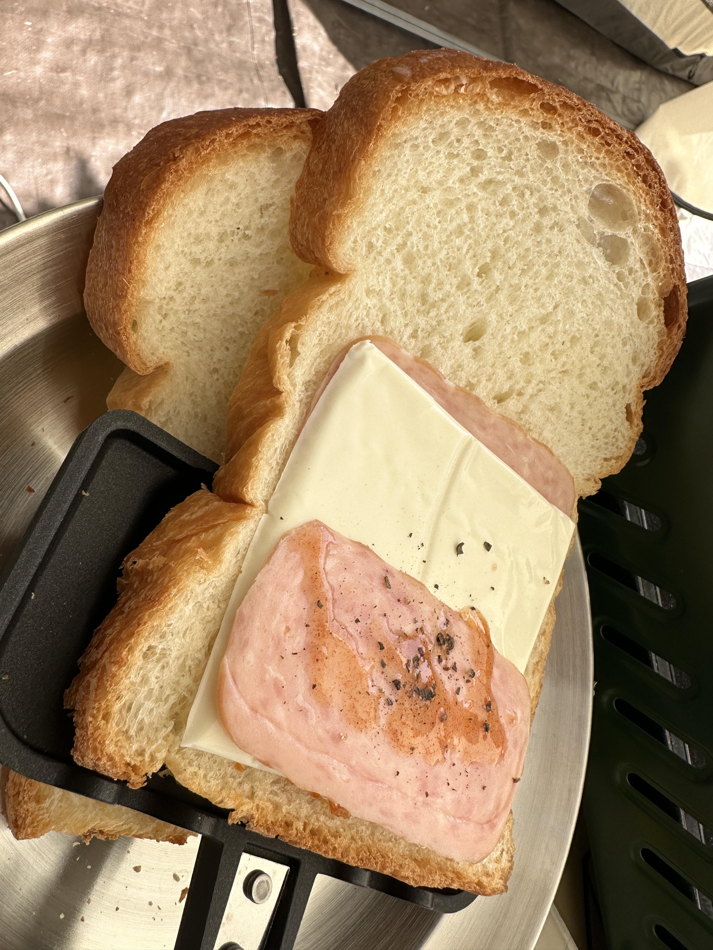 식빵과 치즈, 슬라이스 햄으로 일단 첫 조리를 해 보았습니다.