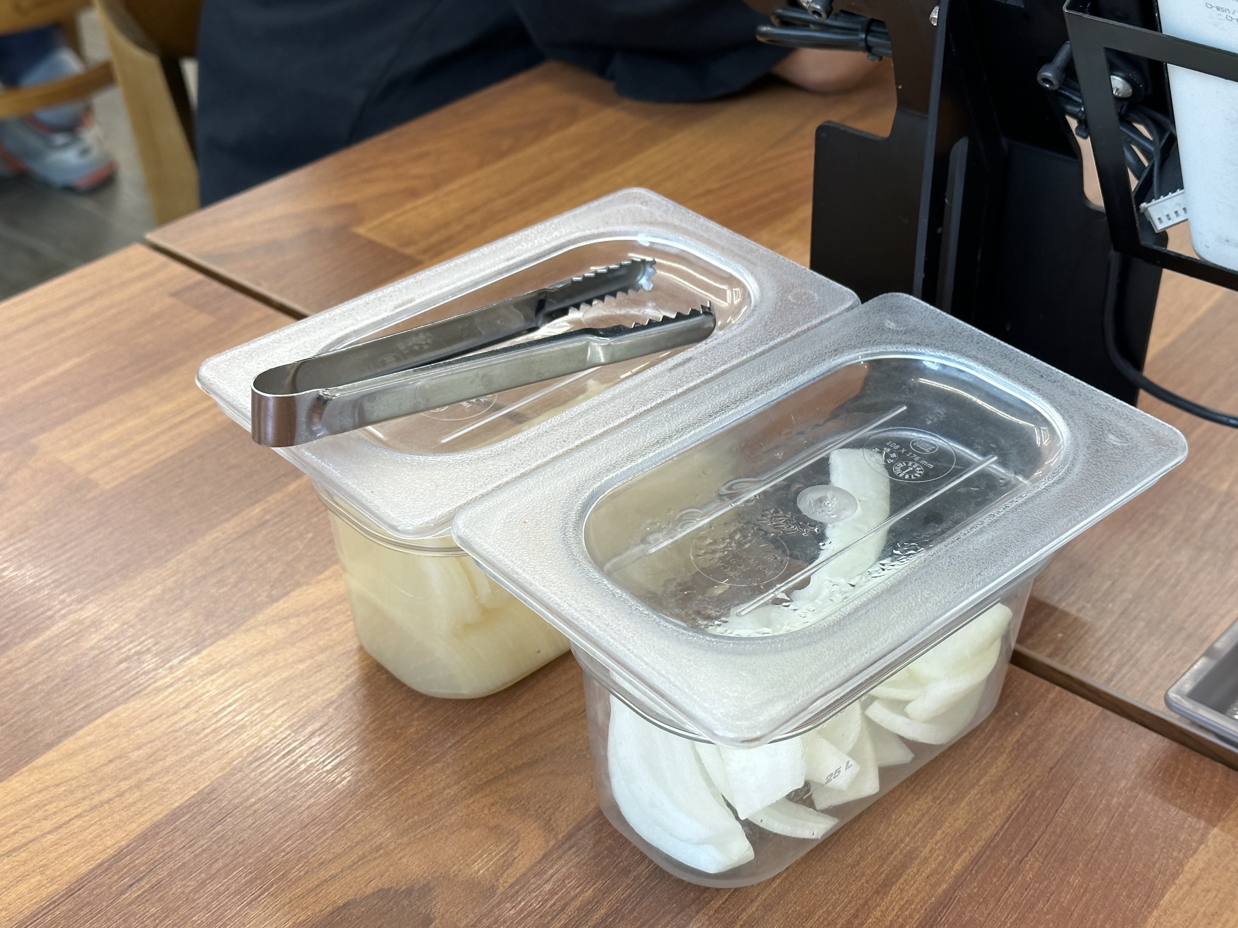 기다리는 시간은 꽤 길었습니다. 인기가 많아서였겠죠. 그동안 둘러보지 못한 주변을 둘러봅니다. 메뉴판도 한 번 보고, 기본 찬으로 비치된 깍두기와 양파도 한 번 봅니다.