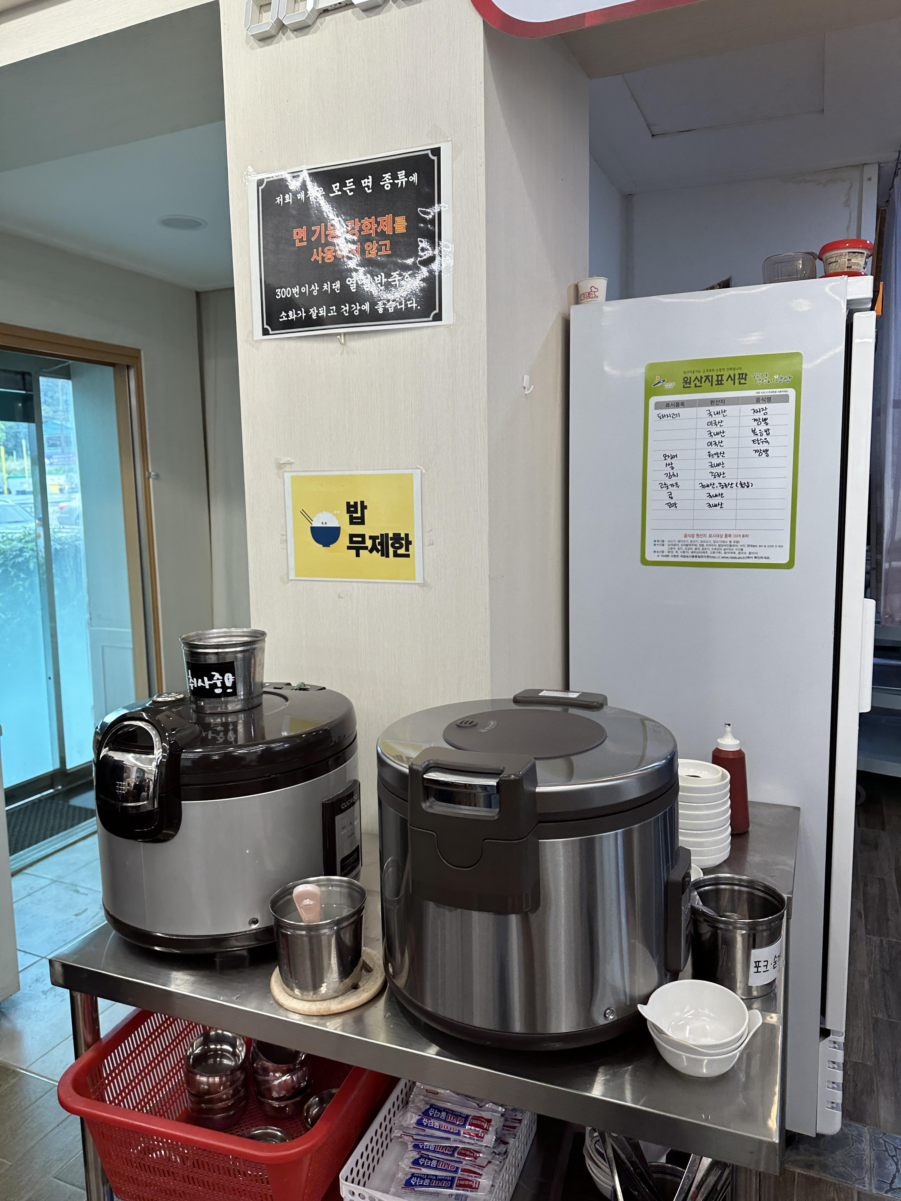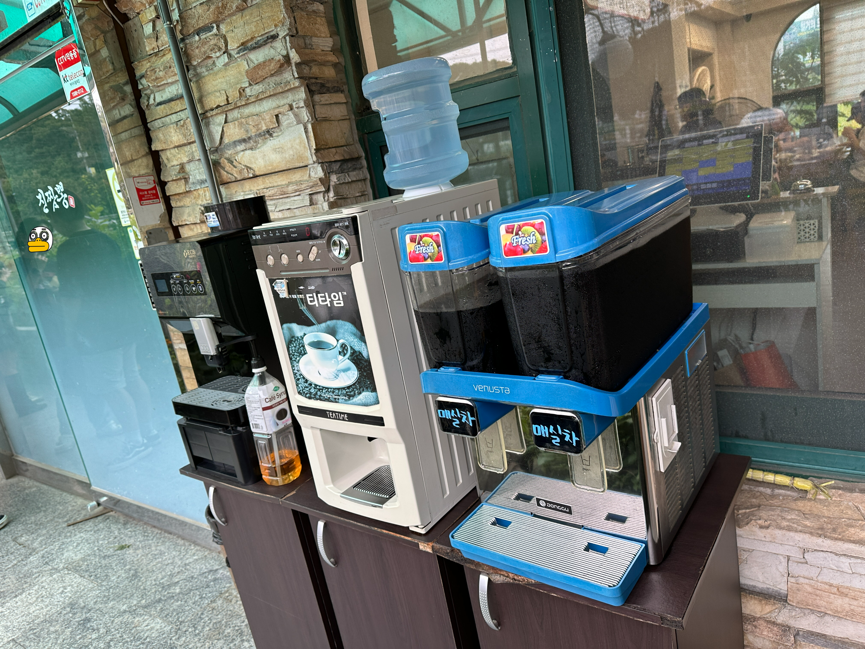 역시 인기맛집이었던 걸까요? 점심시간에 가니 대기줄이 있었고, (사진에서 이미 보셨겠지만, 주차장은 만차에 식당 주변까지 차가 다 있었네요. ㅋㅋㅋ) 그 대기줄이 익숙한 듯 음료들로 기다림을 위로해 주고 있었습니다.