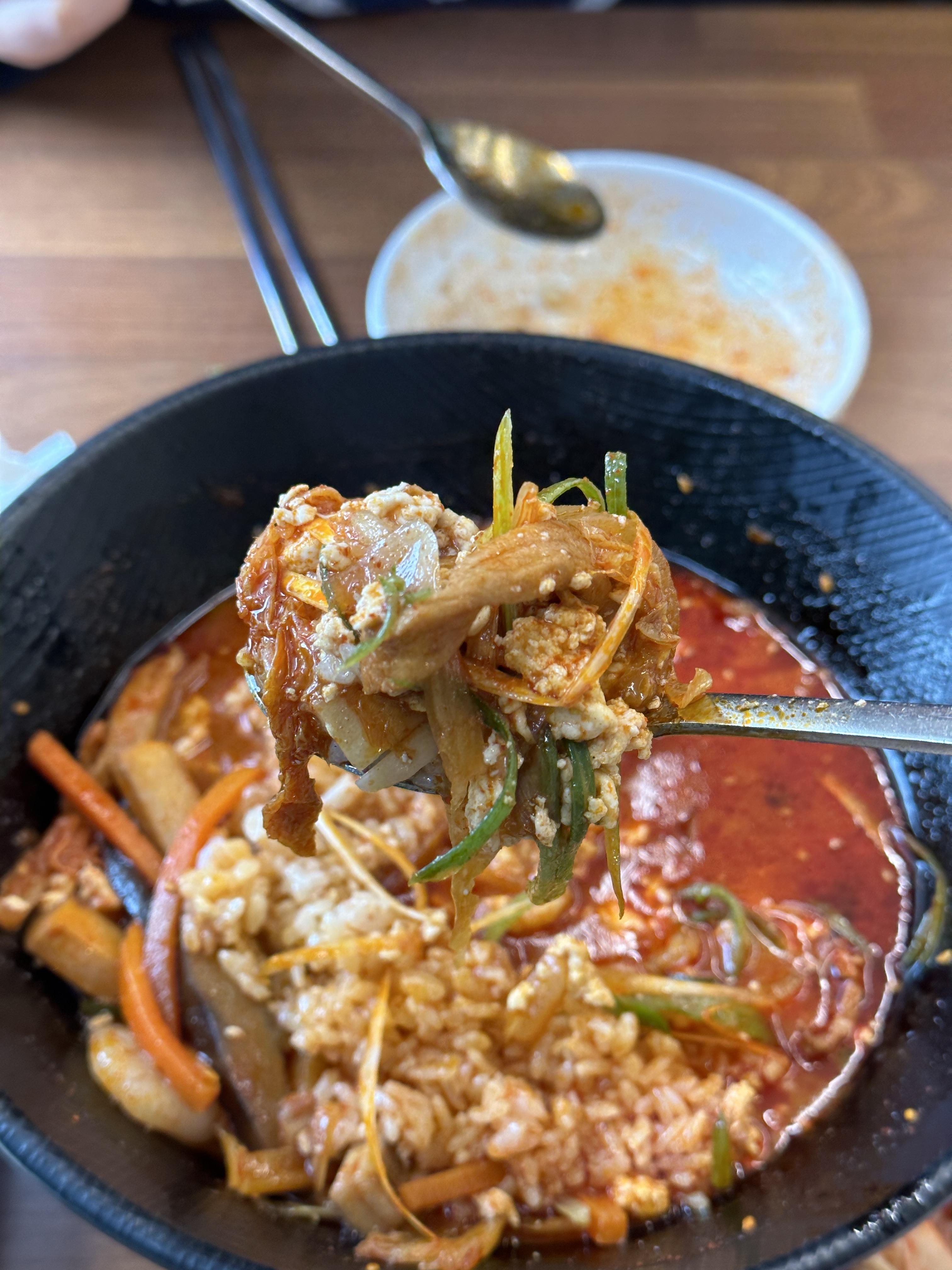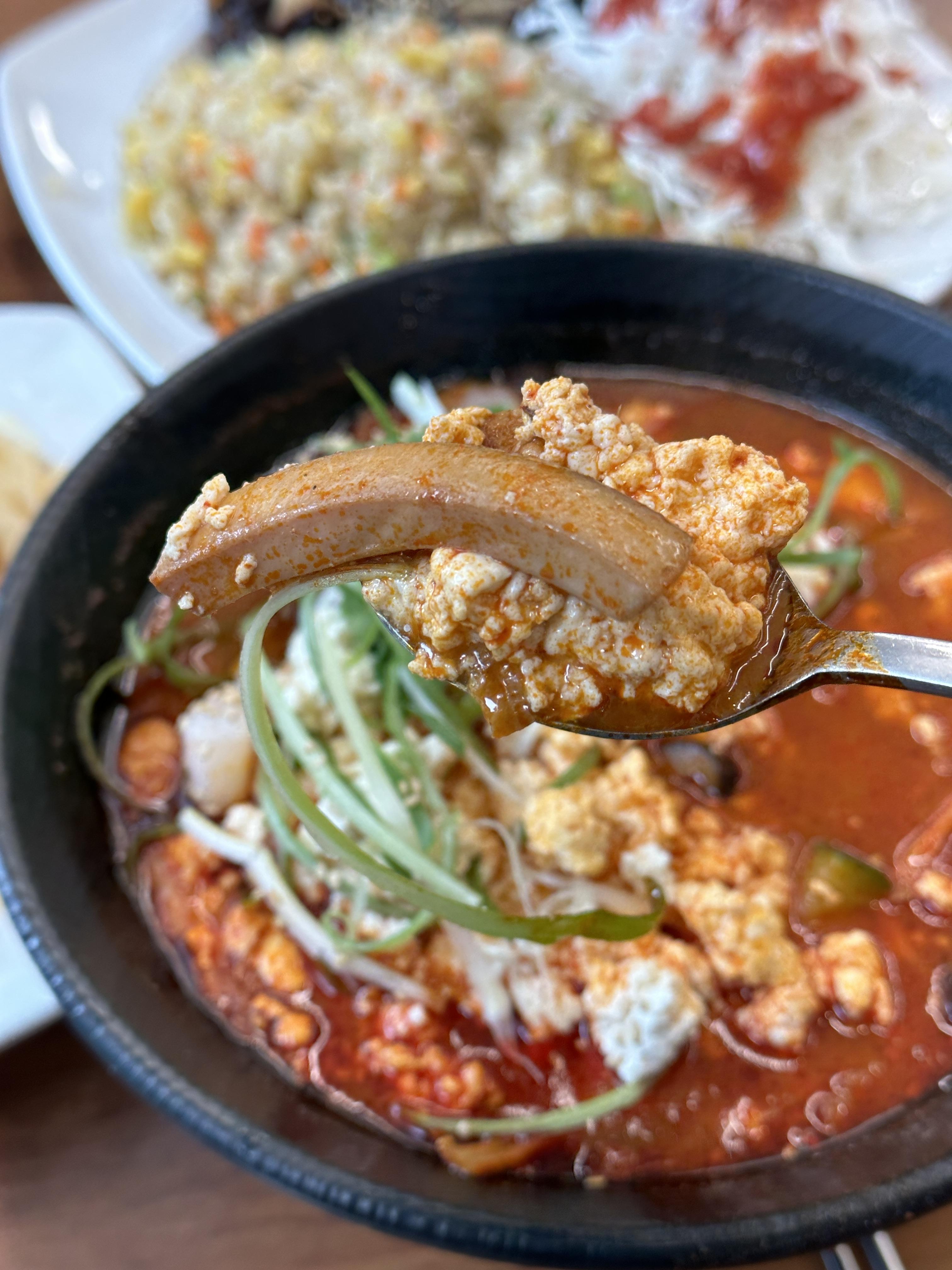 - 수저로 한 번 순두부를 퍼먹어 보고,