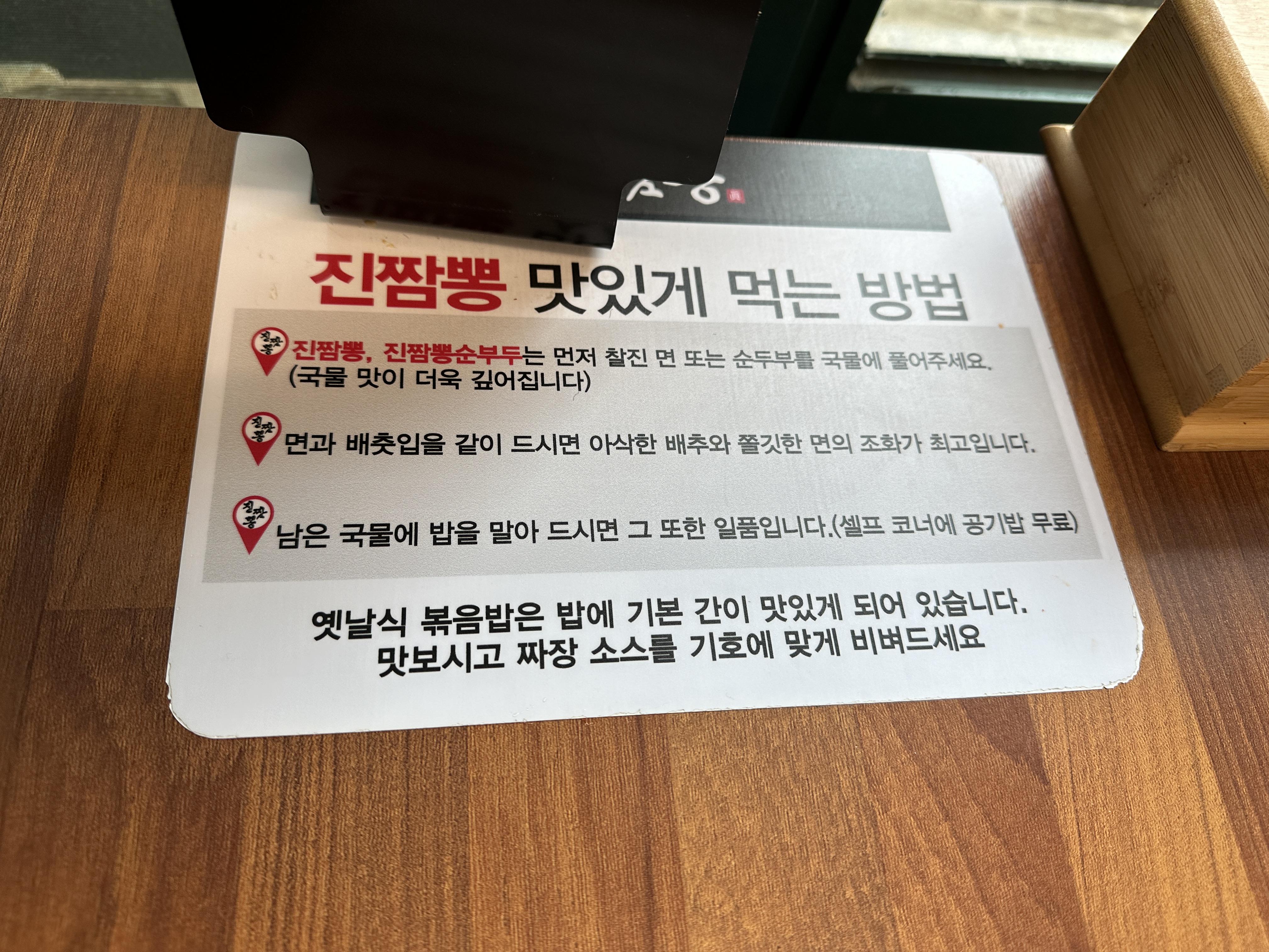 6. 짬뽕순두부와 옛날식볶음밥이 맛있는 서안산 찐맛집 진짬뽕 메뉴 및 테이블세팅