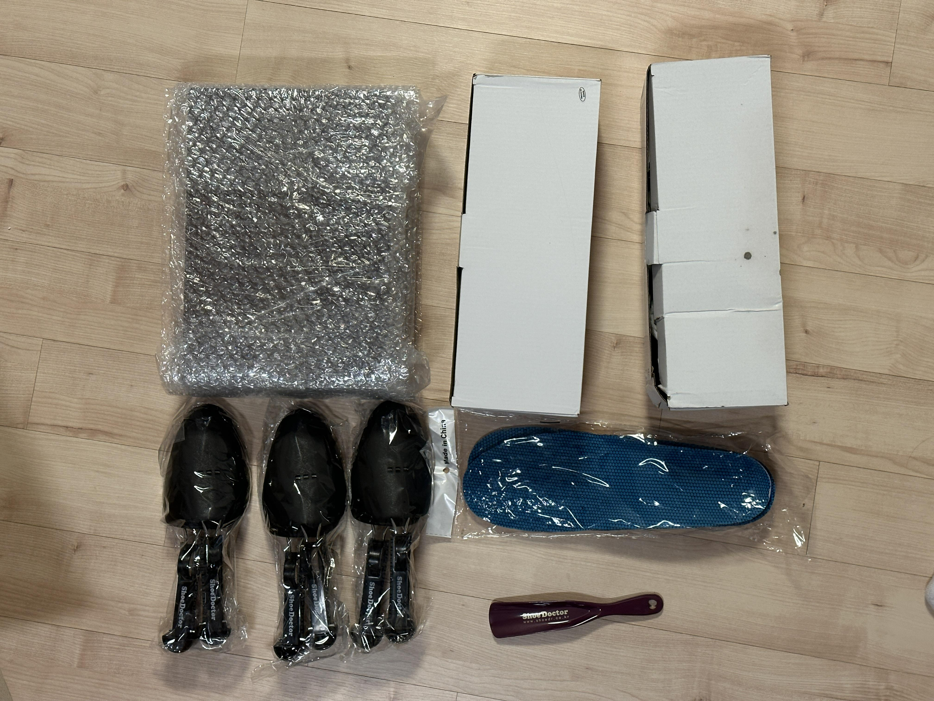 포장박스를 열어보니, 주문한 상품들 외에도 추가 사은품들이 와 있었습니다. 뭐... 크게 중요한 녀석들은 아니지만, 소개하자면 플라스틱 슈트리 (3개나 주실줄은 몰랐어요....), 구두주걱, 깔창 이렇게였습니다. ^^ 사은품 감사합니다. 잘 쓸게요!!