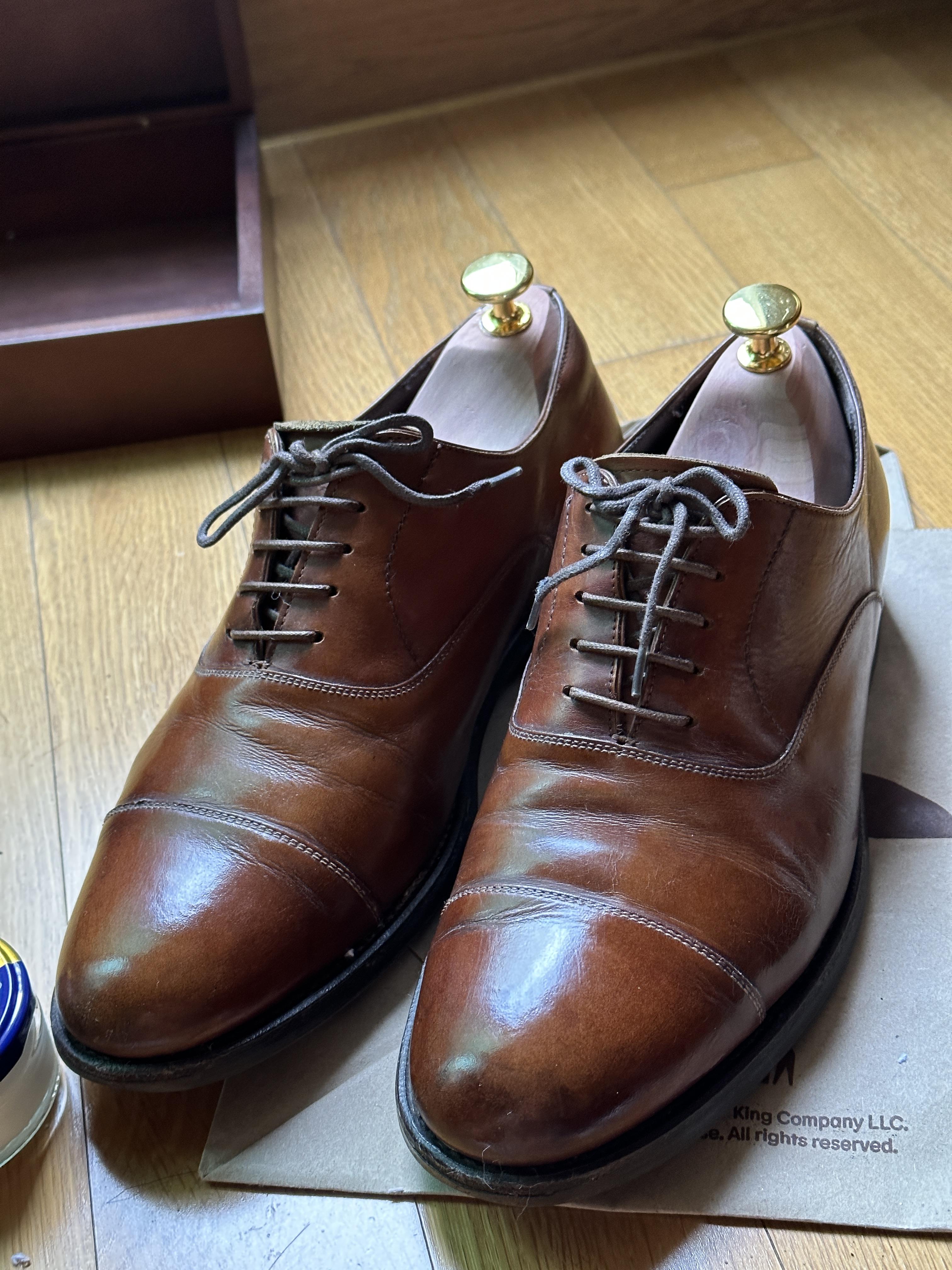 사피르 원목 슈케어 박스 세트 키트로 신나게 닦아본 후 사진입니다. 군대 전역 하고 구두라는 것을 처음 닦아보는데 생각보다 잘 된 것 같아서 마음이 뿌듯하긴 했습니다. ㅋㅋㅋ