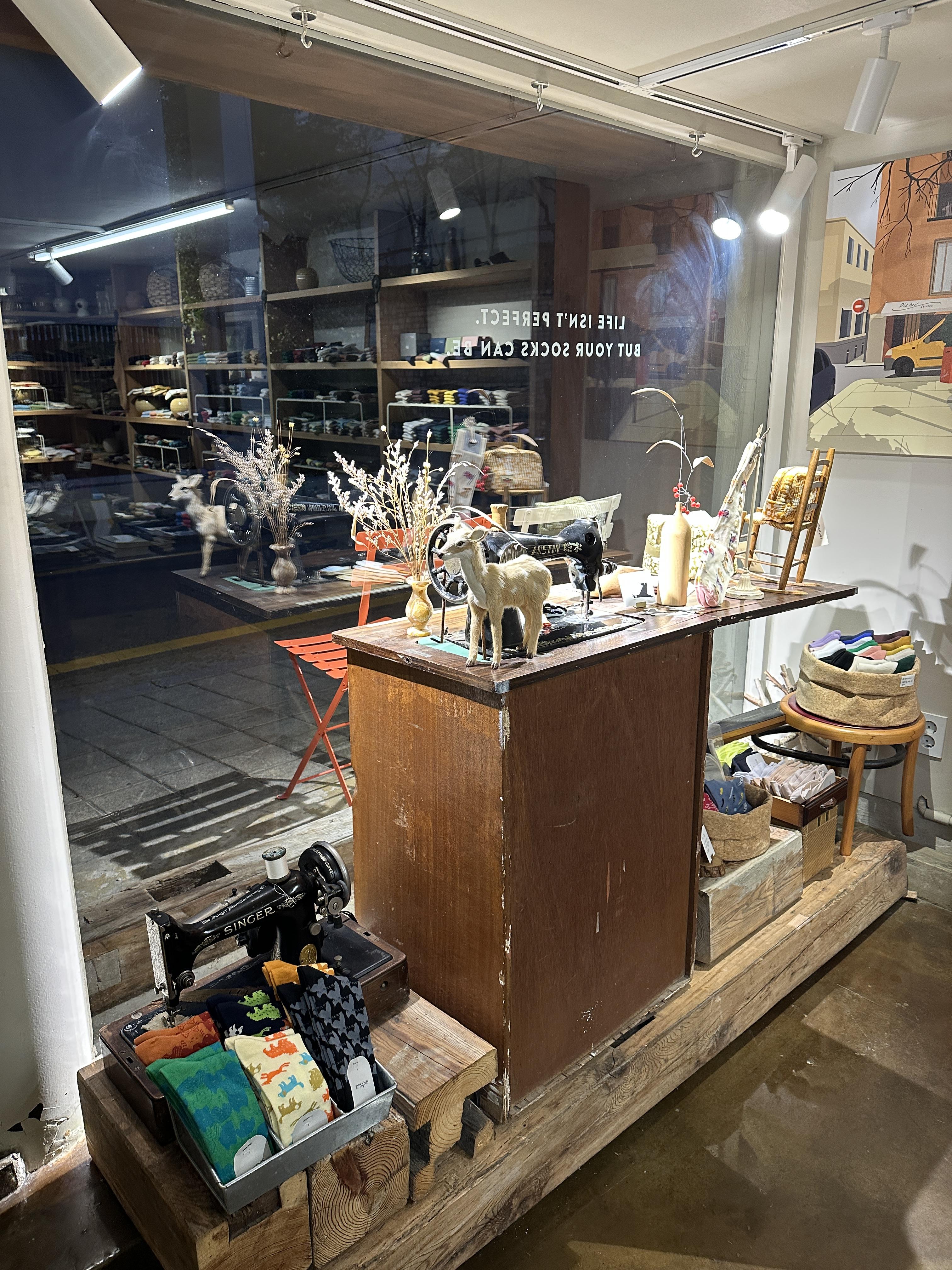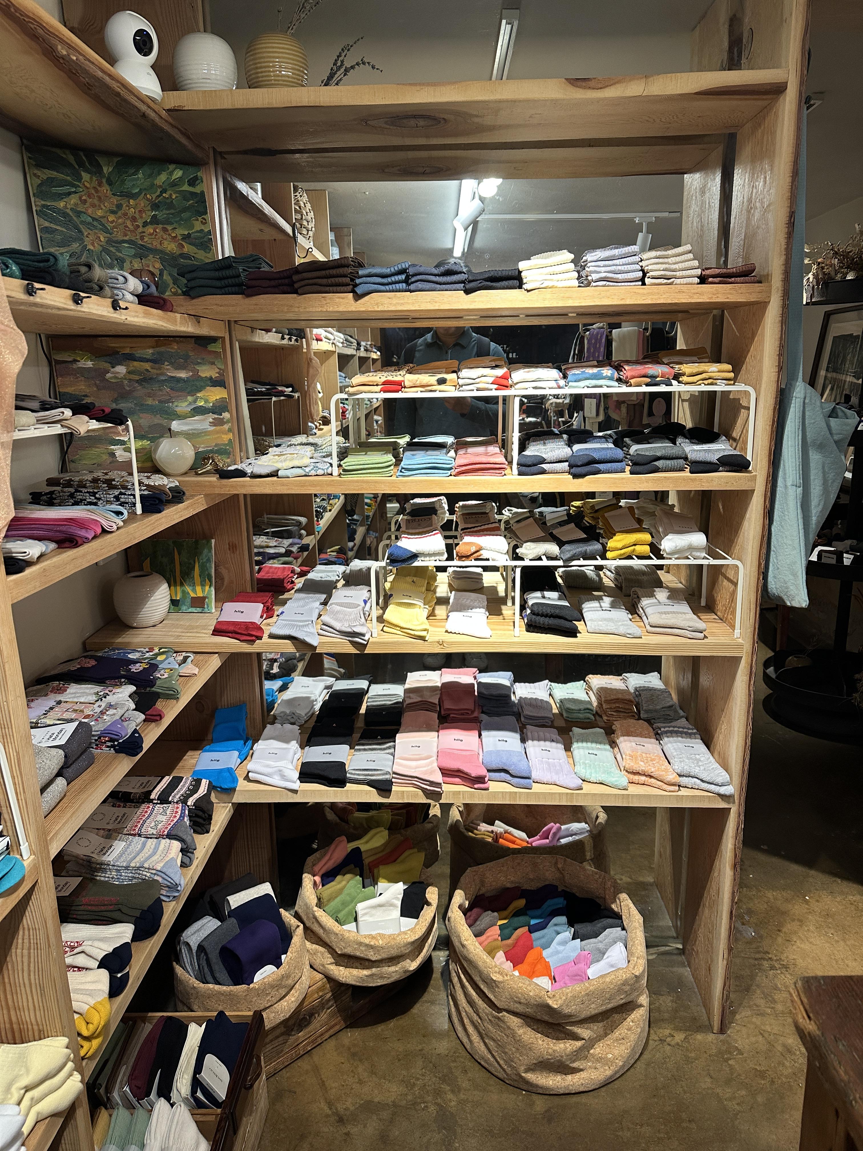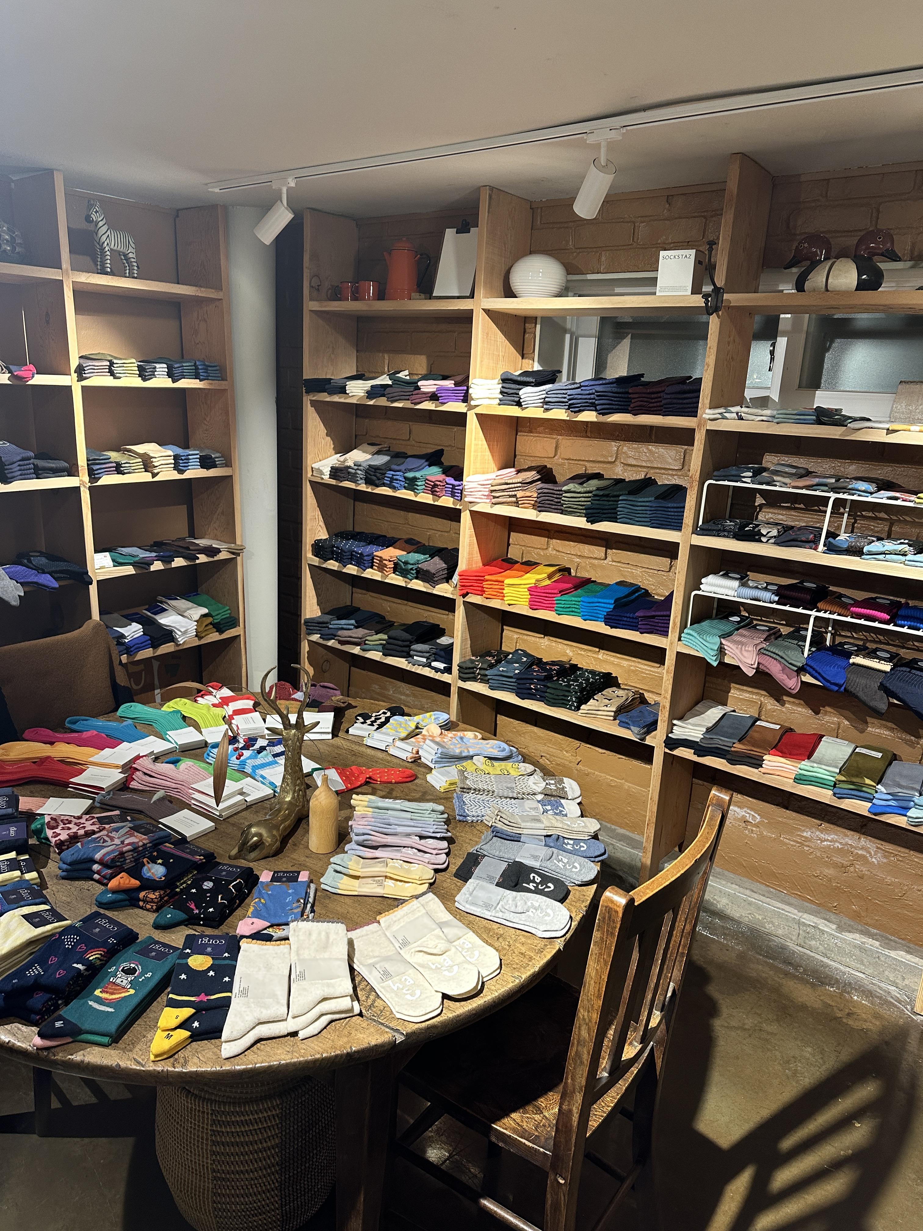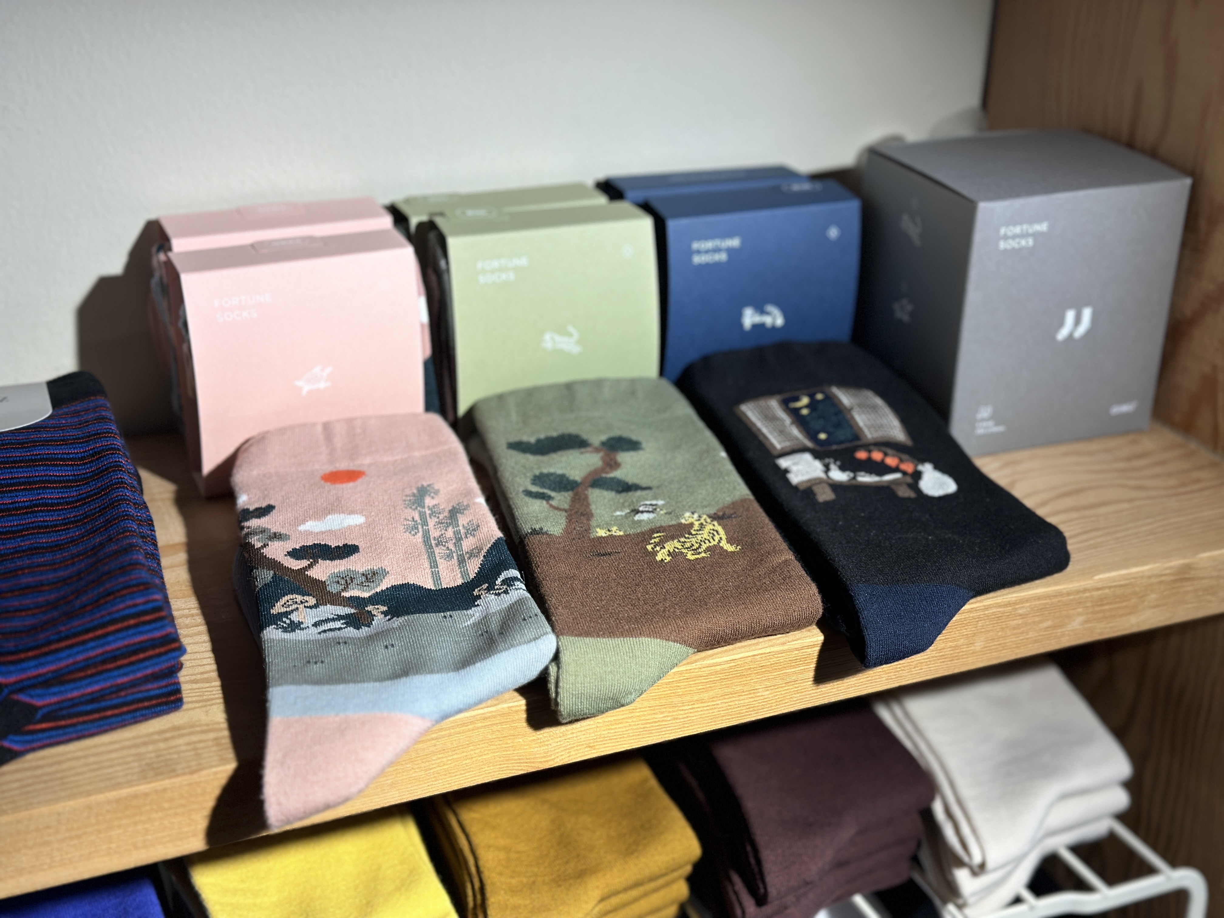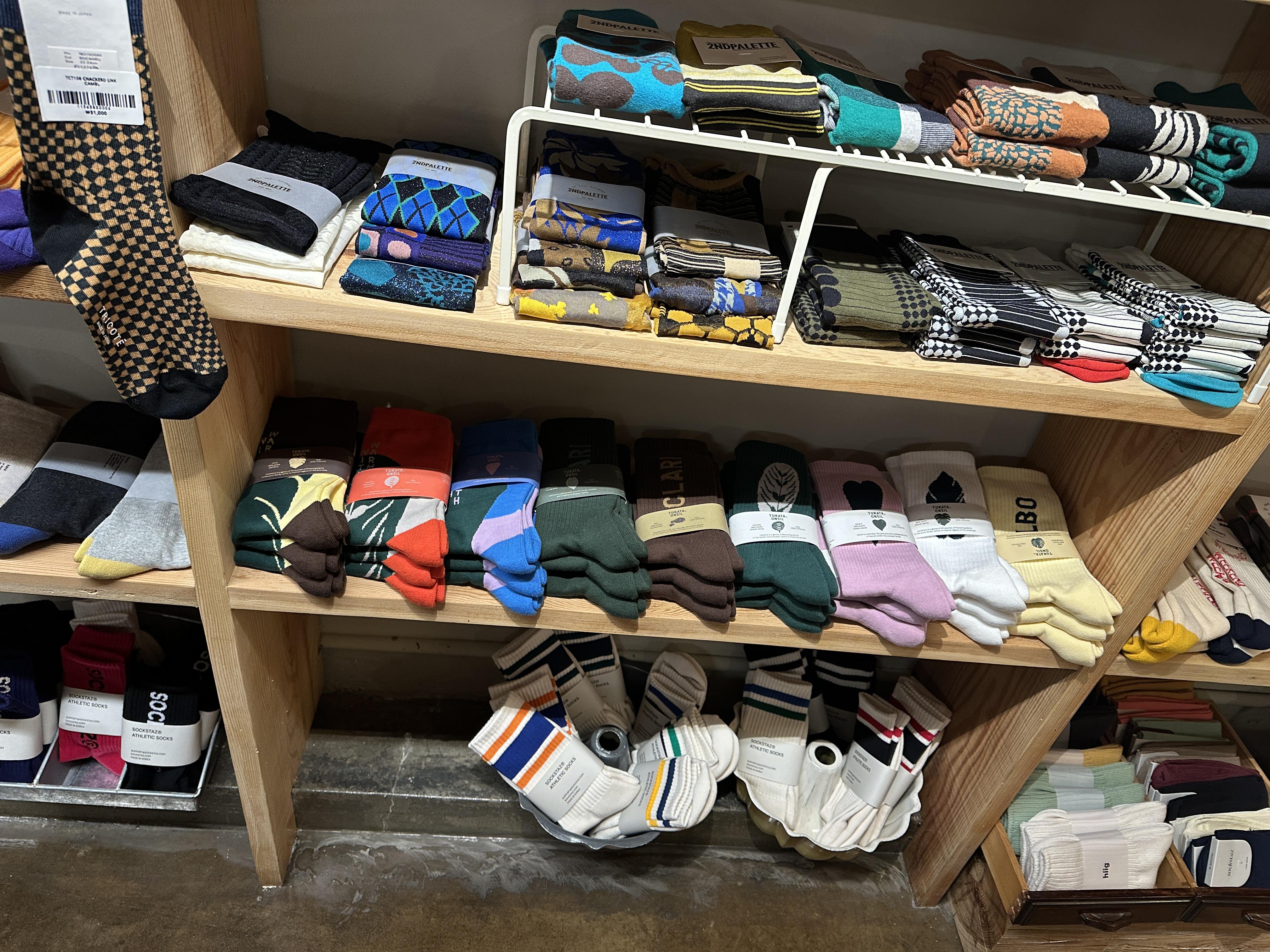 실내 인테리어가 정말 깔끔합니다. 역시 오른쪽의 양말들에서 제가 찾던 깔끔한 솔리드 양말을 볼 수 있었습니다.