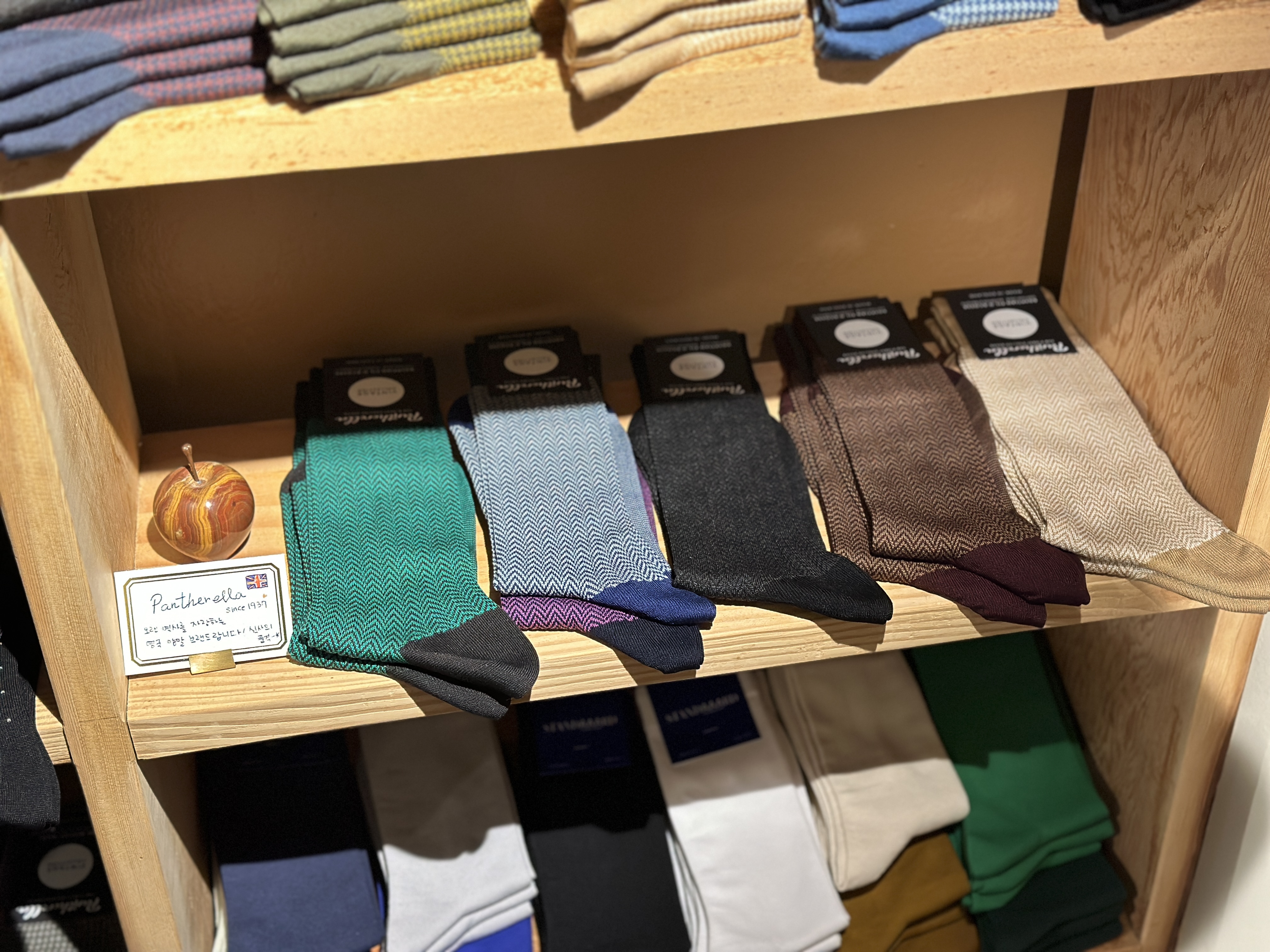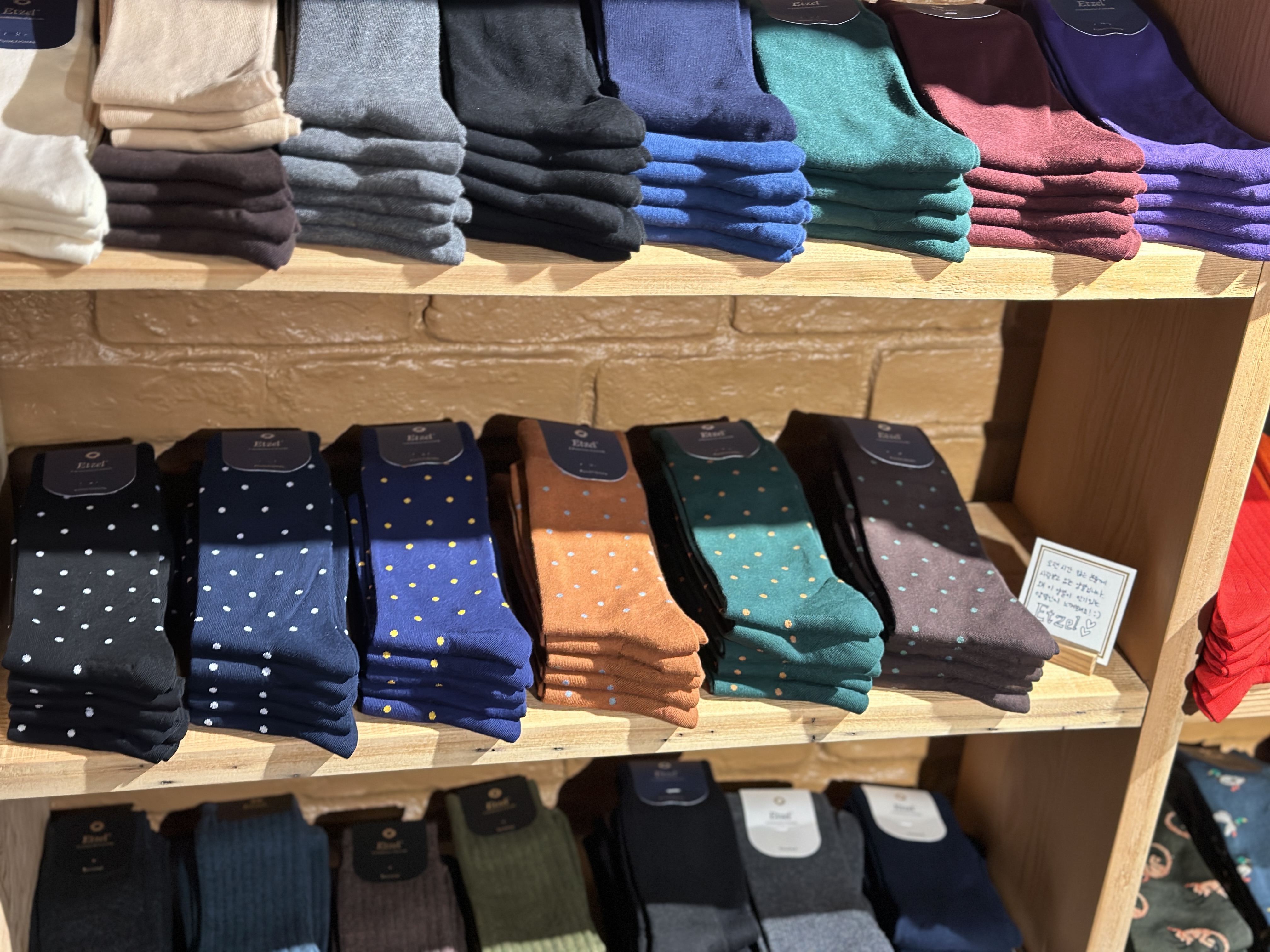 안쪽은 아무래도 조금 더 점잖은 양말이 꽤 있습니다. 드레스양말? 이라고 봐야 할까요? 깔끔하고 얇은, 구두에 신을만한 그런 색깔이었어요.