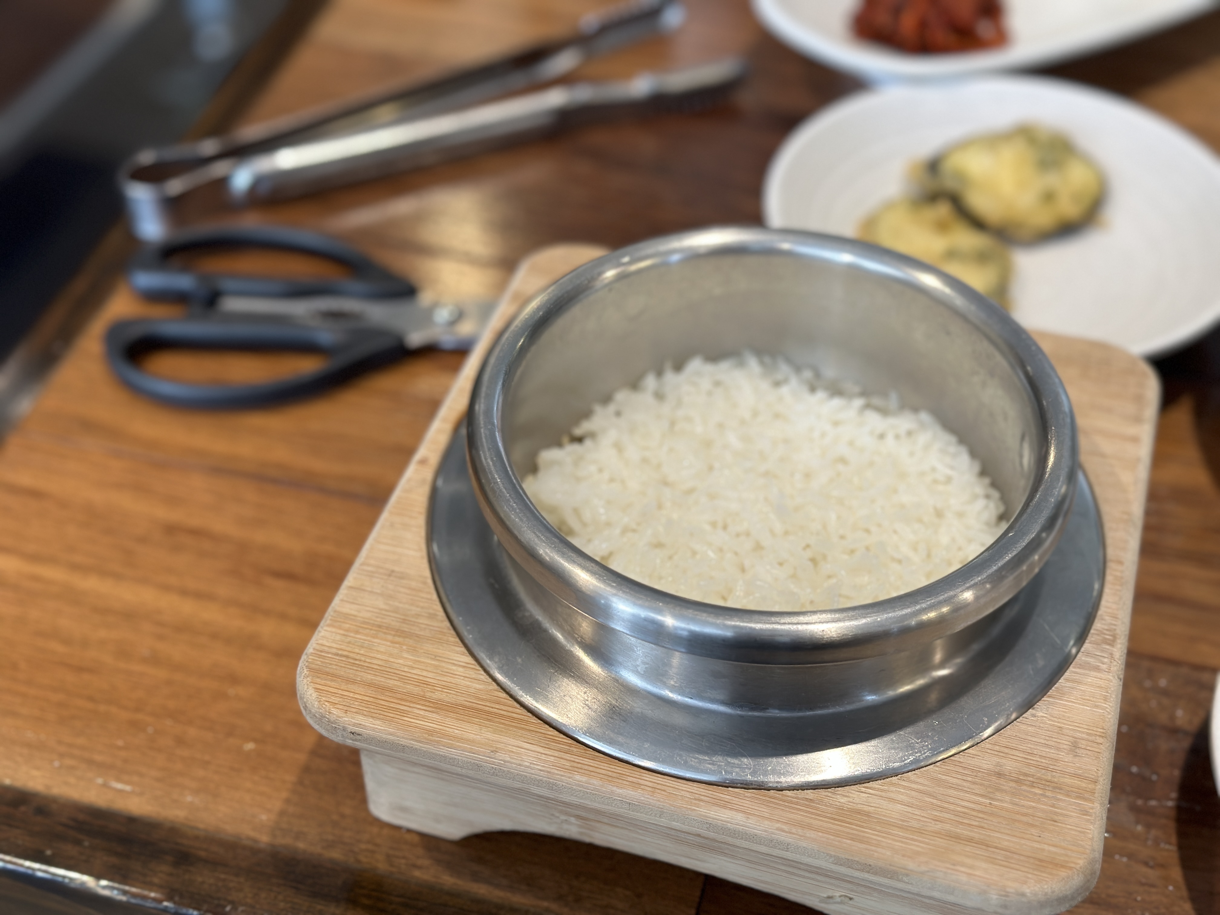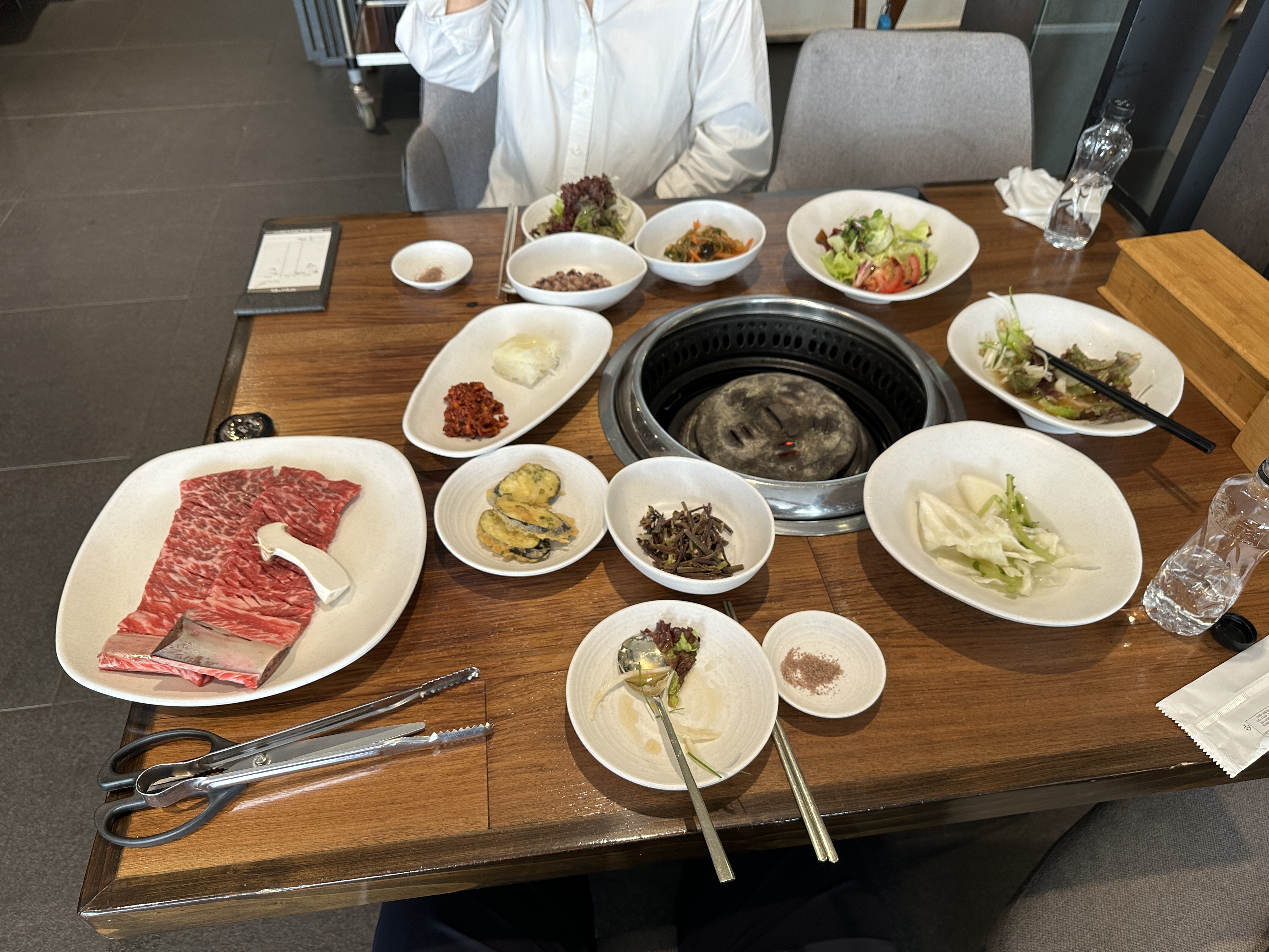 친절하신 직원분의 안내로 테이블에 앉았습니다. 물론, 소고기라 약간 부담스러운 가격일 수 있지만, 촬영하느라 고생한 우리 예비신부님을 위해 과감히 생갈비 솥밥 한정식으로 2인 시켜봅니다. 후후... 손이 덜덜...
