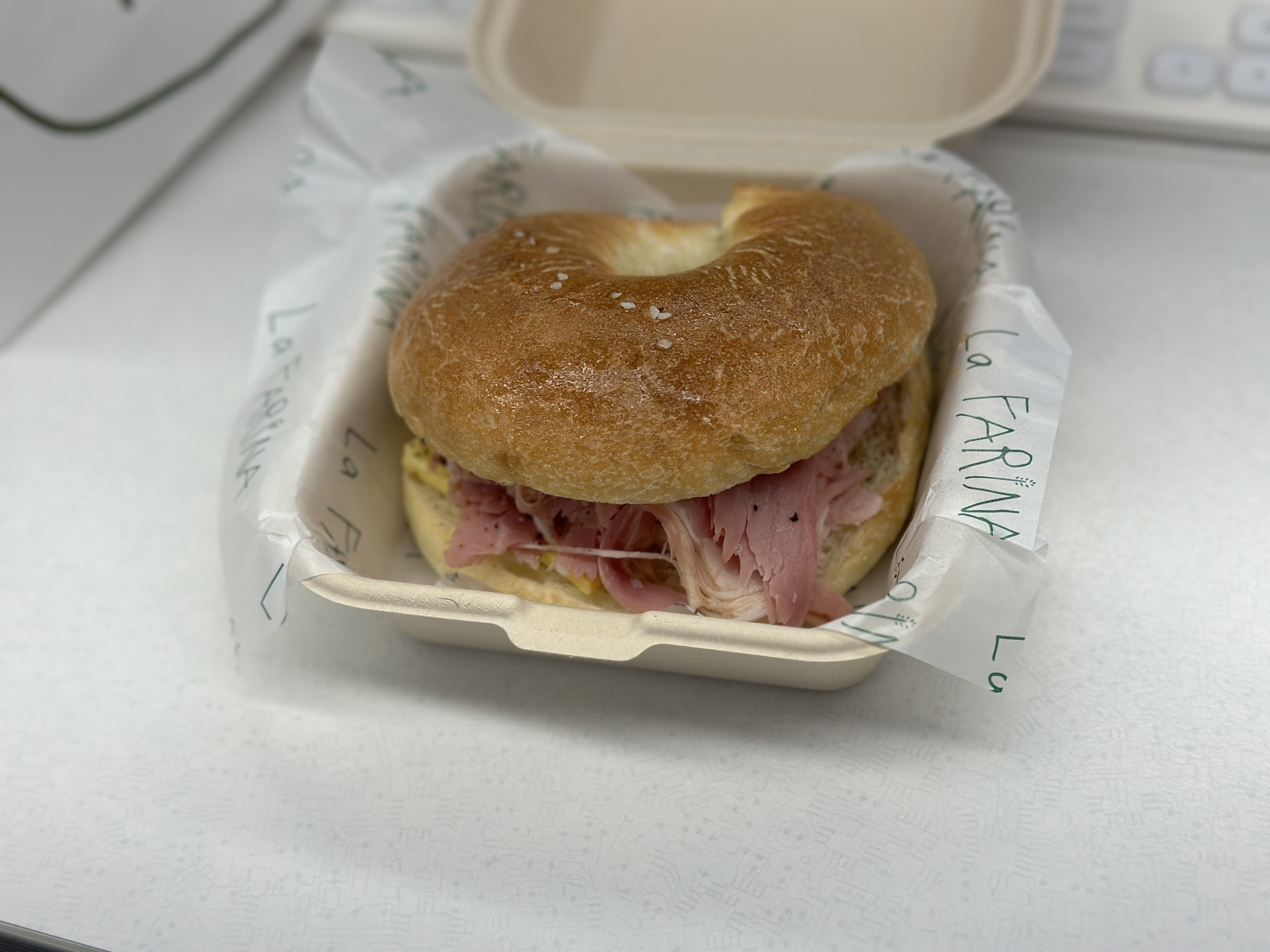 잠봉베이글 오픈! 저는 잠봉의 짭쪼름한 맛과, 아래 깔린 버터의 부드러움이 베이글과 어우러져 맛있게 잘 준비되었네요 ^^