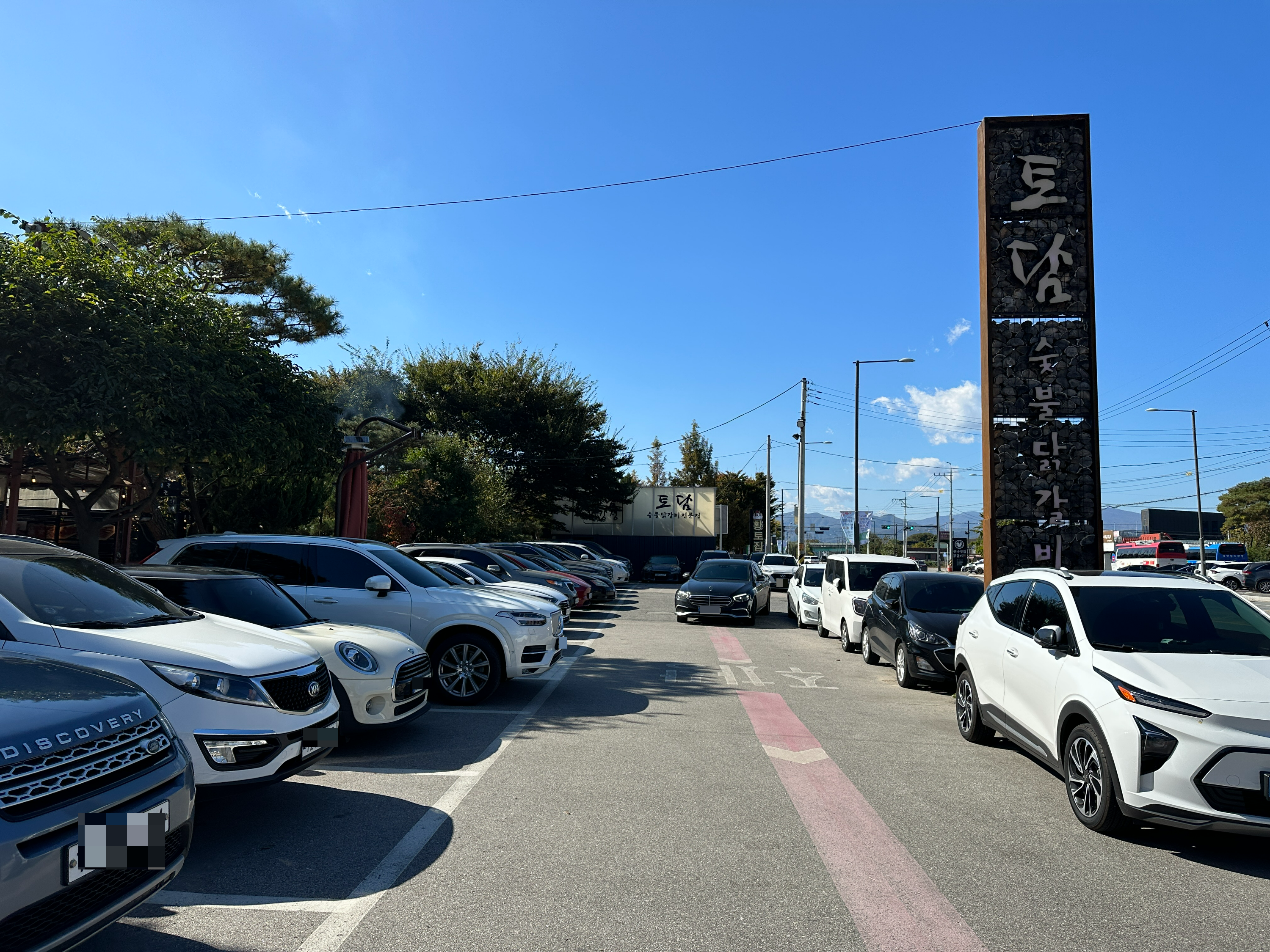 춘천 토담 숯불 닭갈비 주차장의 모습입니다. 꽤 널찍널찍한 주차 공간이 이어져있지만, 생각보다 더 주차공간이 크게 마련되어 있어 주차에는 전혀 문제가 없는 모습입니다.