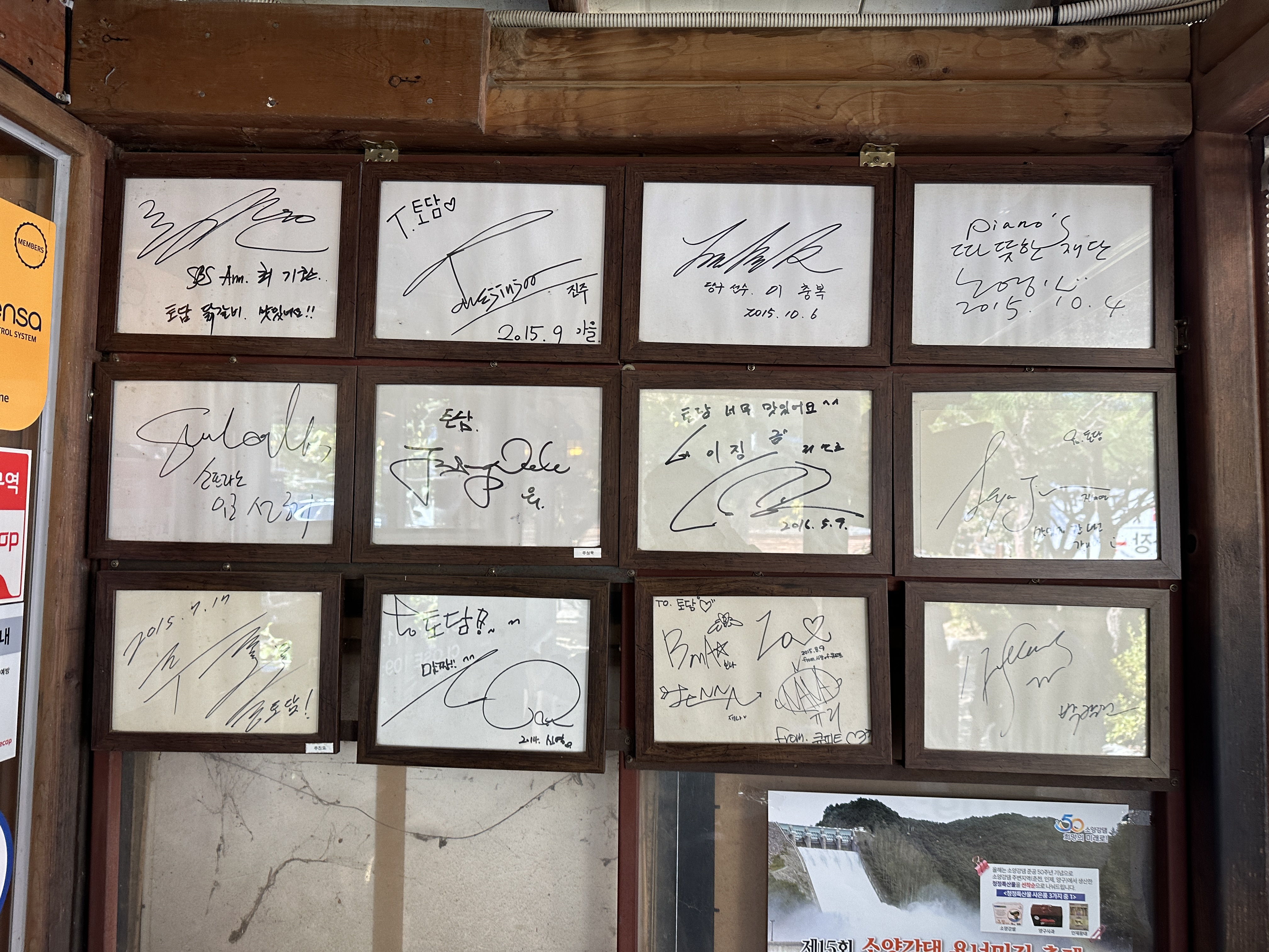 춘천 토담 숯불 닭갈비에 입장하면, 바로 보이는 싸인들입니다. 유명인사들도 많이 오시는 듯 합니다. 사실 누가 오셨나 제대로 볼 일은 없었지만요 ㅎㅎ