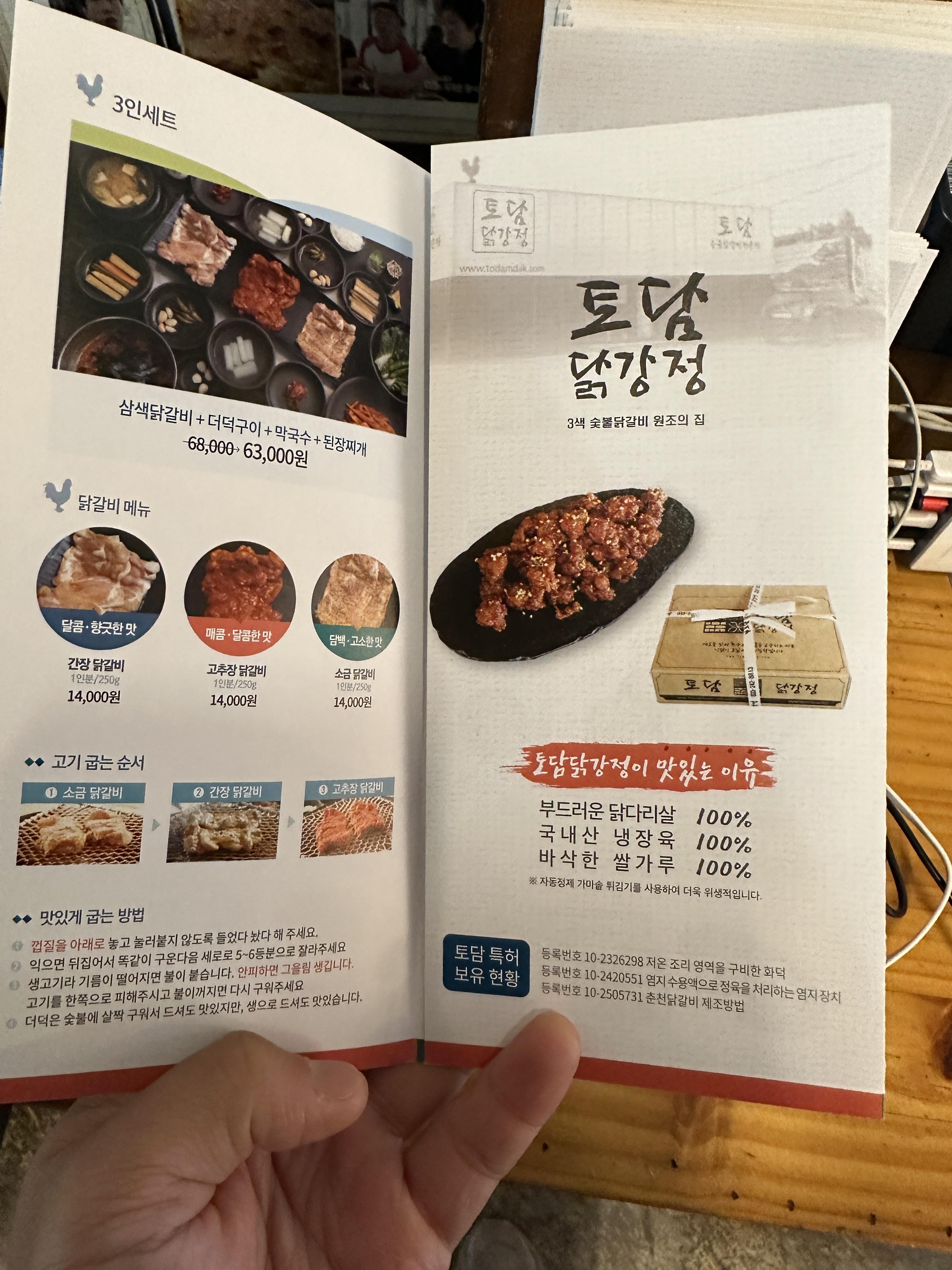 3. 춘천 토담 숯불 닭갈비 메뉴판