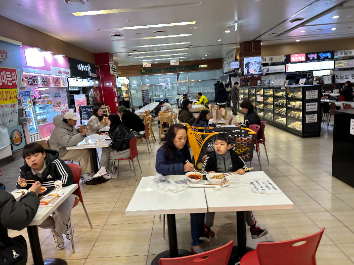 경기도 광주 바다어묵나라의 식사 장소입니다. 사진에서 보이는 자리가 주변 푸드코드에서 주문 후 드시는 장소인데요. 안쪽에도 자리가 있으니 넉넉하게 사용하실 수 있습니다.