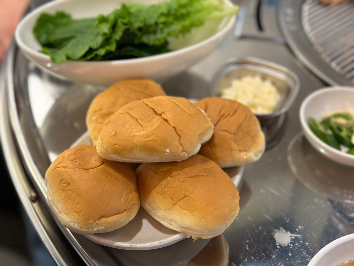 소갈비살을 시키면 특이하게도 빵과 같이 먹는 것 같아요. 지금 생각해보니 빵을 서비스로 주신 것 같네요. 한 번 먹어보라고 ㅋㅋㅋ (4개 세트인데 5개 주신 것도 그렇고 ㅋㅋㅋ) 잘먹었습니다.