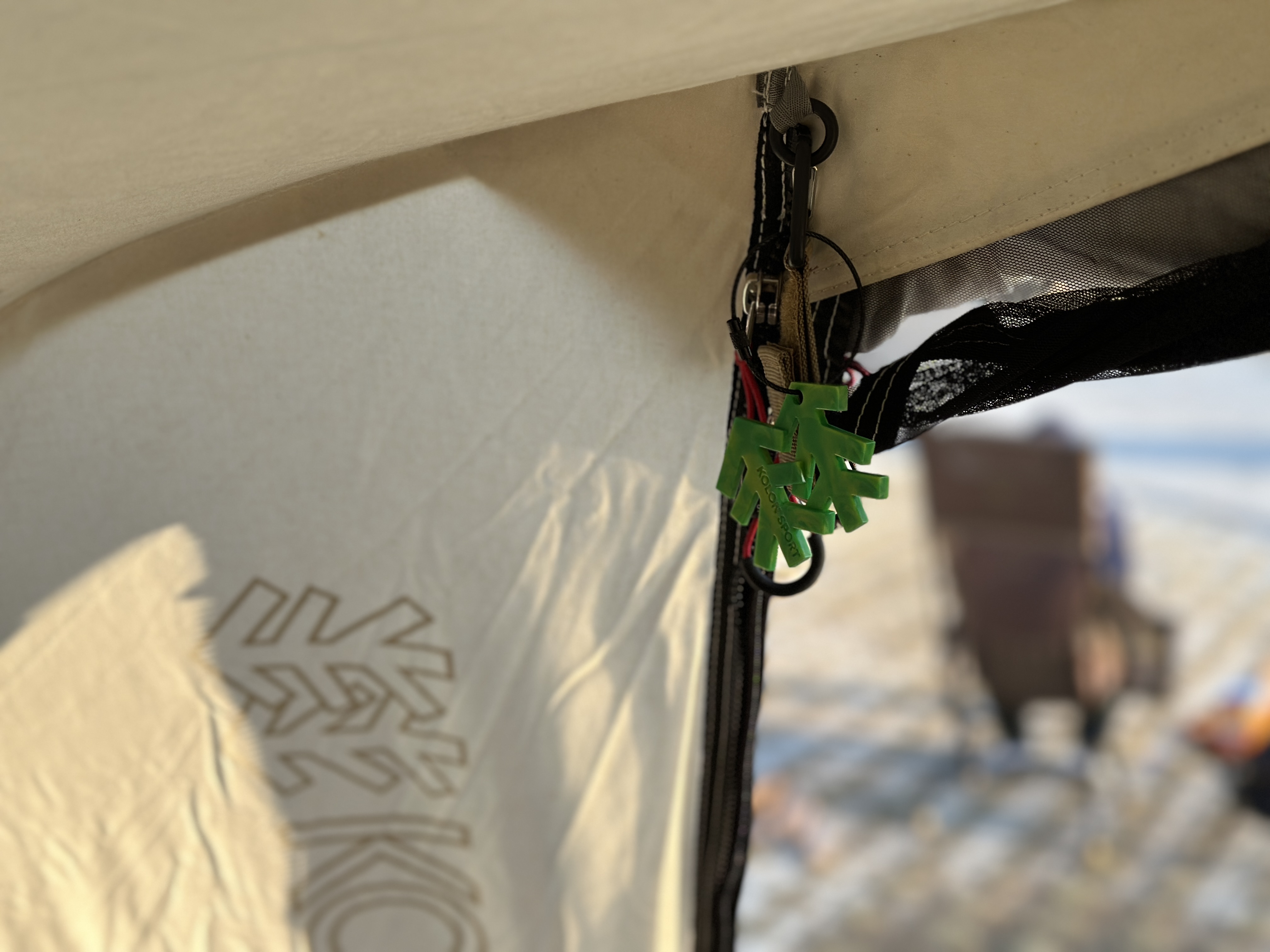 이 날은 마침 코오롱 행사도 다녀왔으니 쿨하게 오두막 SP를 챙겼어요. 전면부에 결합해 봤습니다. 면텐트의 색감과도 잘 어울리는 모습입니다.
