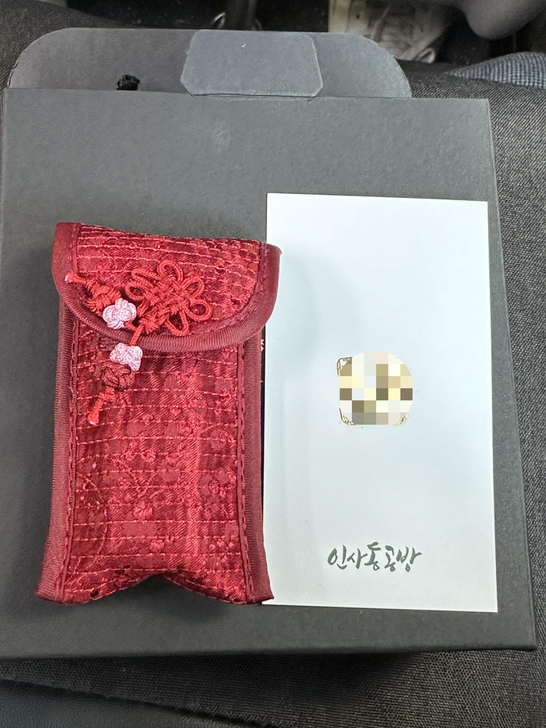 인감도장, 수제도장 맛집 인사동공방에서는 도장 제작에 약 20분~30분정도 걸릴만큼 빠른 작업속도를 자랑합니다. 금방 기계로 깎아내는 느낌이긴 합니다. 내용물 확인하면서 도장을 하나 찍어주시는데, 붉은 인주로 찍혀 있던 것을 라이터로 확 하니까 오른쪽 사진처럼 금색으로 변하더라구요. ㅋㅋㅋ 아무래도 이름이 나오니 모자이크 처리 하긴 했지만, 꽤 신박합니다.