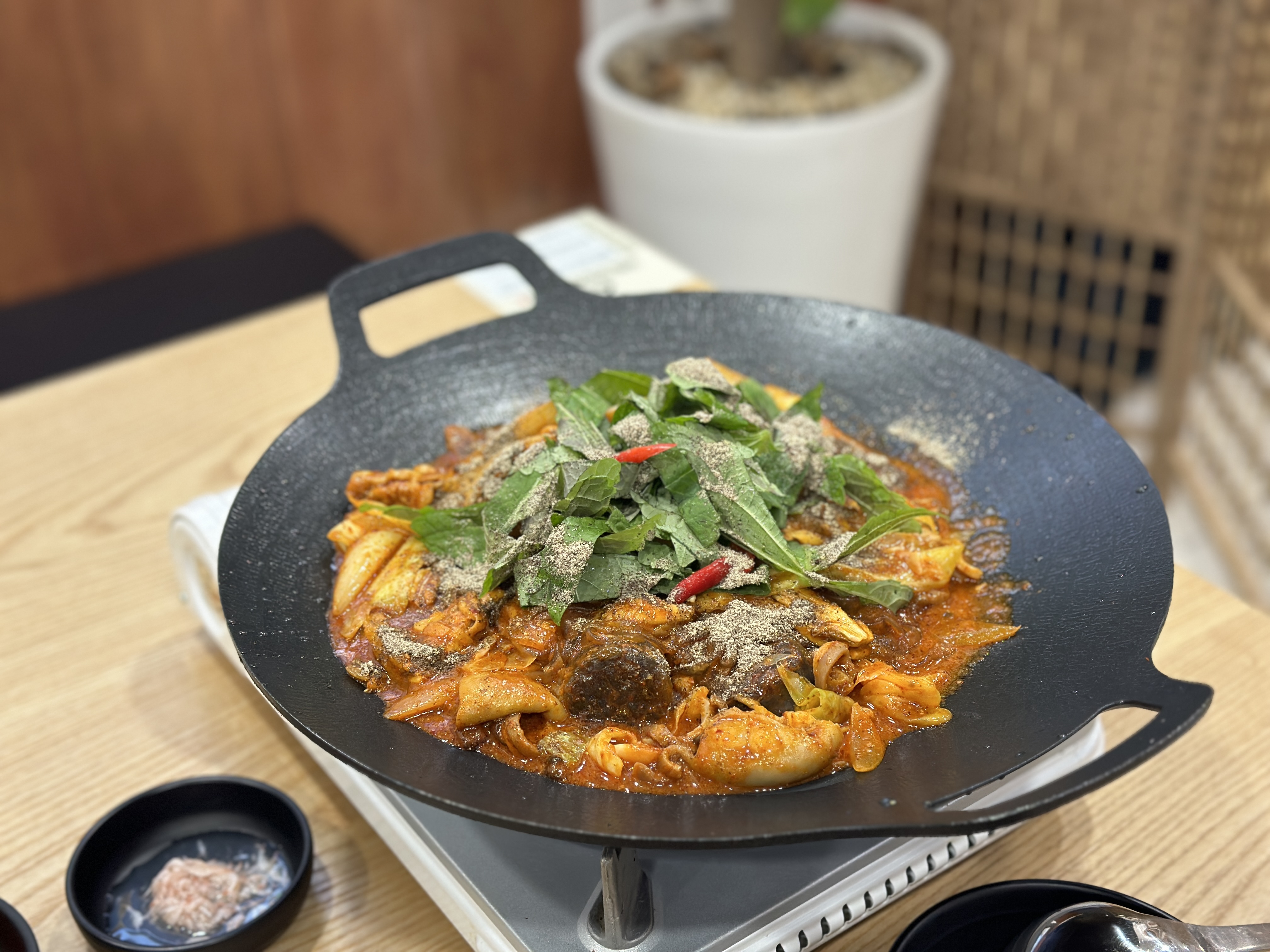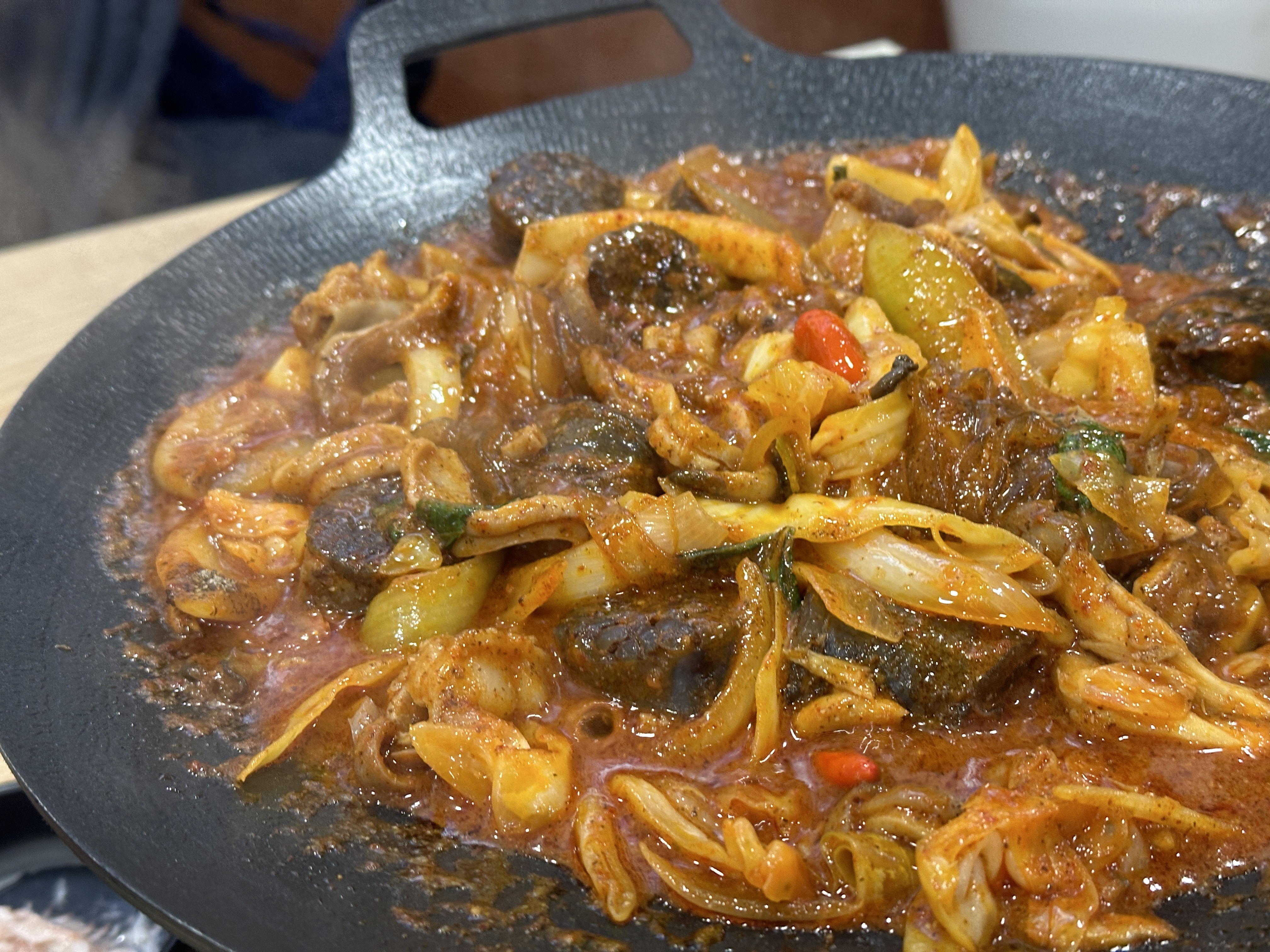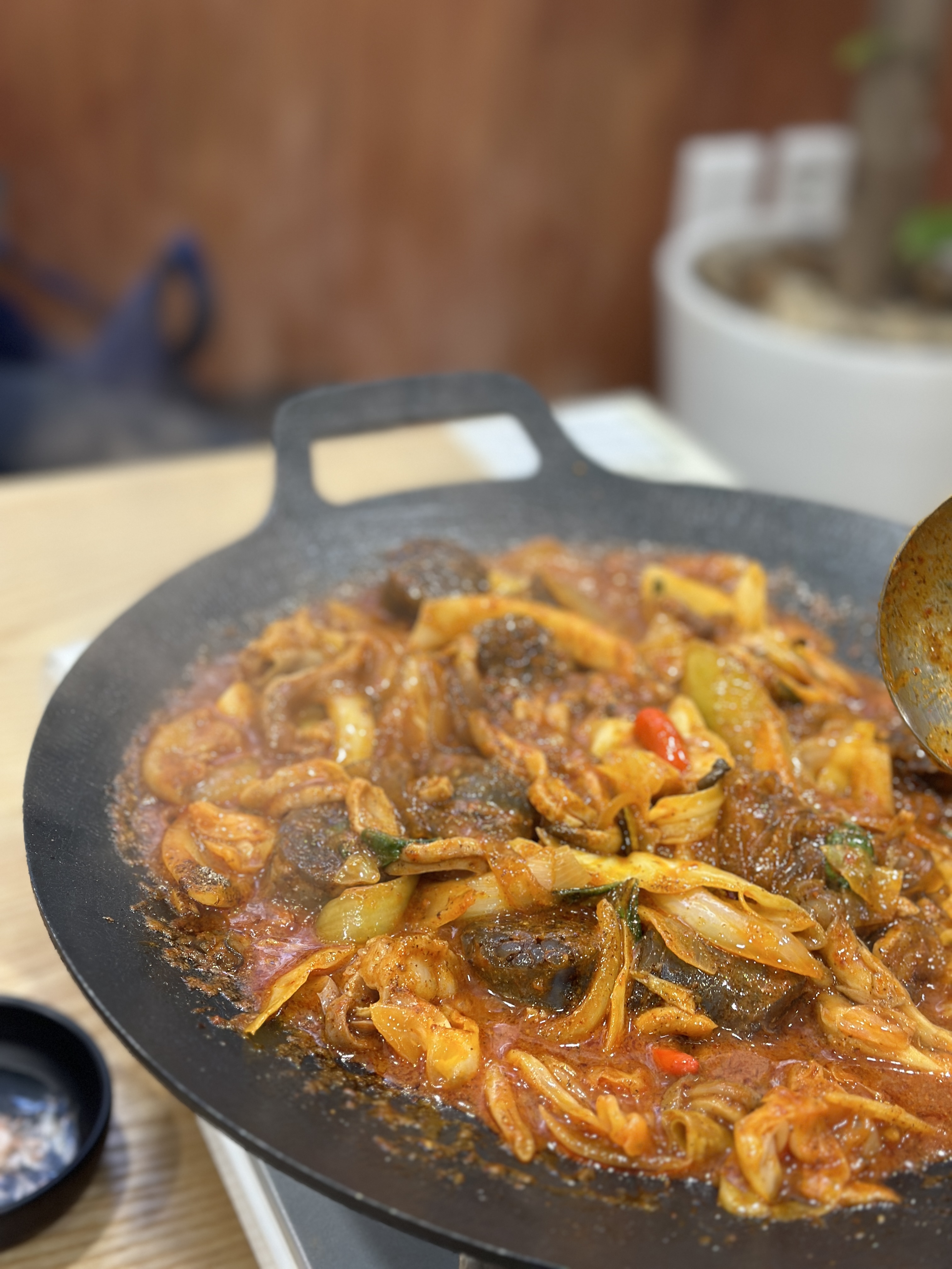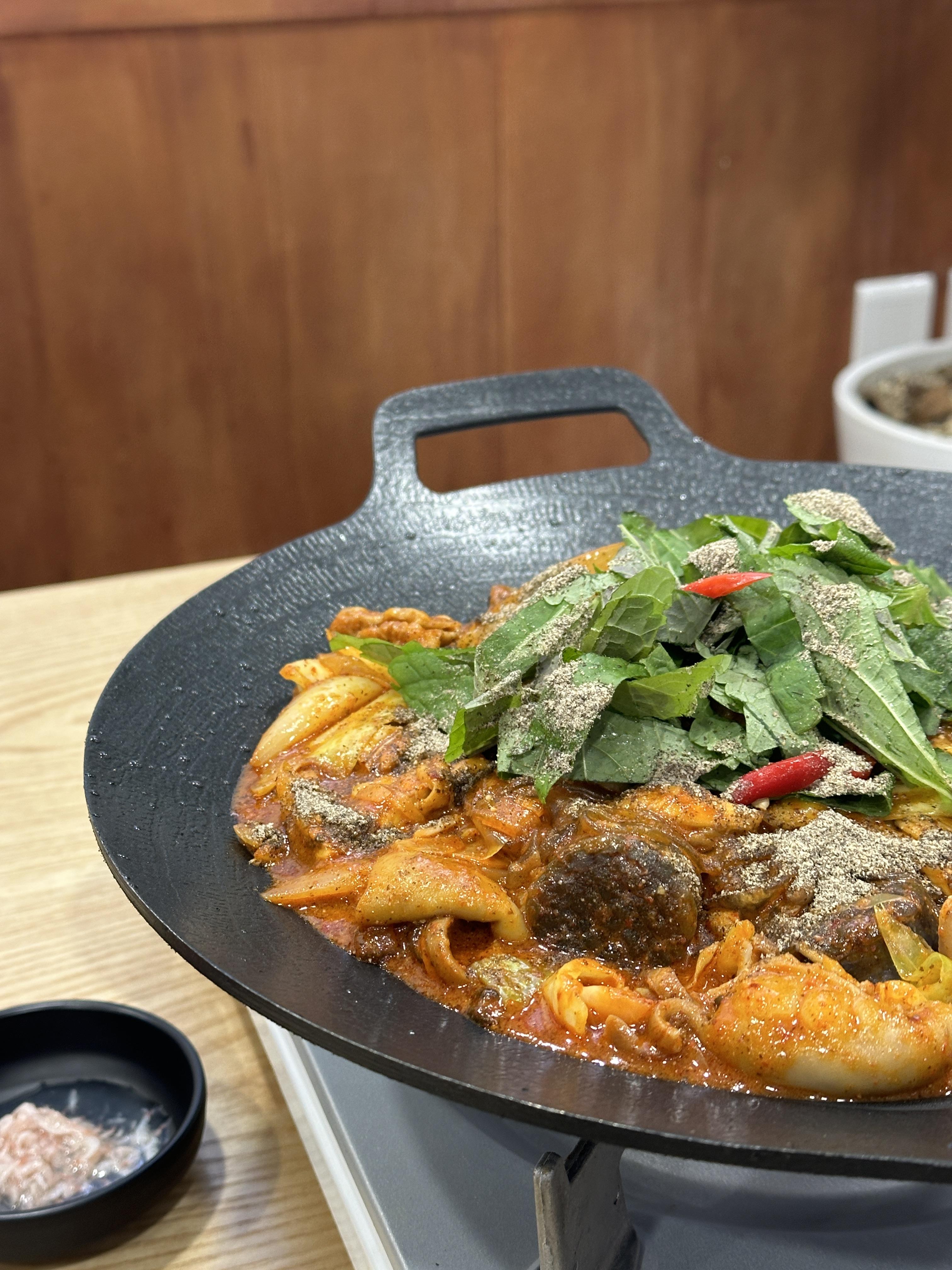 순대곱창볶음은 그리들에 깔끔하게 세팅되어 어느정도 조리된 상태로 나옵니다. 두명이 먹기에 적당한 양이었고, 매콤한 정도와 푸짐한 순대/곱창의 양도 좋았습니다. 안주로 정말 괜찮아보입니다. 후...