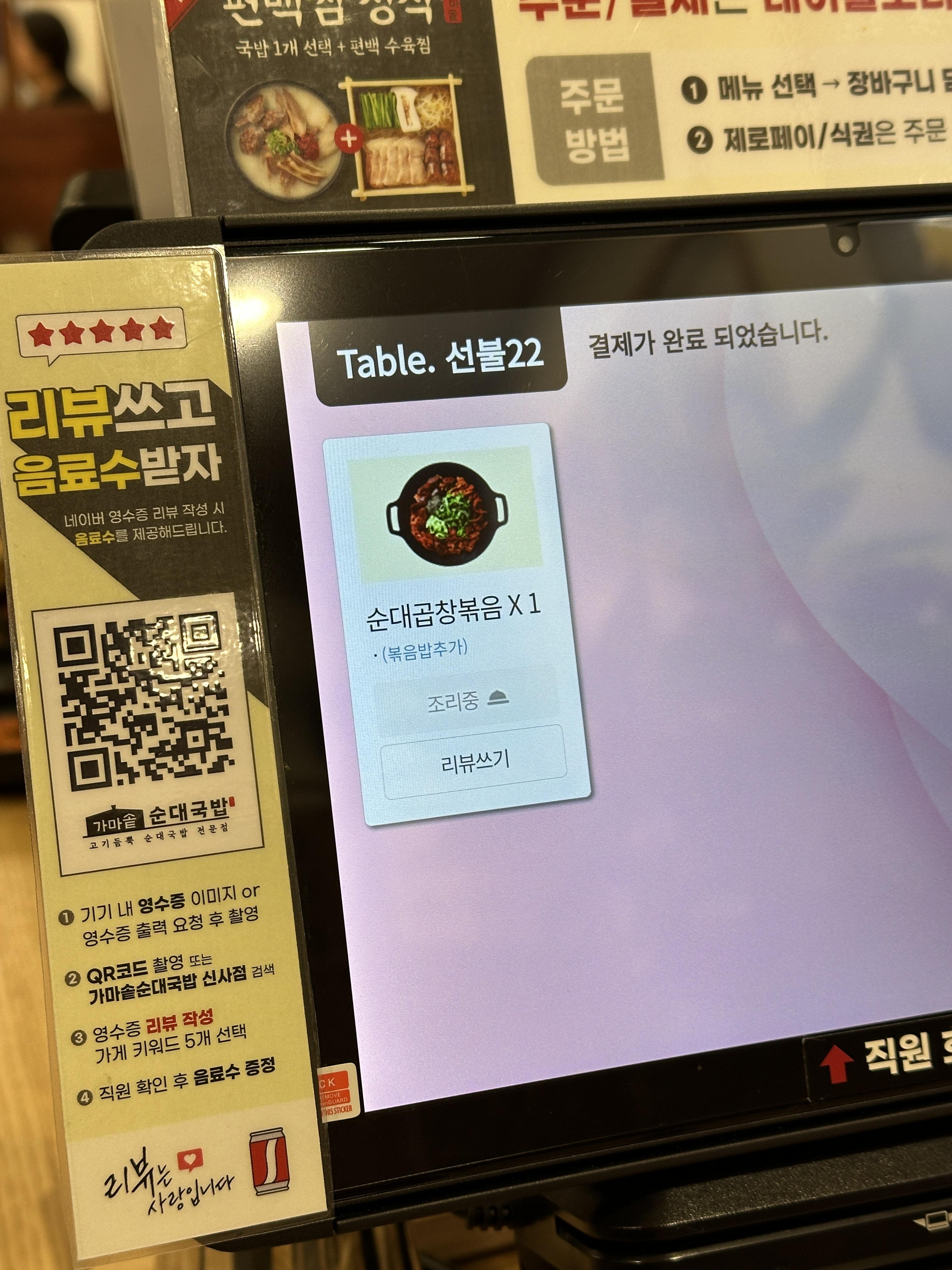 4. 가마솥순대국밥 신사점 주문 및 테이블세팅