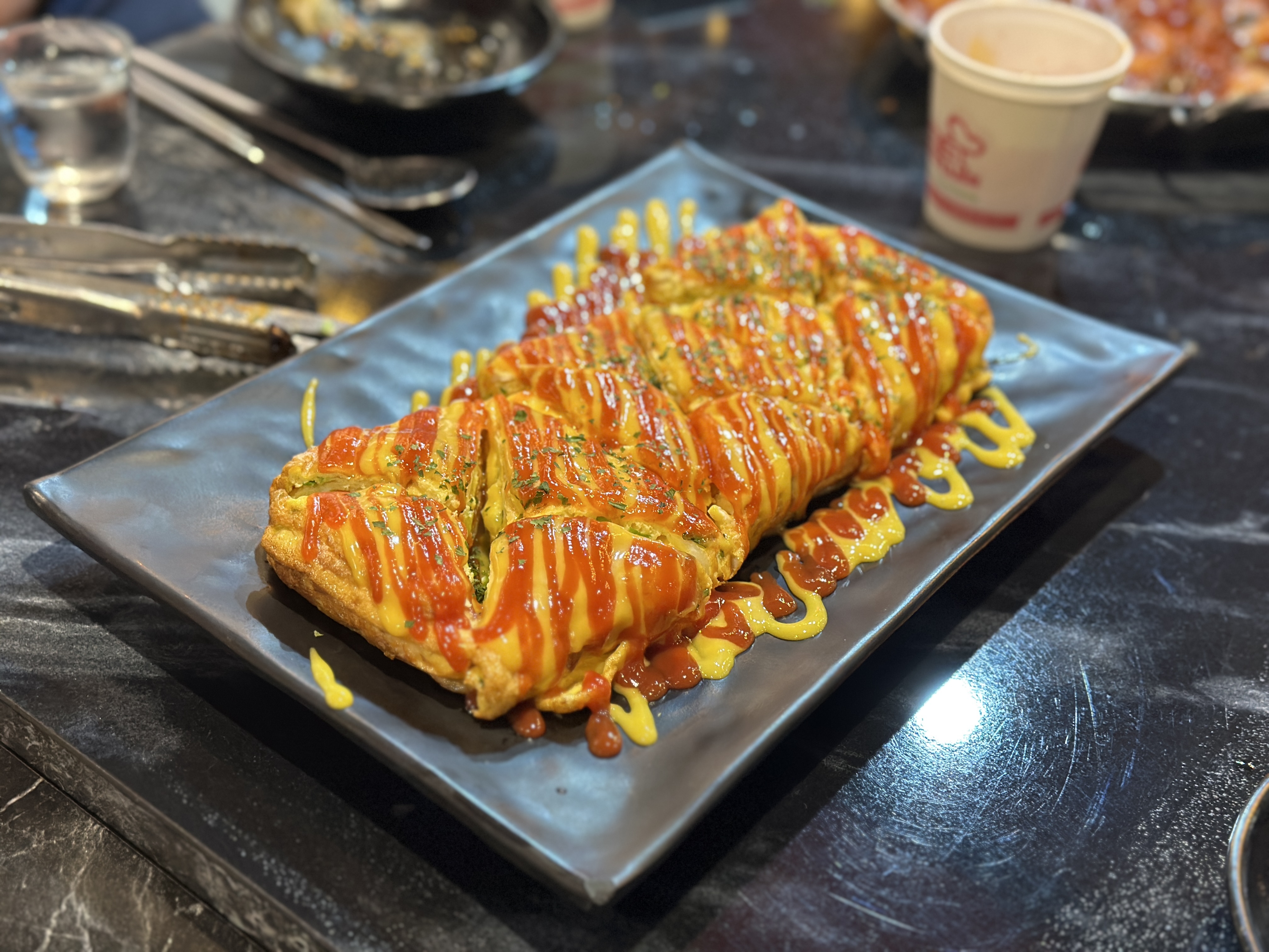 친구녀석들이 조금 아쉬웠는지 계란말이를 추가해서 시킵니다. 개인적으로 이렇게까지 머스타드와 케찹을 올려 먹는 것은 선호하지 않지만... 맛있게 먹었습니다.