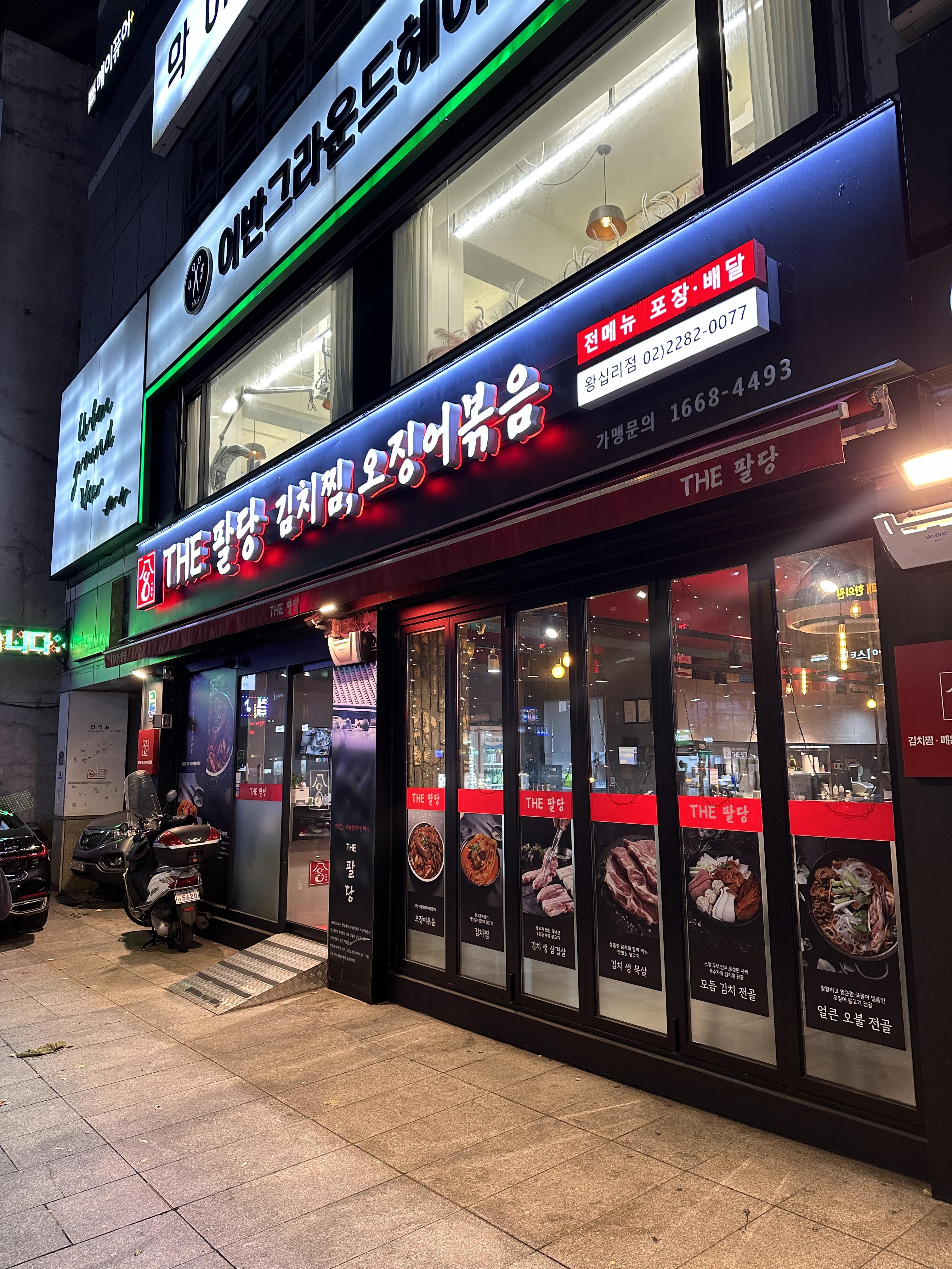 더팔당 왕십리점 외관입니다. The 팔당이라는 가게도 사실 신사동? 이었나? 그 곳에서 시작한 것 같은데, (맞나...?) 김치찜과 오징어 볶음 전문으로 하는 식당입니다.