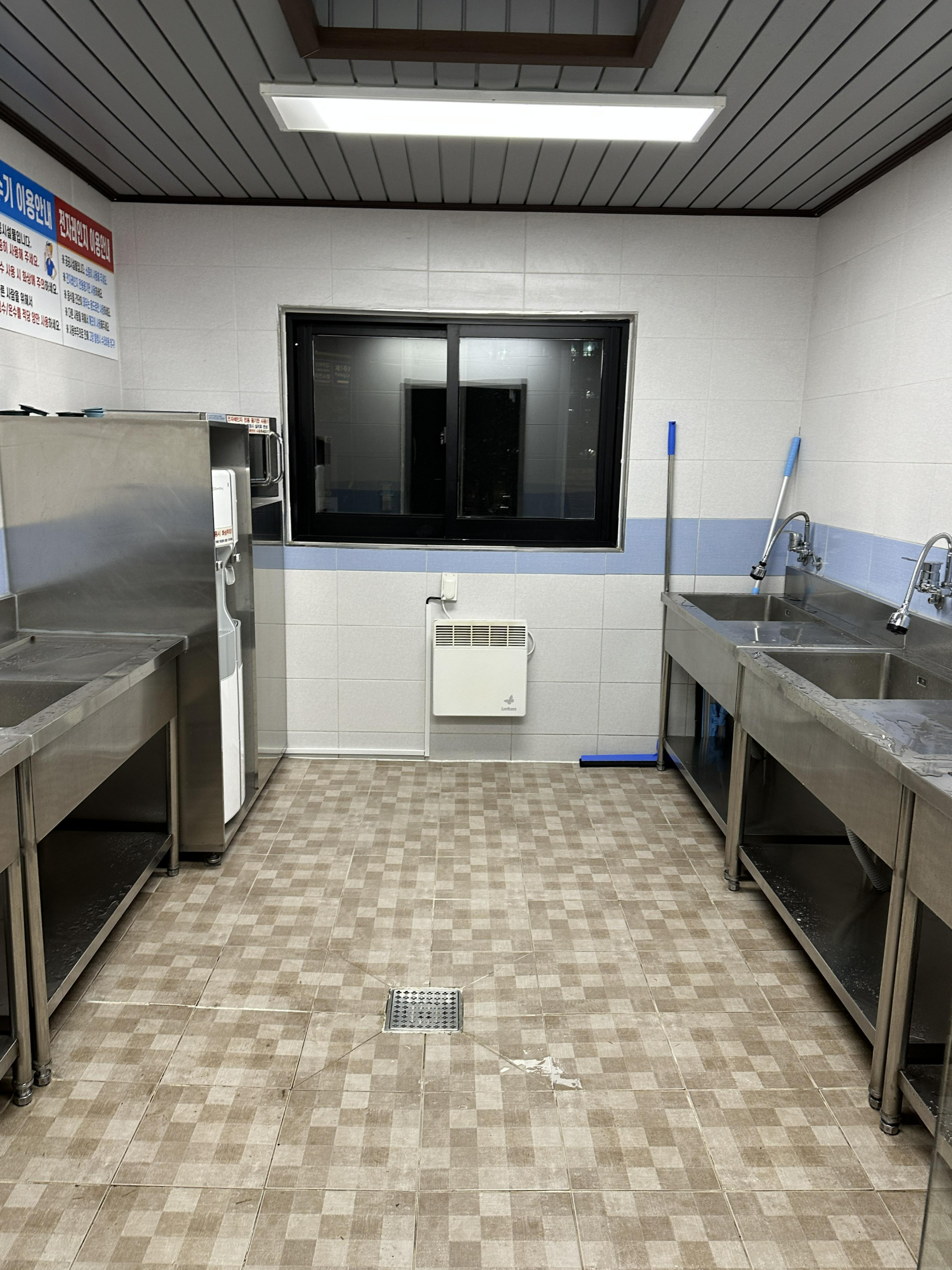 세척장의 내부는 5개 수전이 있으며, 뜨거운 물이 아주 잘 나옵니다. 정수기 및 전자레인지도 1개씩 비치되어 있어 불편함 없이 사용이 가능하겠습니다.
