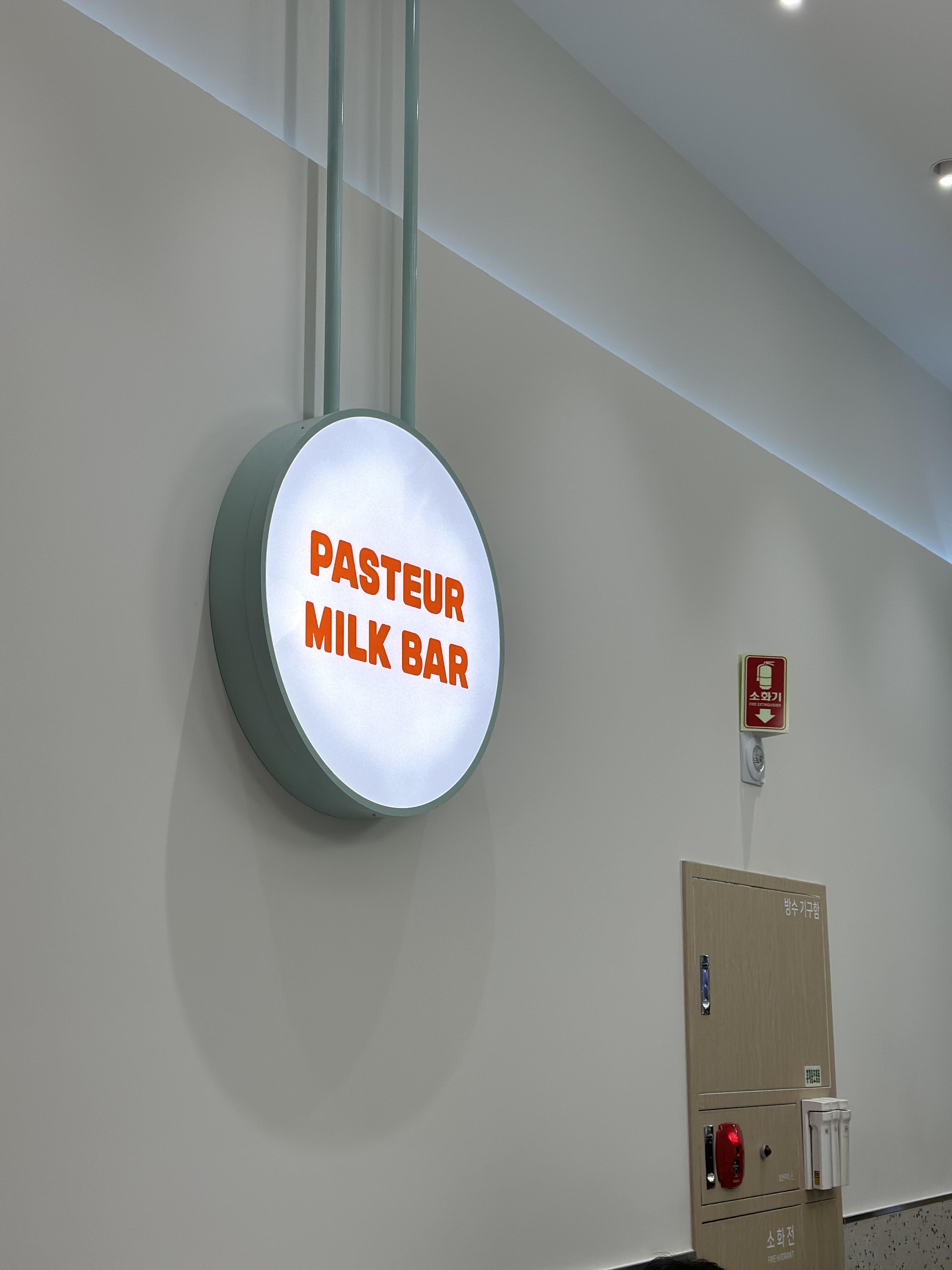 깔끔한 간판, 눈에 익숙한 파스퇴르 글자 디자인이 눈에 띕니다. 간단한 음료부터 아이스크림콘까지 판매하고 있어요.