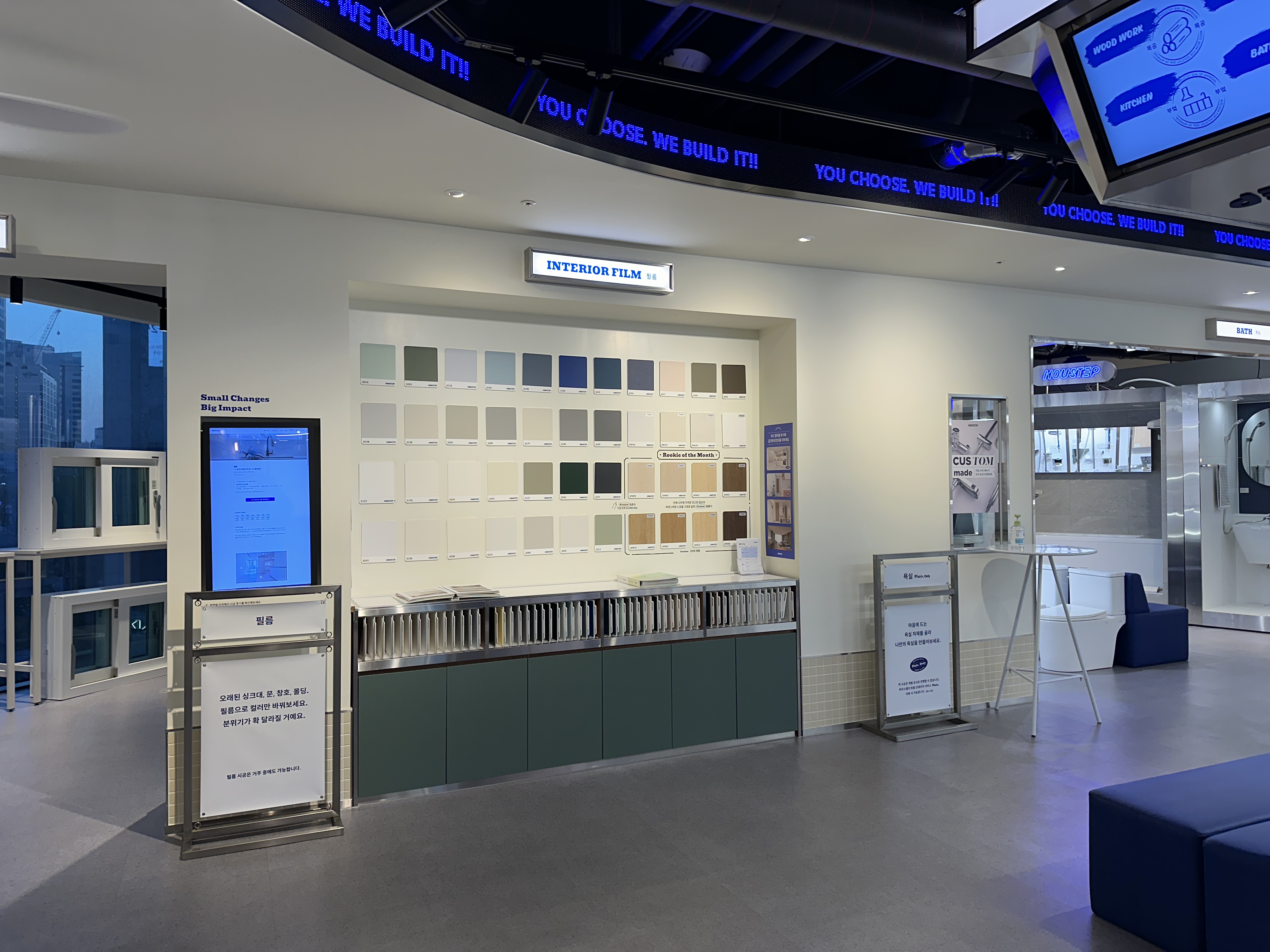 곳곳이 인테리어 쇼룸인 것을 알리고 있습니다. 깔끔하기도 하구요. 하지만 자세히 보면 최대한 많은 자재들을 만져보고 체험해 볼 공간을 구성하려고 애쓴 것이 느껴집니다.