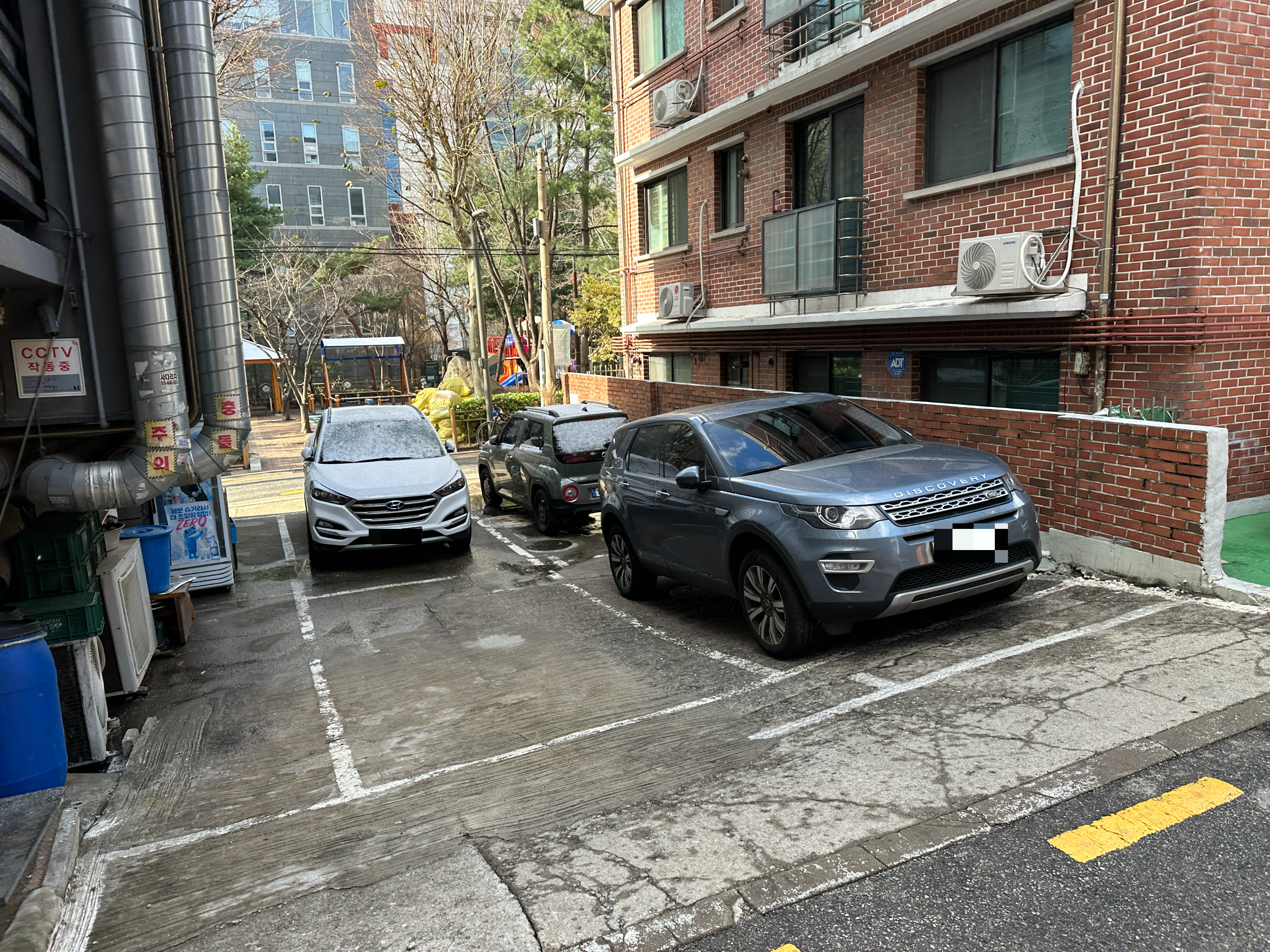 역삼동 푸짐한 한우곰탕 맛집, 곰바로곰탕의 주차 장소입니다. 매장 뒤로 보시면 이렇게 4대정도 주차가 가능합니다. 하지만 주차가 쾌적하지는 않아요. 왜냐하면 바로 앞에 나오는 길이 너무 좁기도 하고, 많은 분들이 길에 주차를 하시다보니 나오는데 약간 애먹을 것 같더라구요.